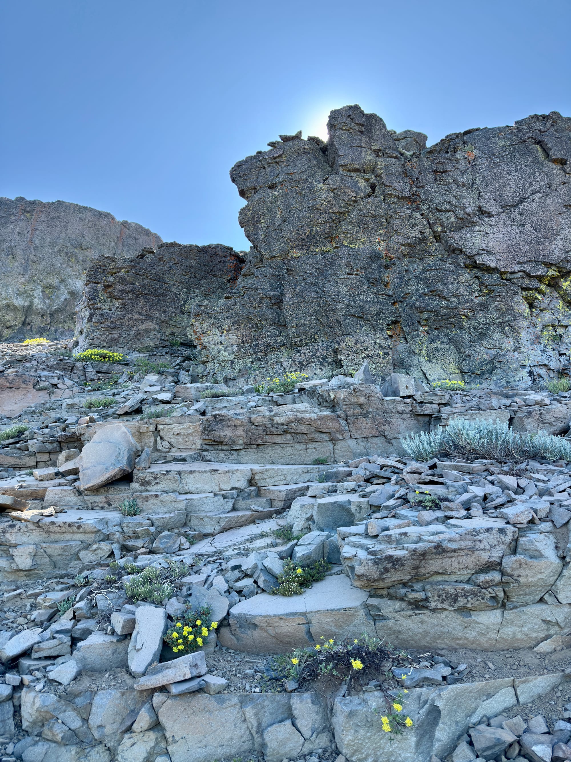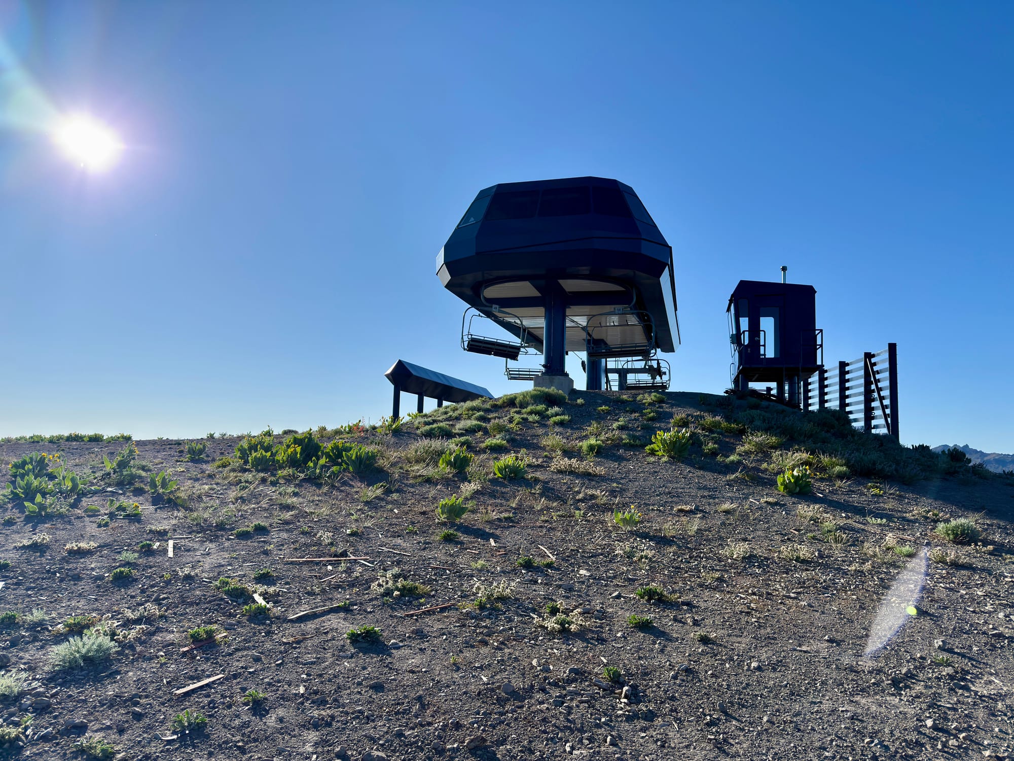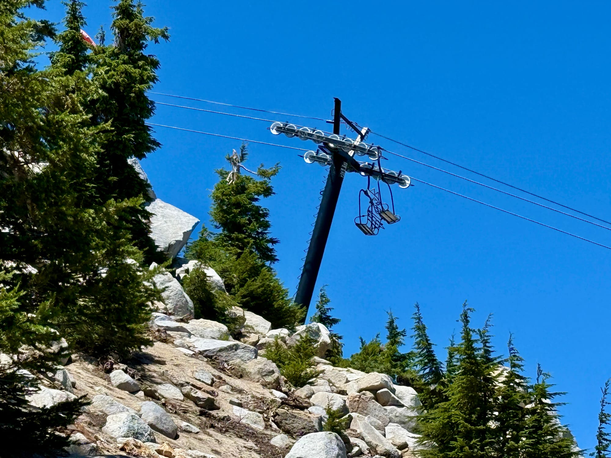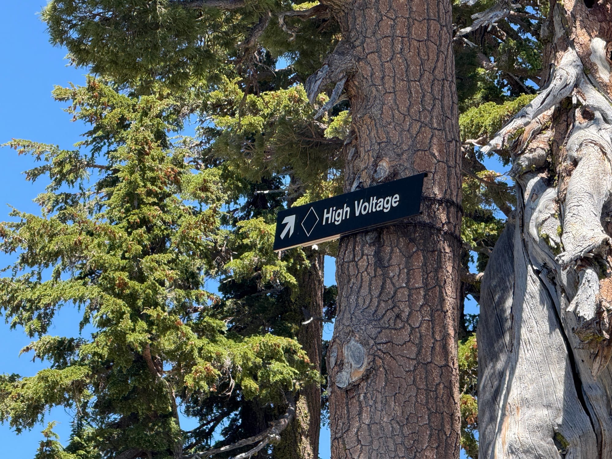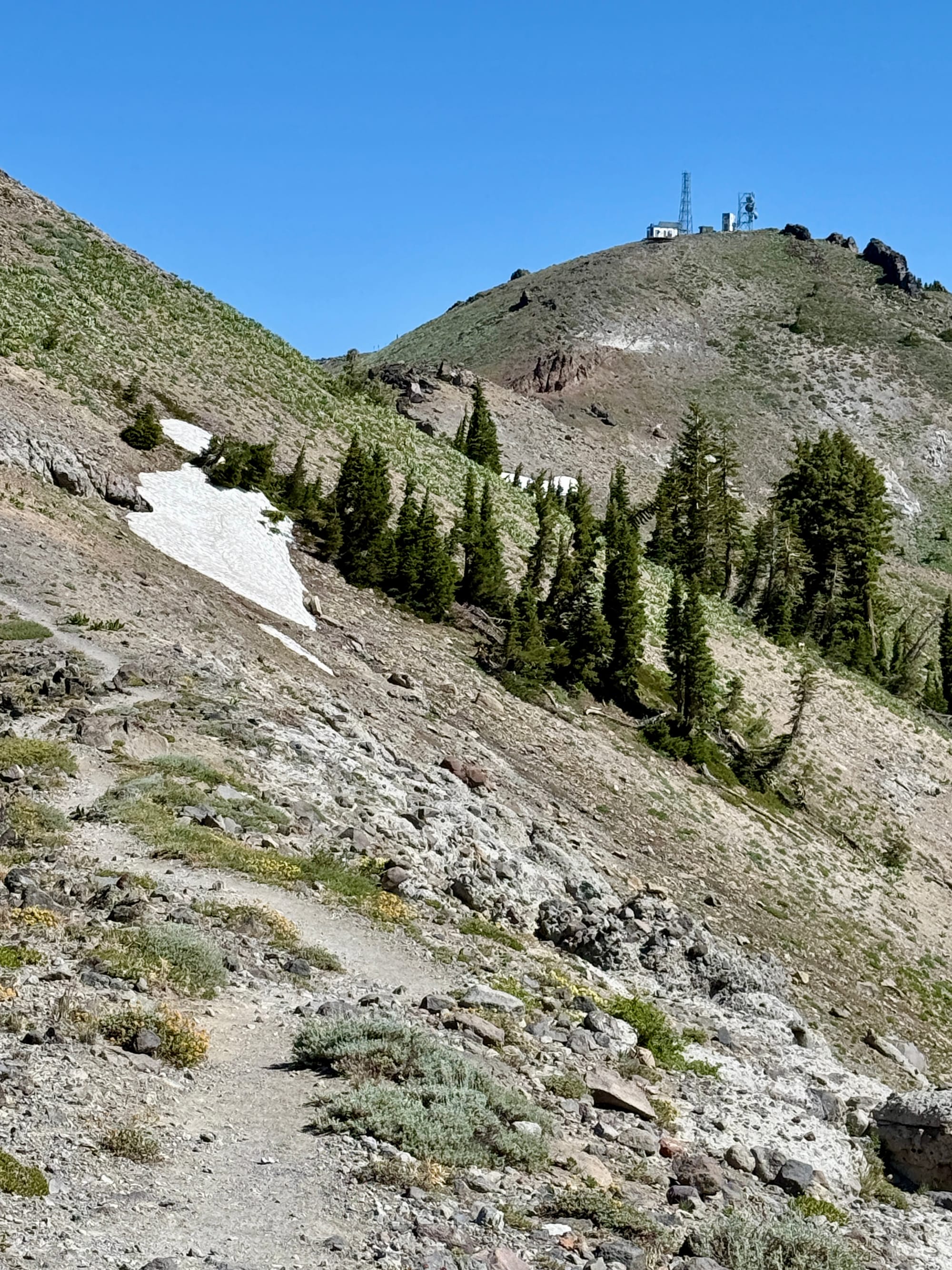 The trail cut across one of those steep snow chutes, and everyone having sent their snow gear home unable to kick steps meant that we were routed directly up to the highest lift at Tahoe Donner on a detour consisting of the steepest ~500 feet of the entire trail so far.