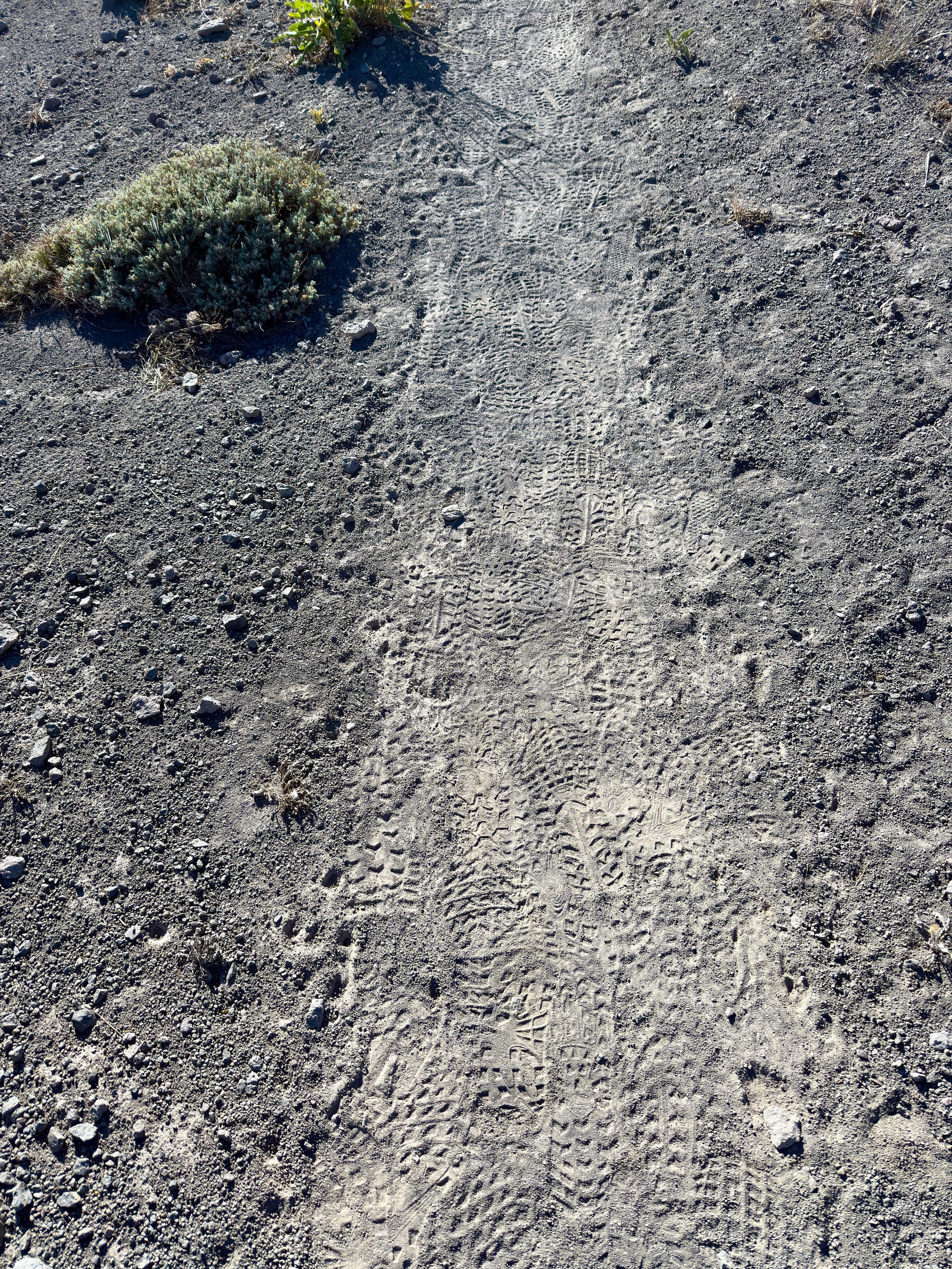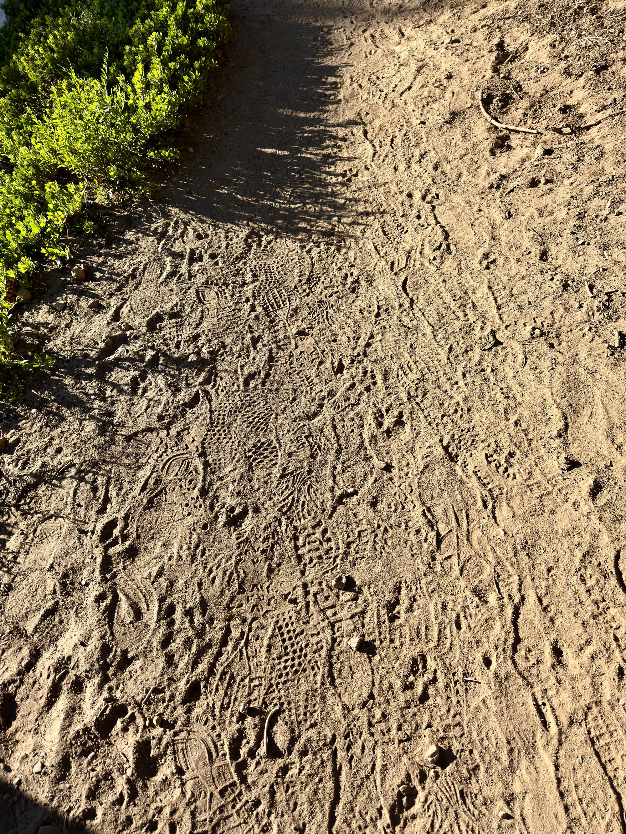 Footprints in dust convey so much information from who is on trail and in what order to how far you are from a trailhead.