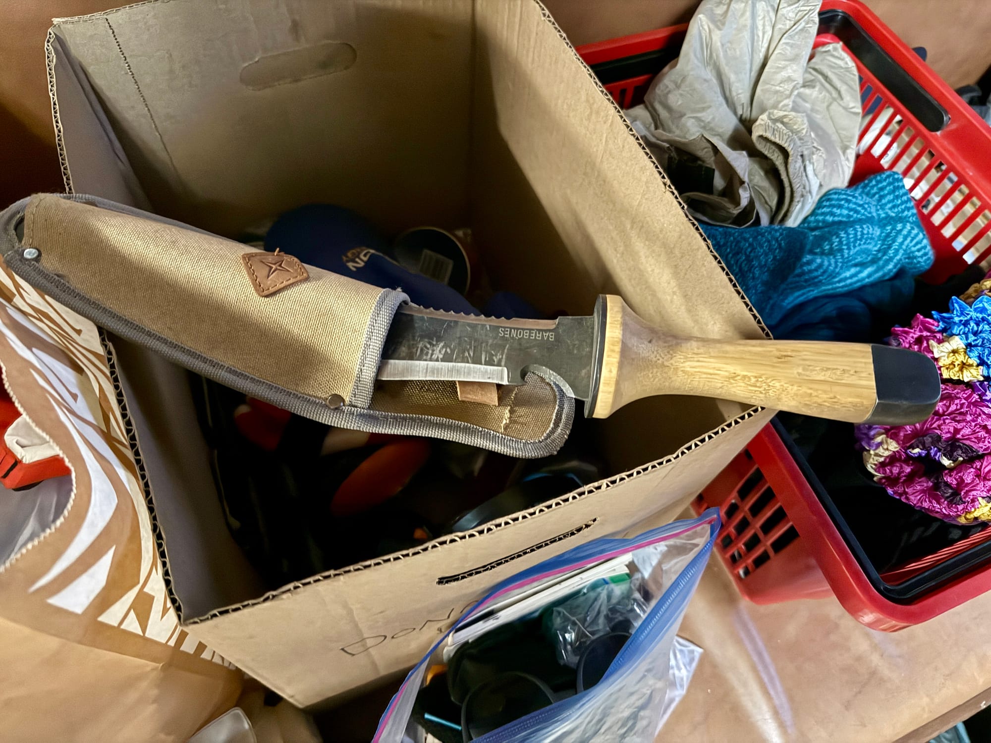 Some hiker / edge lord / bushcrafter left his ~3 pound primary blade behind in the hiker corner at the Donner Ski Ranch.