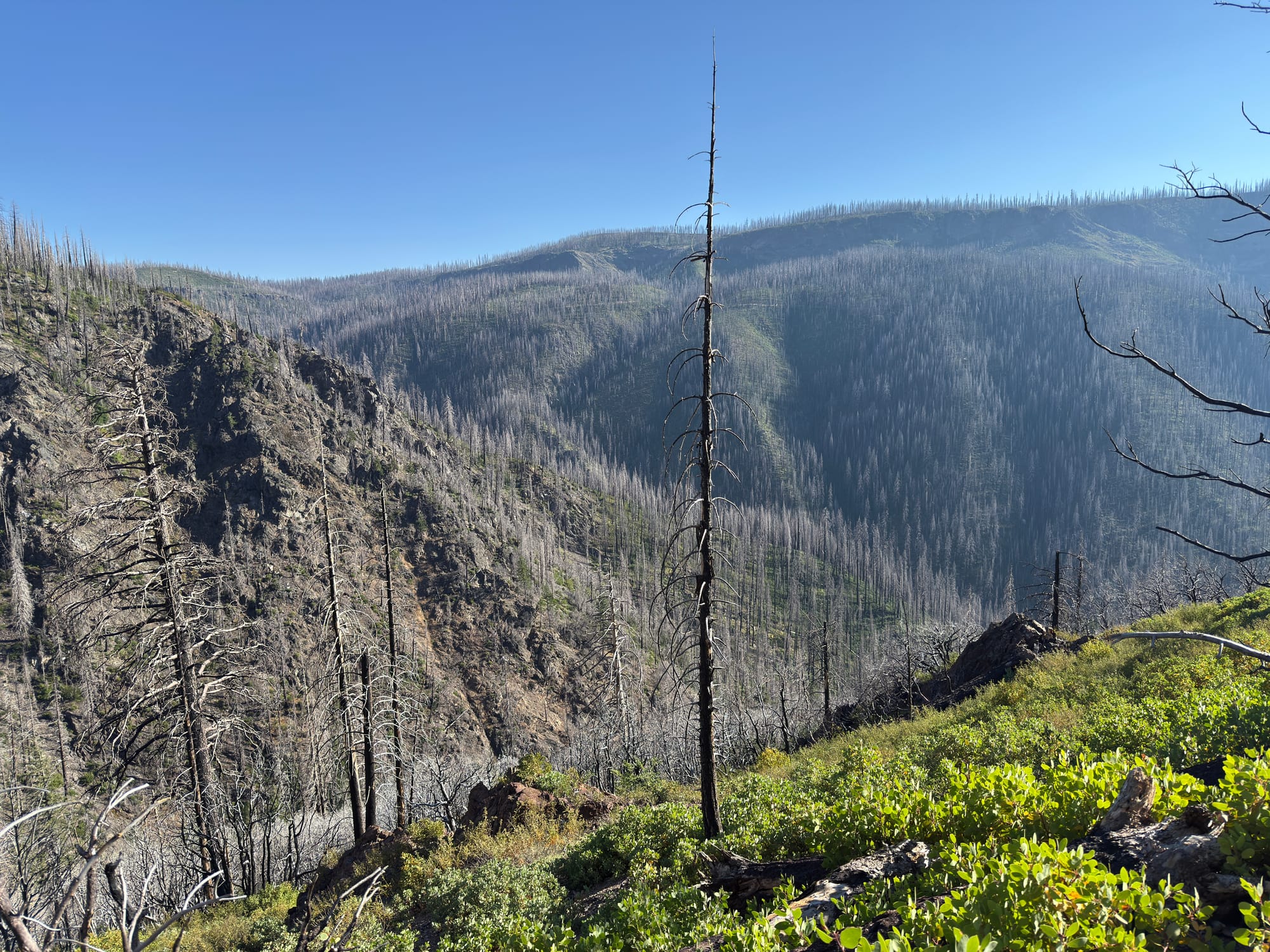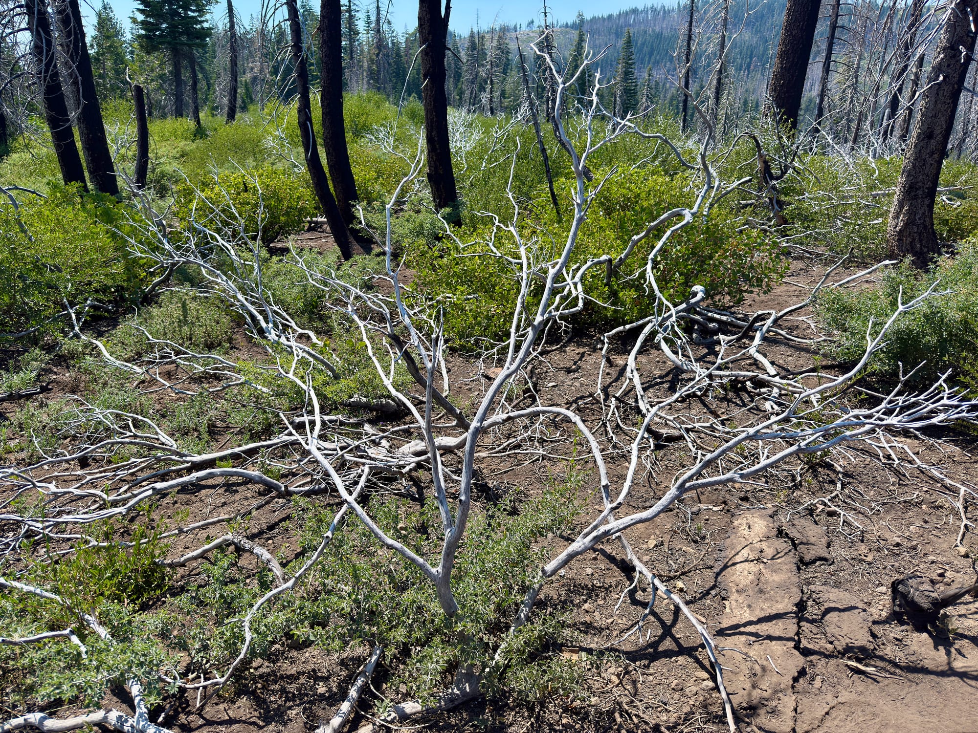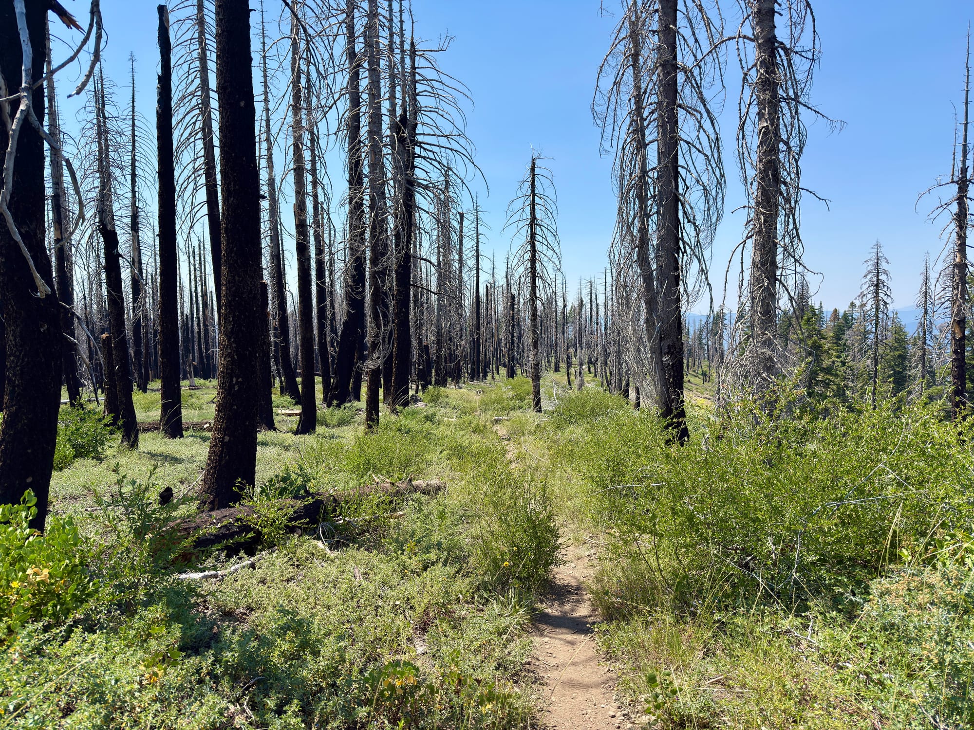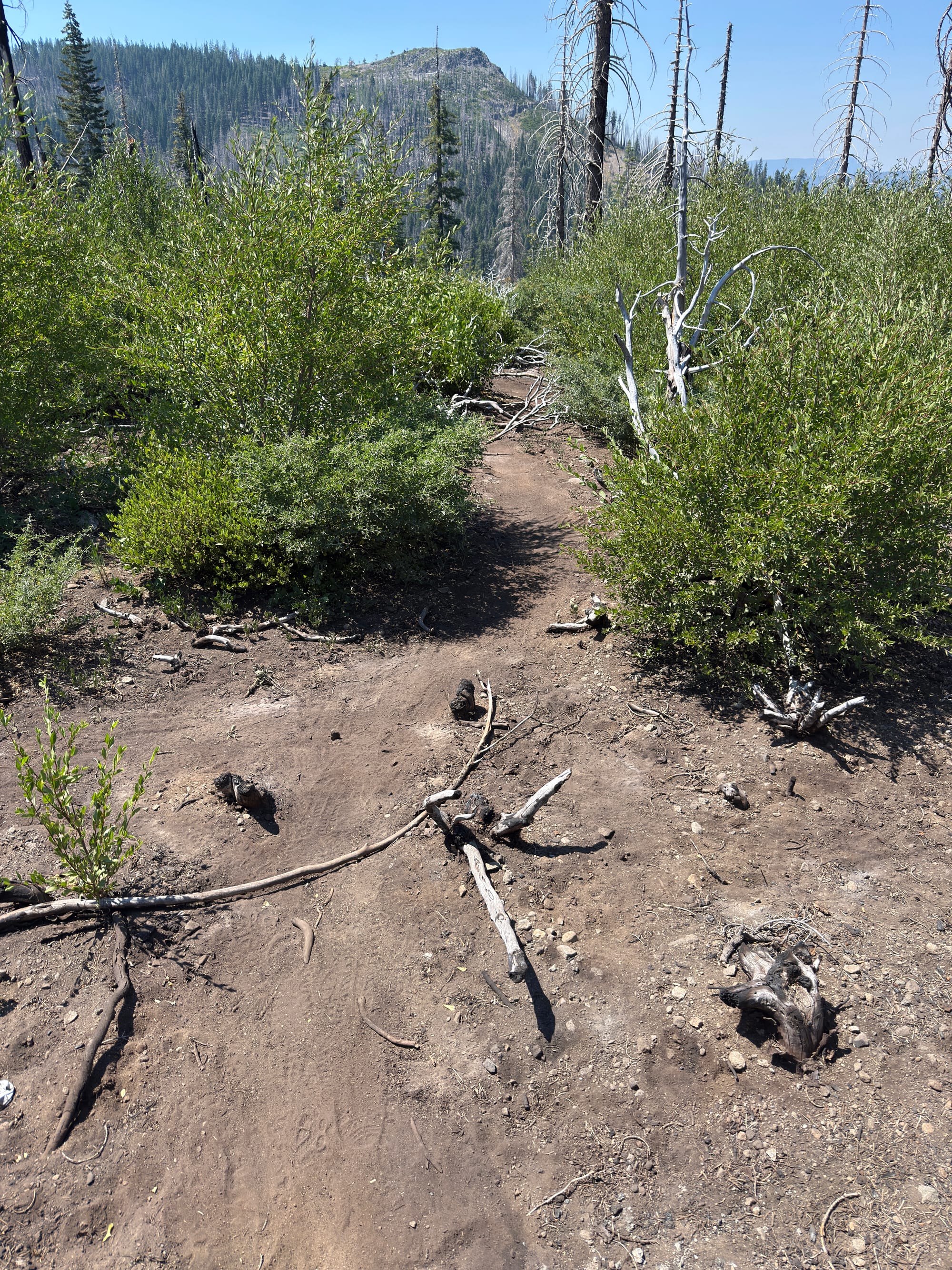 There’s not a whole lot of sun protection out here. A forest road turned into a detour around an overgrown fire ravaged blow down obstacle course.