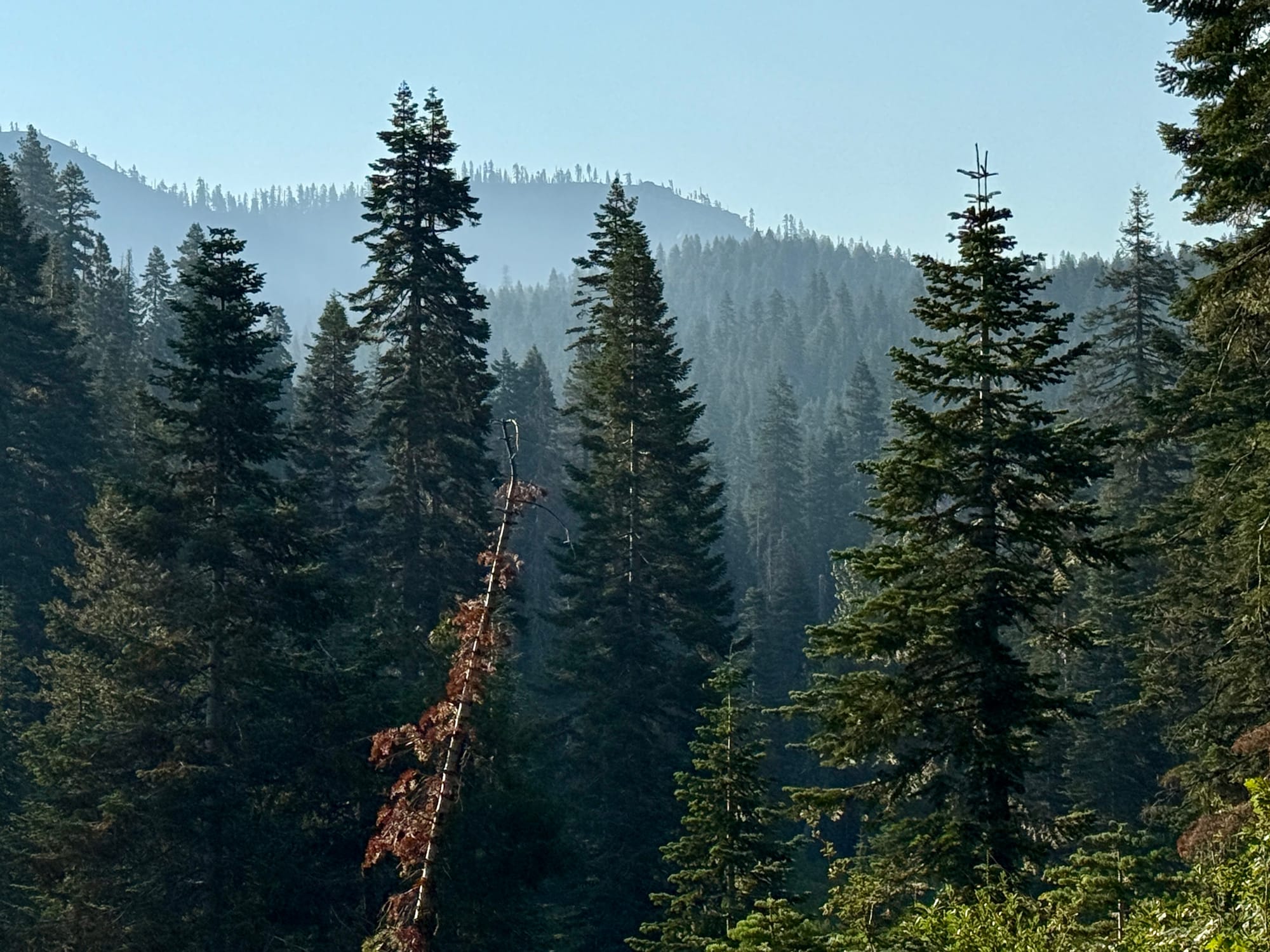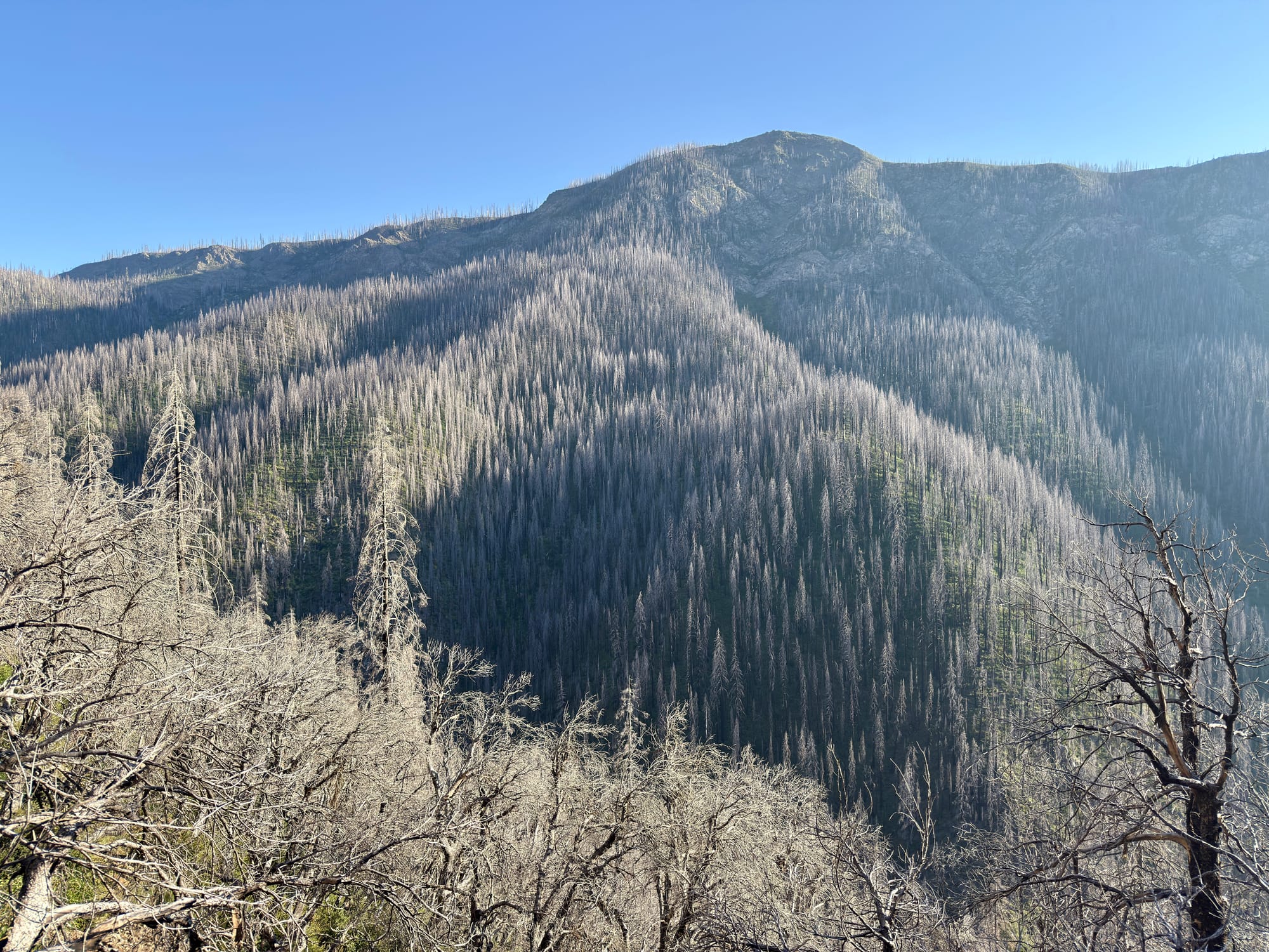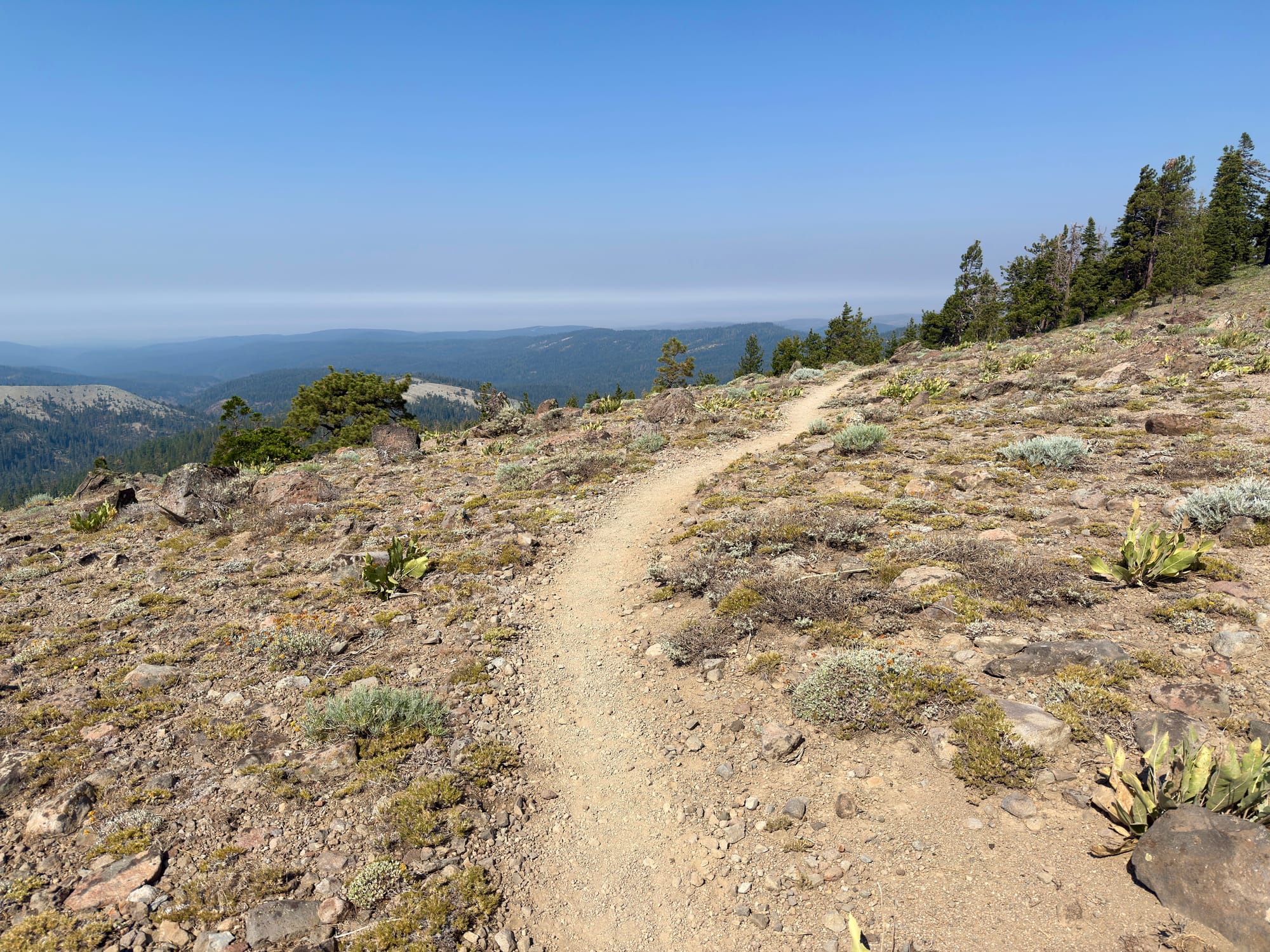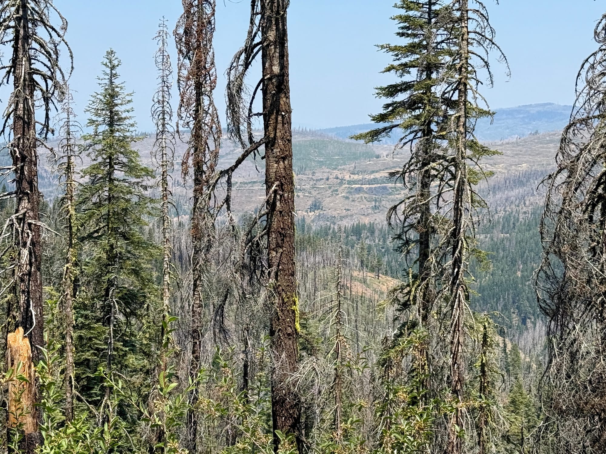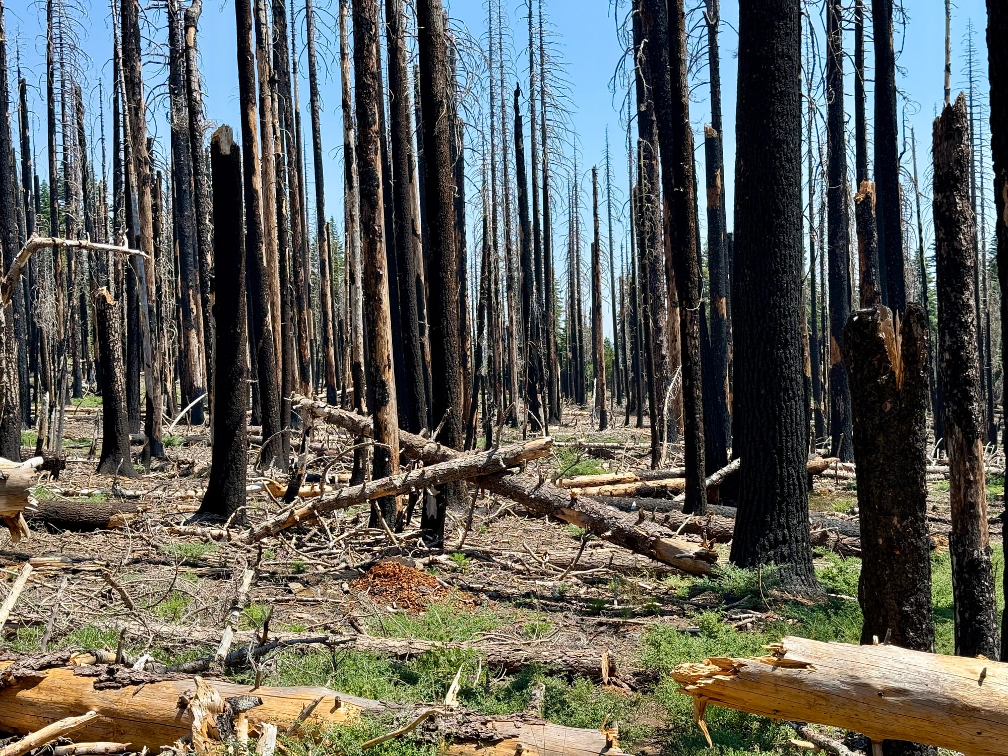 There’s not a whole lot of sun protection out here. A forest road turned into a detour around an overgrown fire ravaged blow down obstacle course.