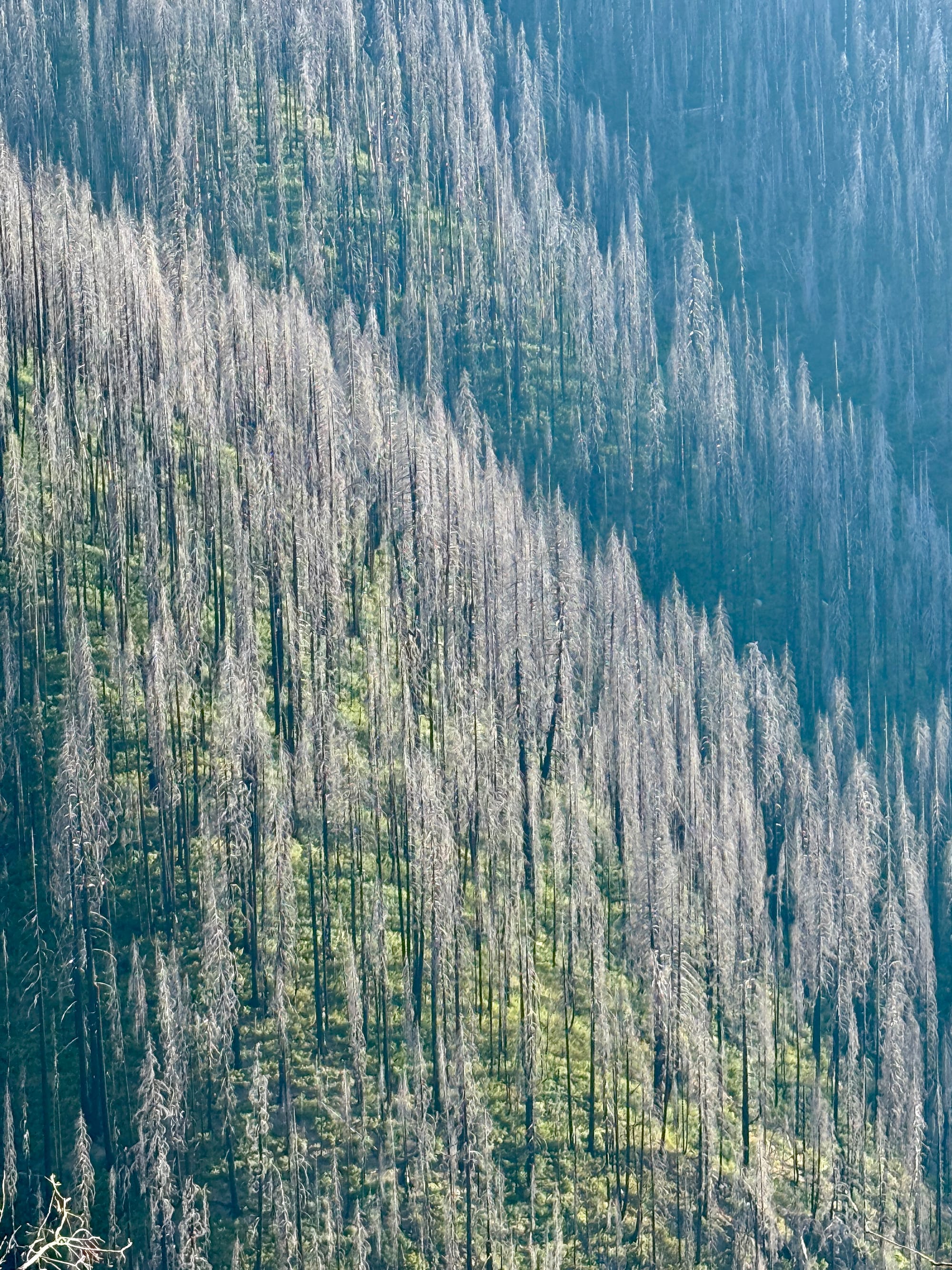 Kristin said “they look like ghosts”. I told her they are ghosts. This forest is a graveyard.