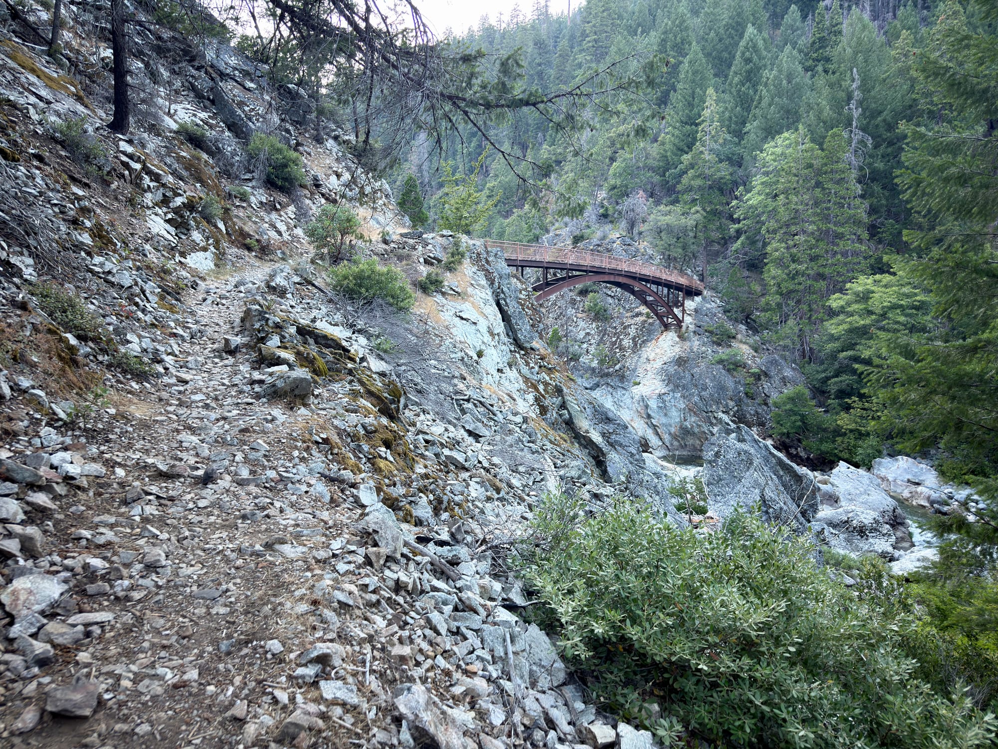 We camped along the north shore of the Feather River across this incredible bridge. I attempted to describe the beauty of this canyon and trail to people over the next few days and failed miserably. Pictures helped, but never capture the scene, smell, temperature drop, or sound of a free flowing river crashing over rocks in the wilderness.