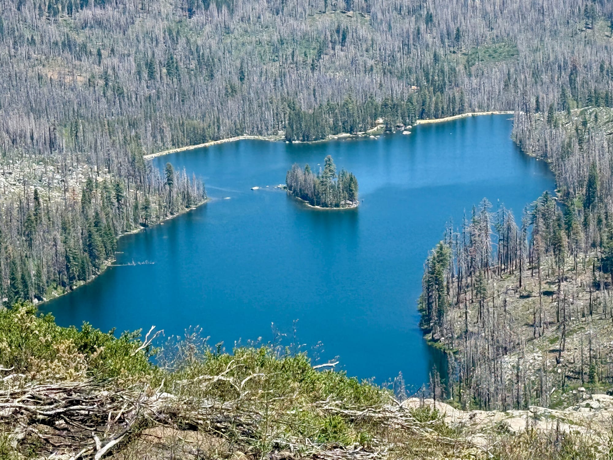 The fire leapt to the island but a few trees are hanging on out there.