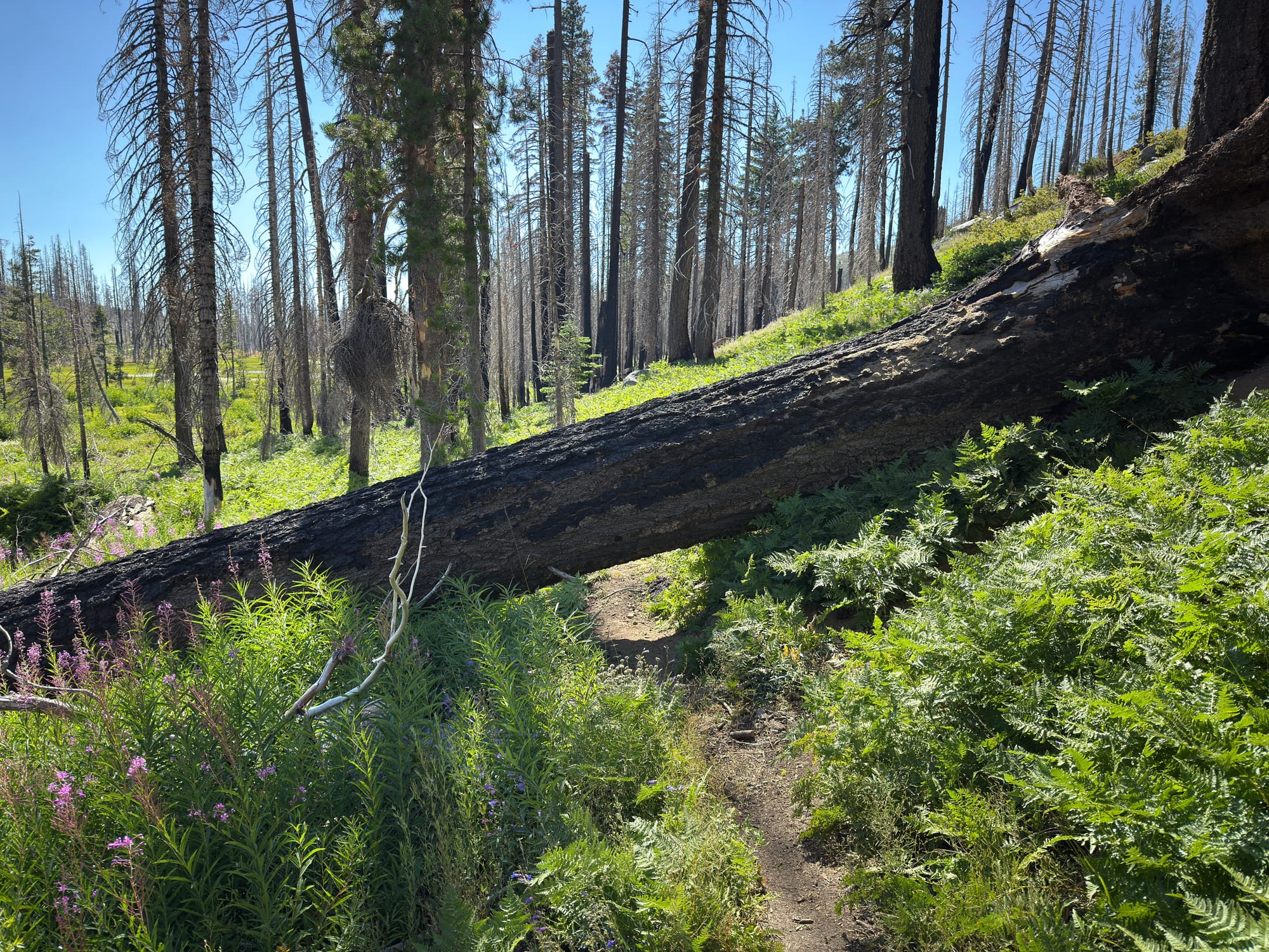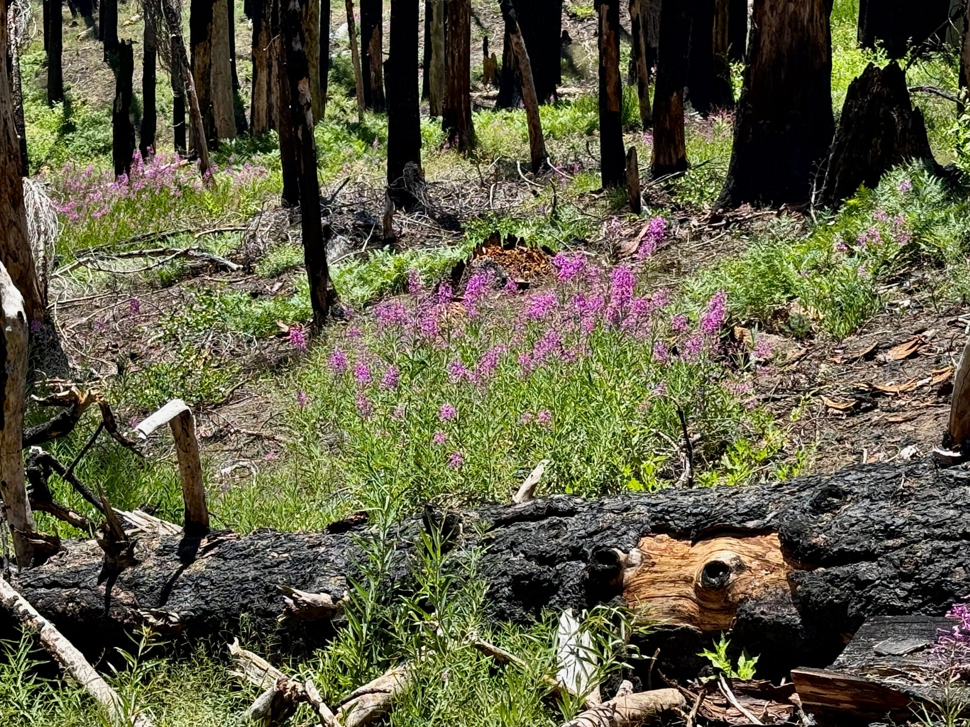 Even in a scorched forest, wildflowers are in bloom.