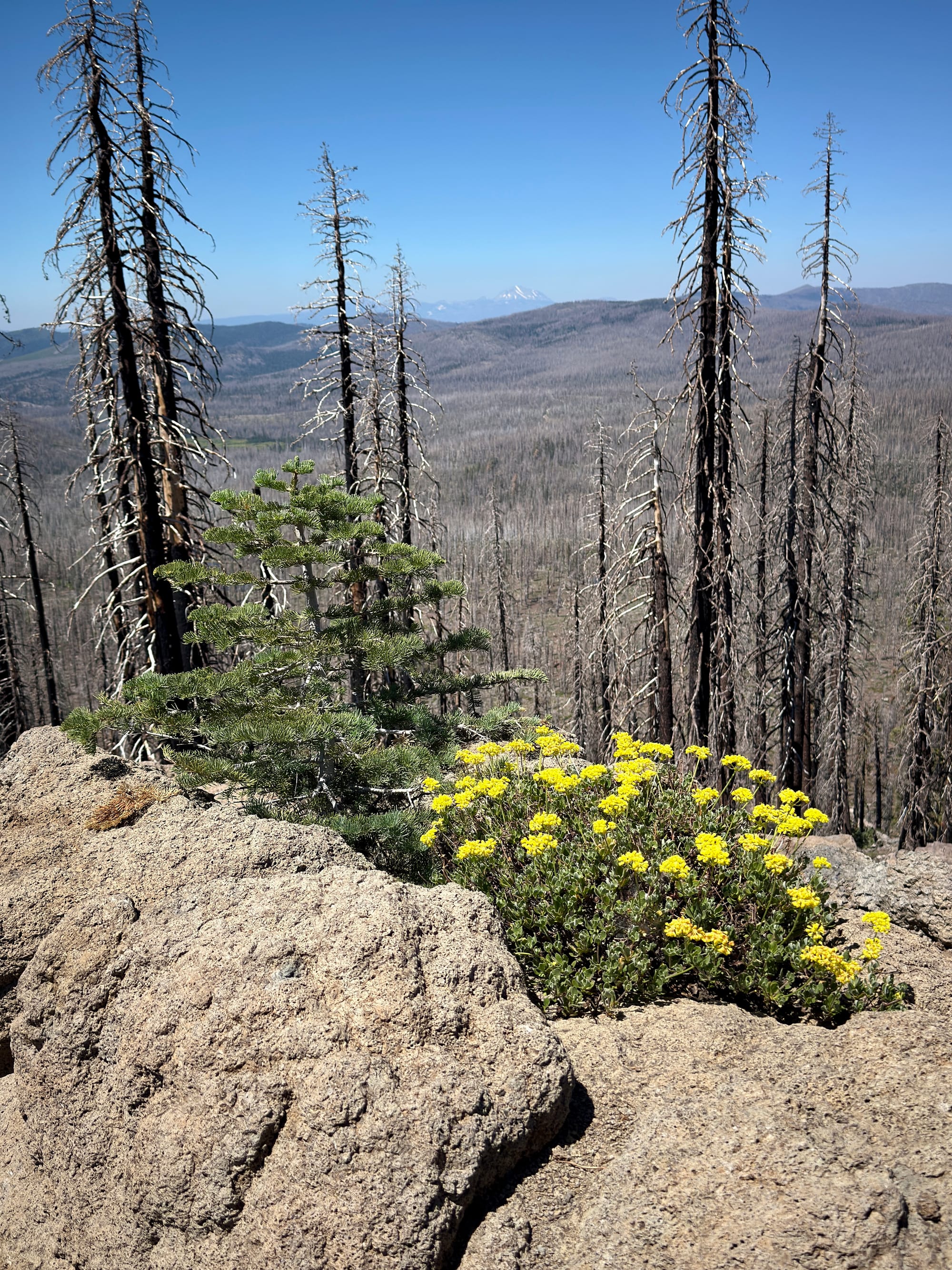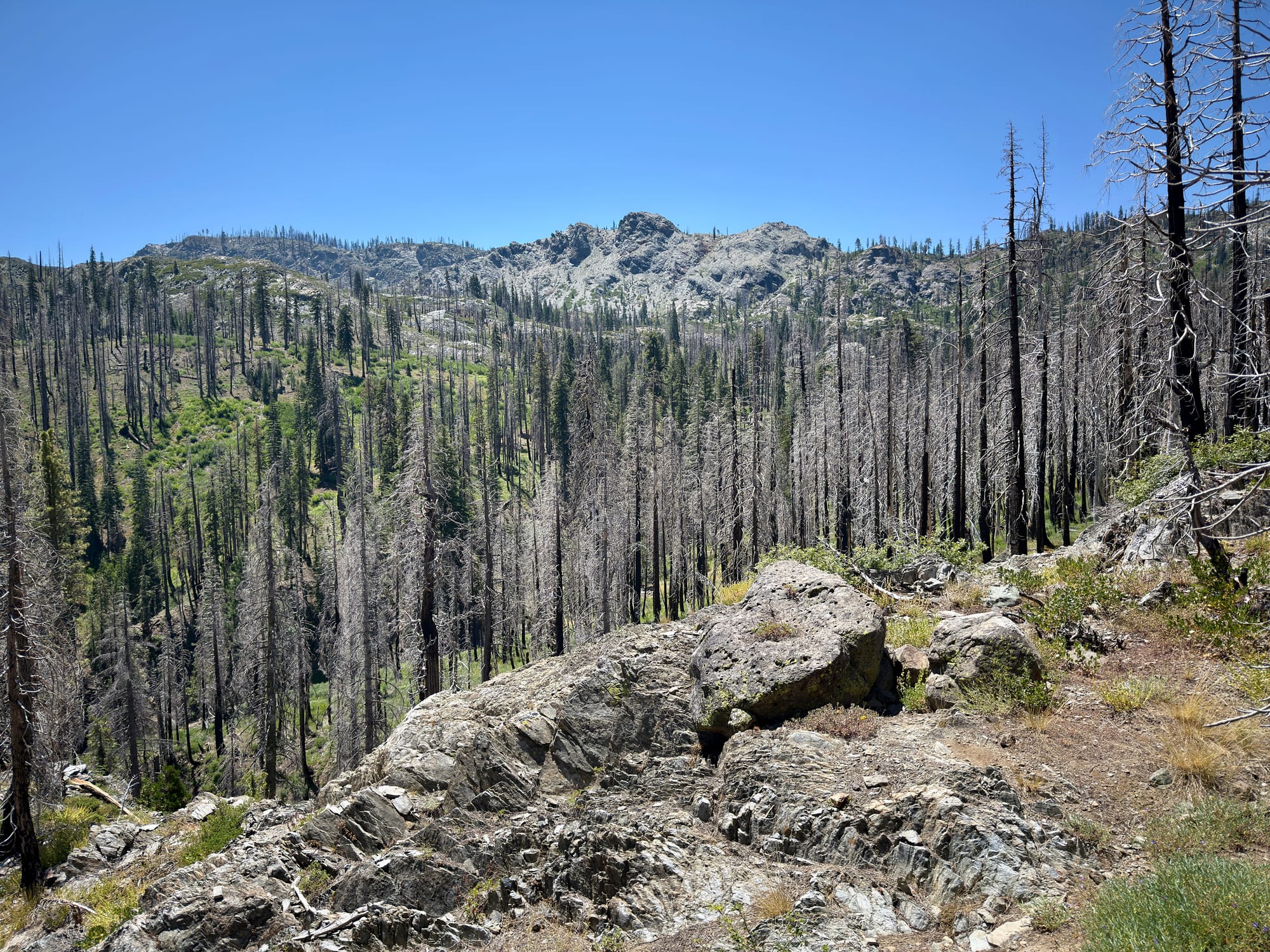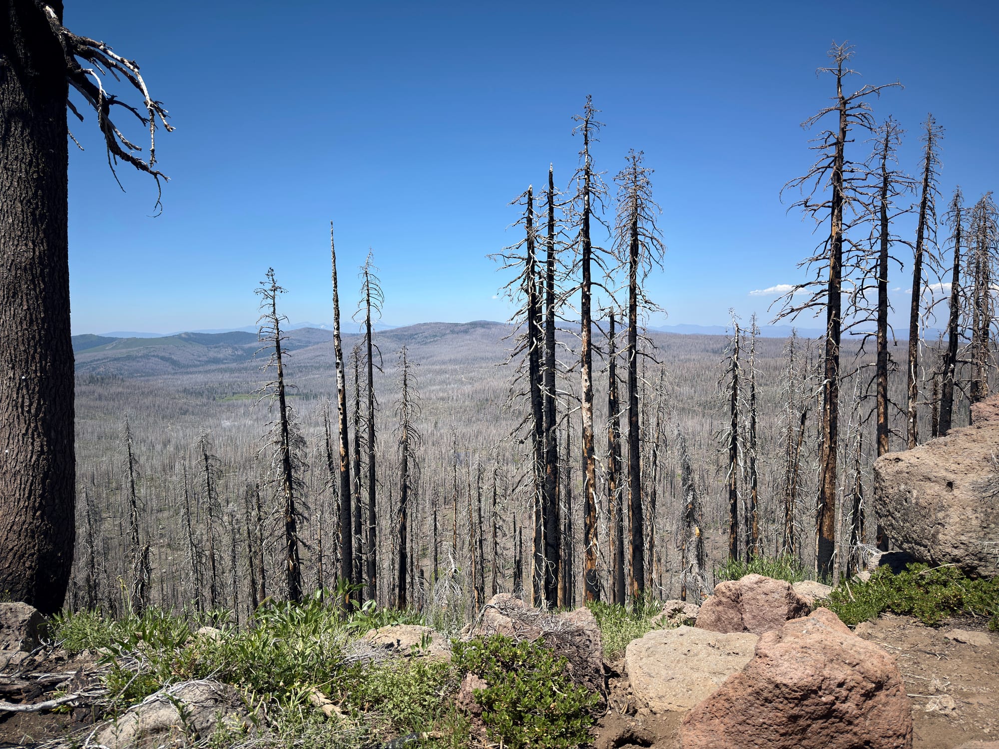 In my experience, hiking 5,500 feet of elevation results in amazing views. The payoff today was a vista of the million (literally!) plus acres scorched by the Dixie Fire.