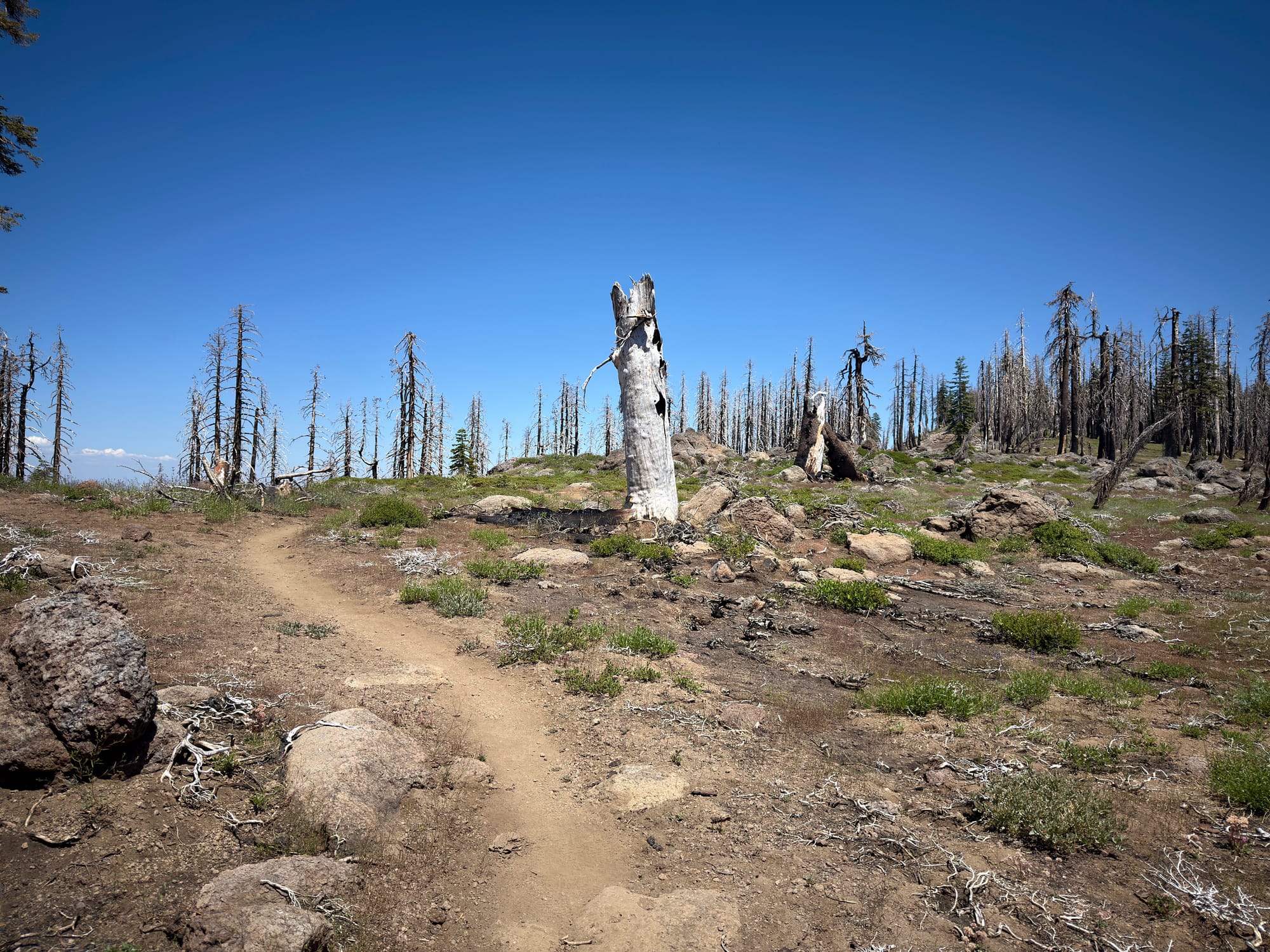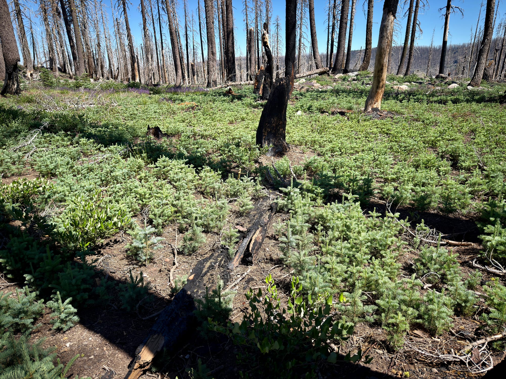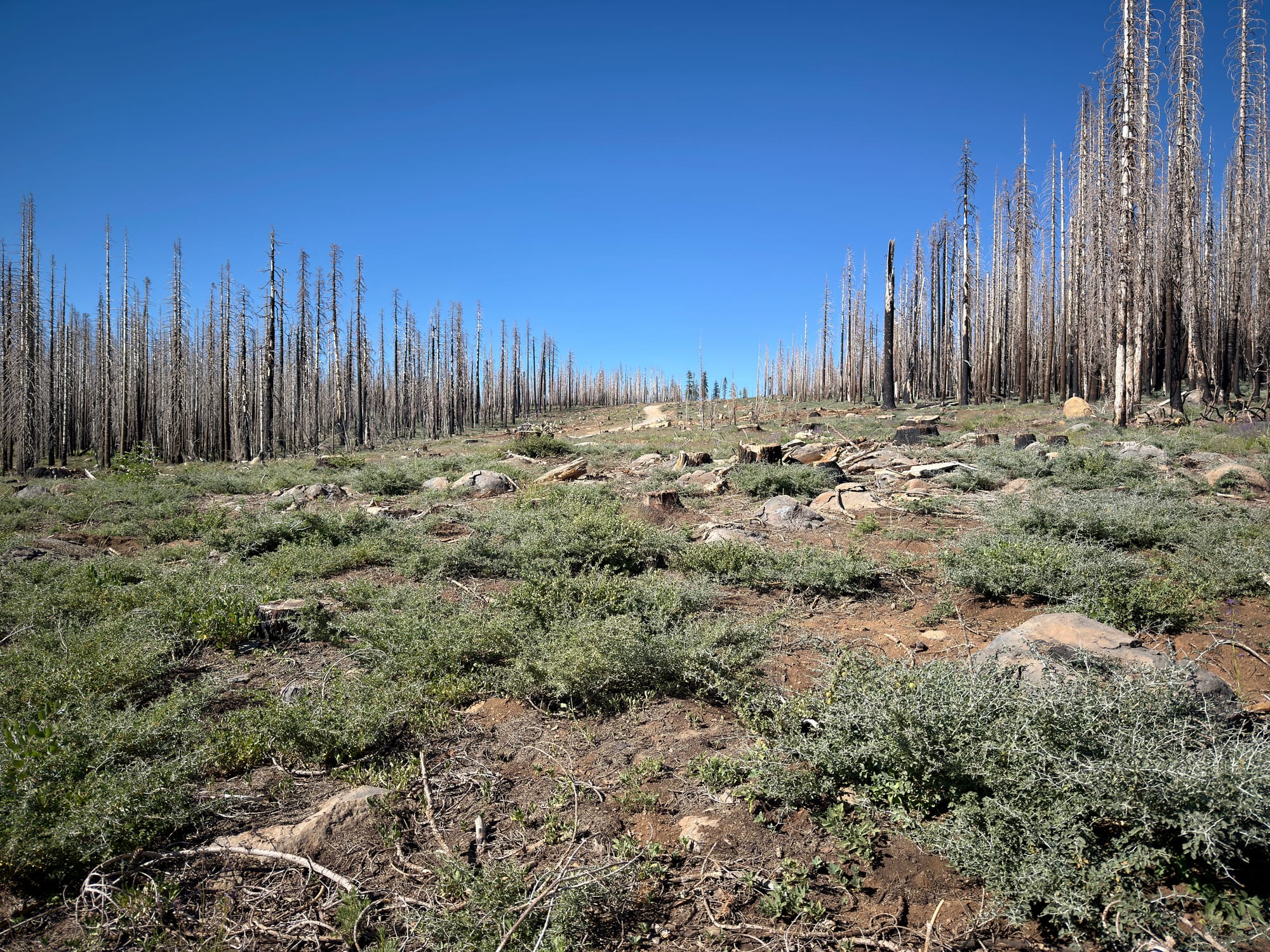 New trees! A welcome sight in a devastated landscape. Some stretches had thick carpets of new trees - I’m not sure if they were seeded somehow or were the result of a natural regeneration, but it was great to see regardless. In a couple decades parts of this section might look like a forest again.