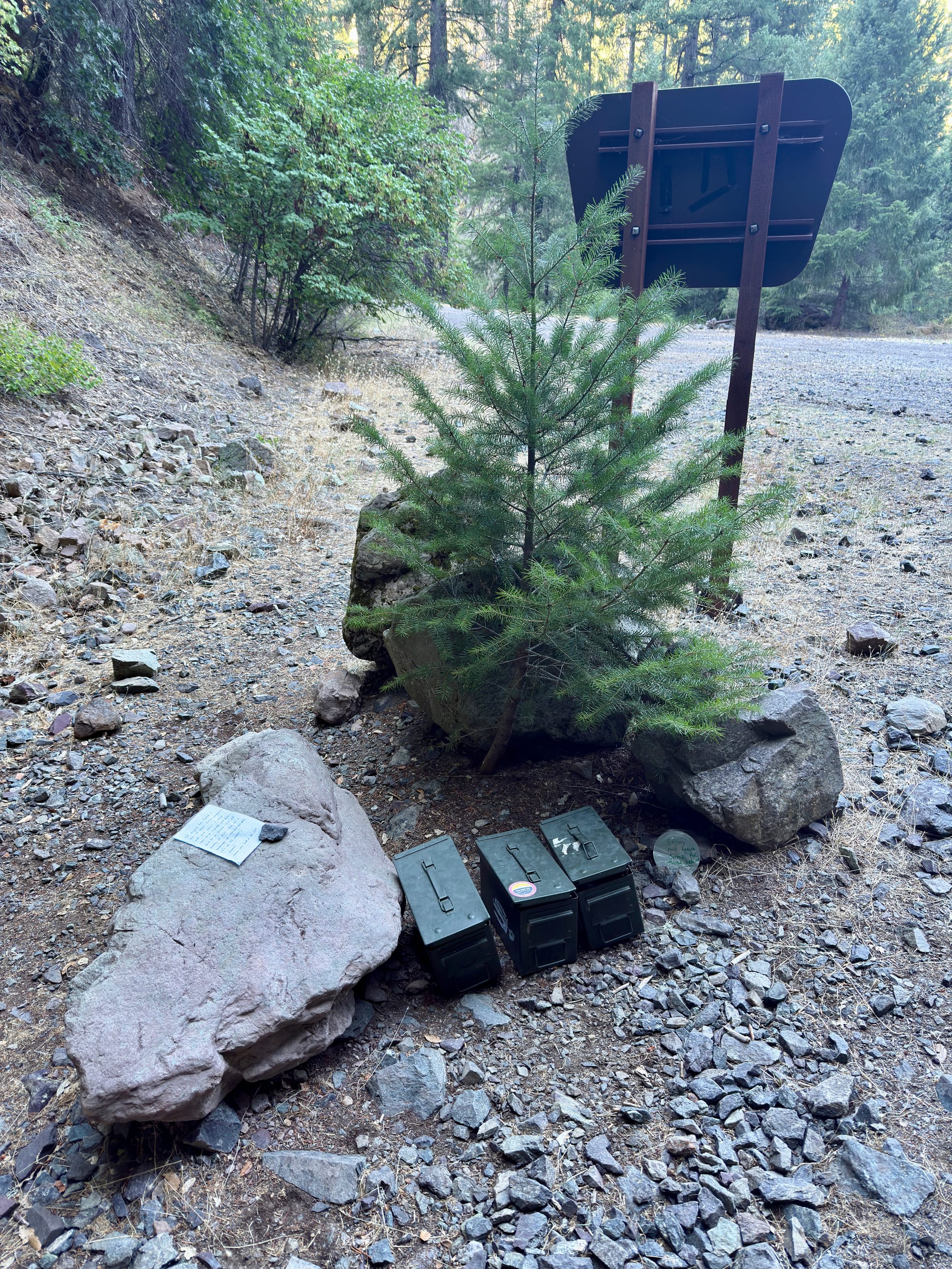 A local trail angel (appropriately for Northern California) leaves trail magic in ammunition boxes.