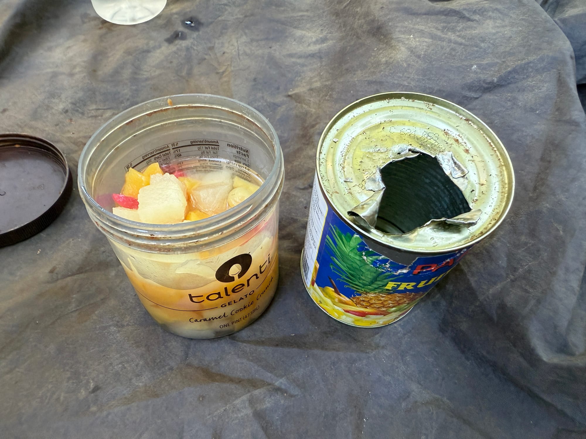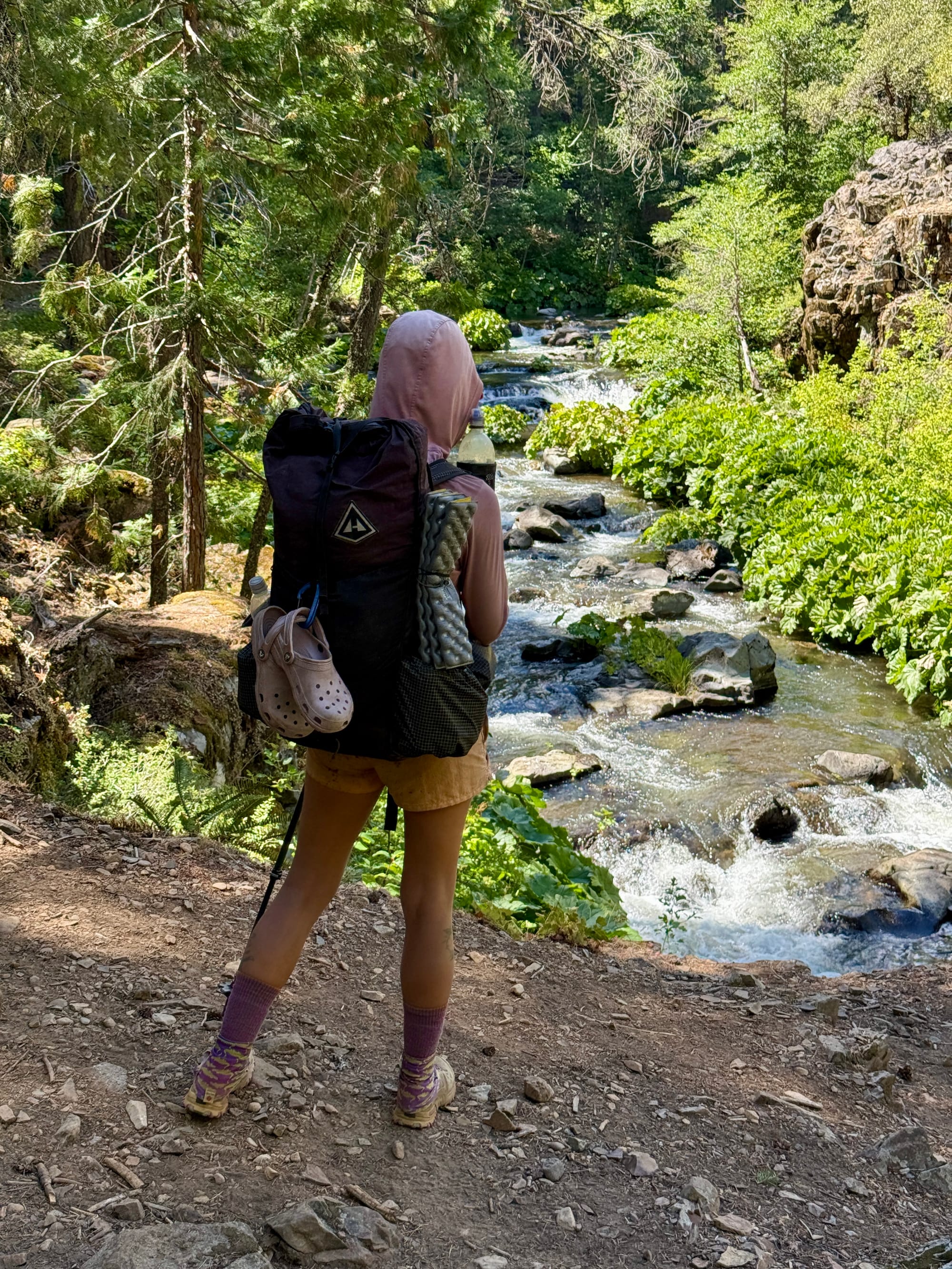 There was trail magic under a bridge by the creek. We didn’t have a can opener and Kristin bashed it against a rock until we could pry it open with a titanium spork. We’re basically cave people at this point.