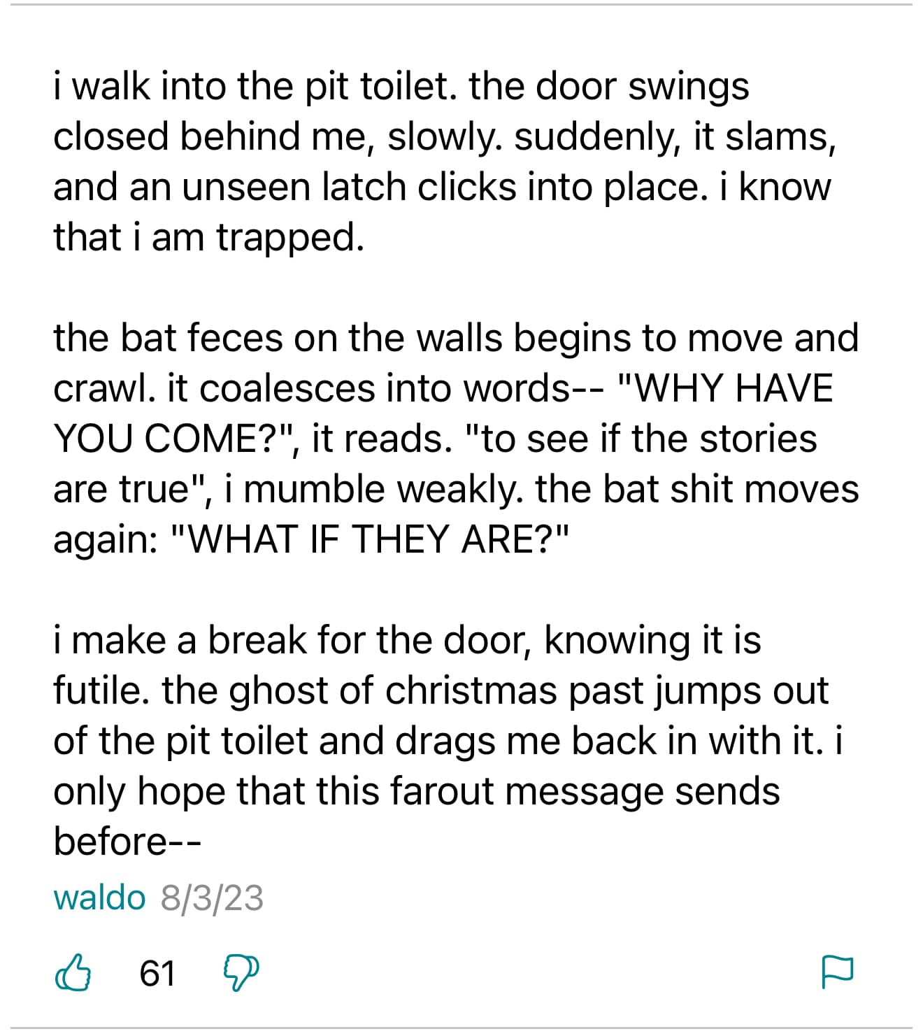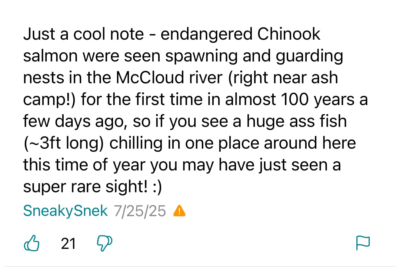 The FarOut comments on this very unremarkable little campground and privy near the McCloud River were some of the best yet.