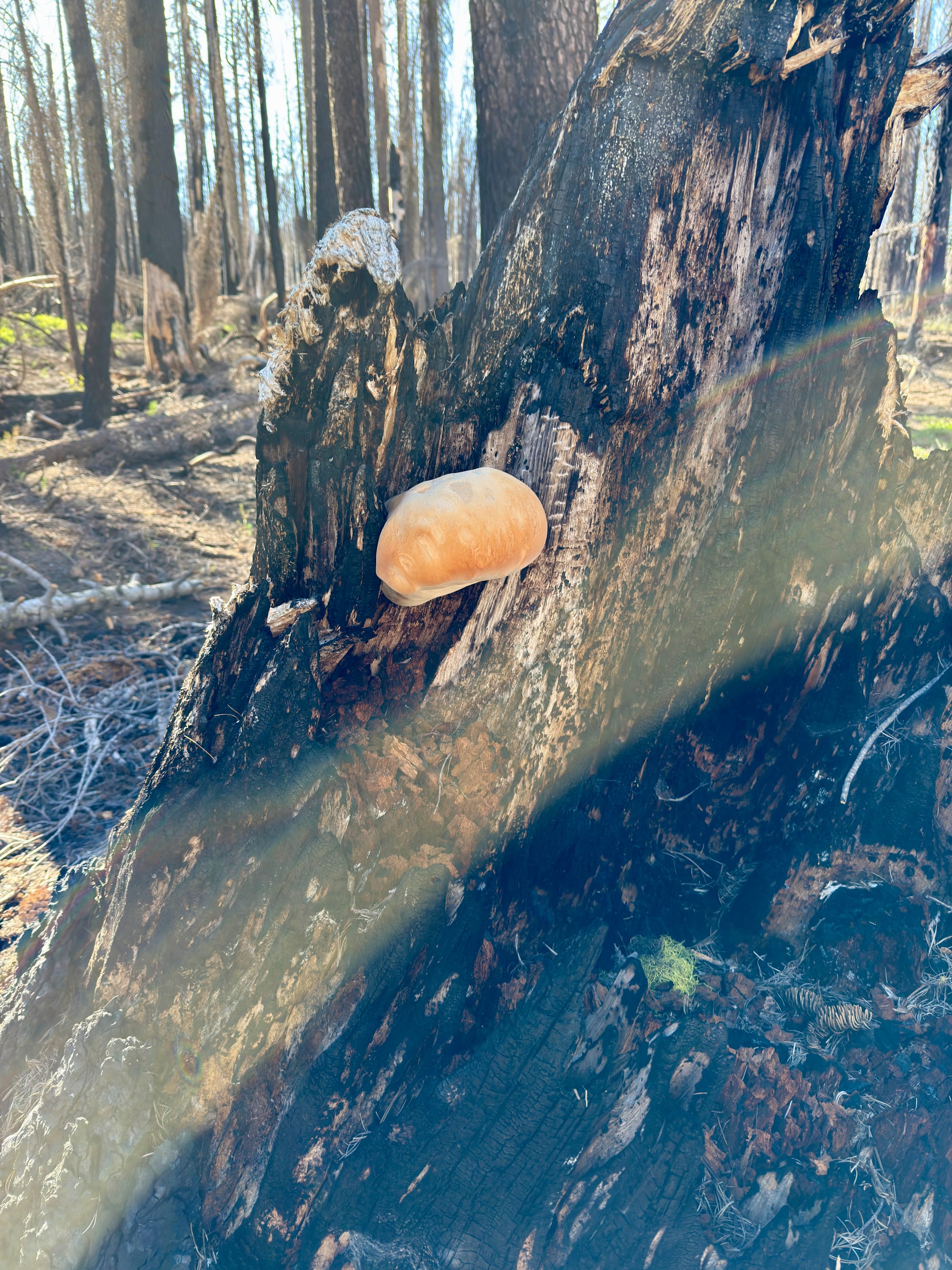 Fungi breaking down a burned stump on a non-quarterly timescale that is difficult to fathom.