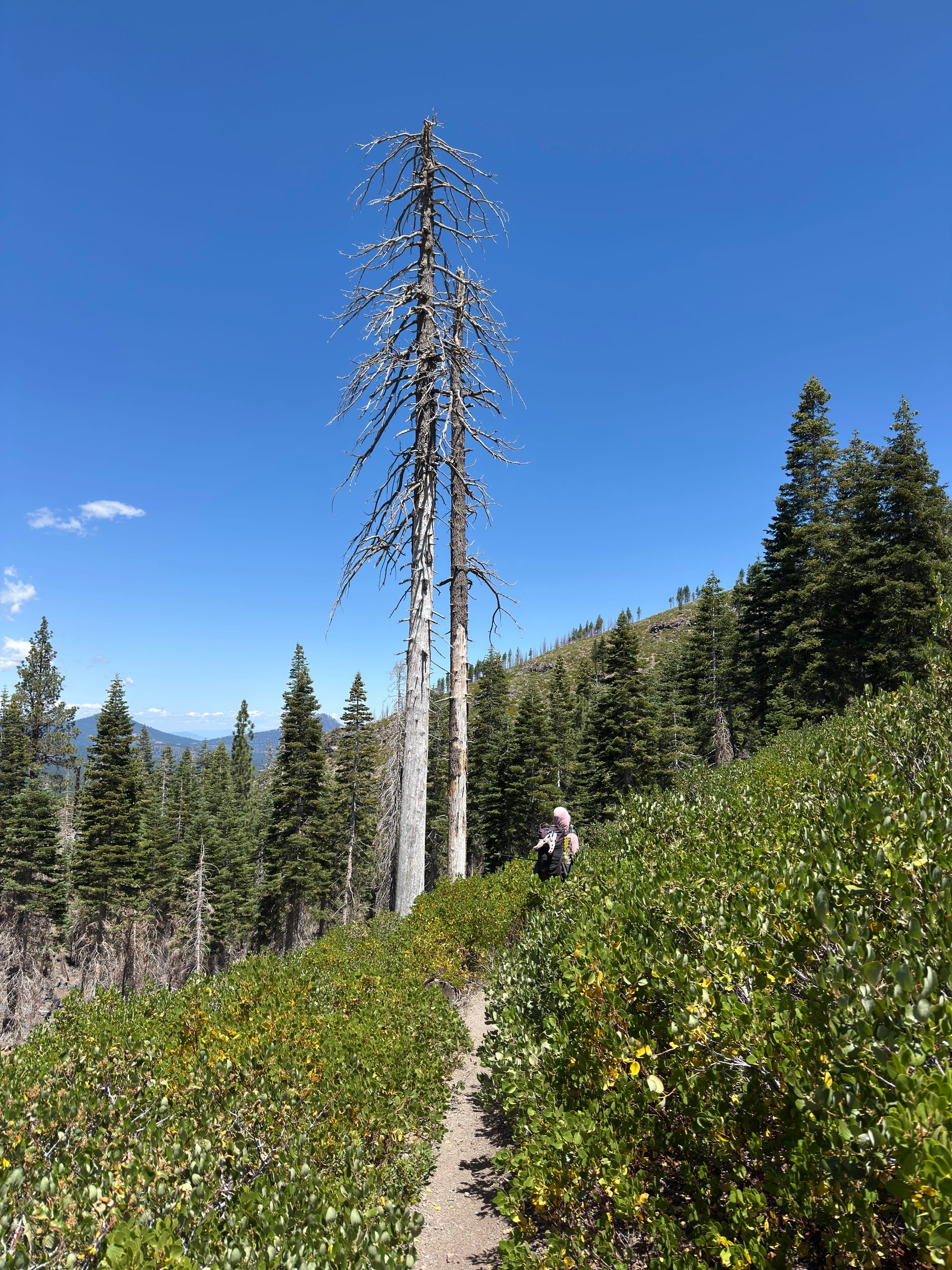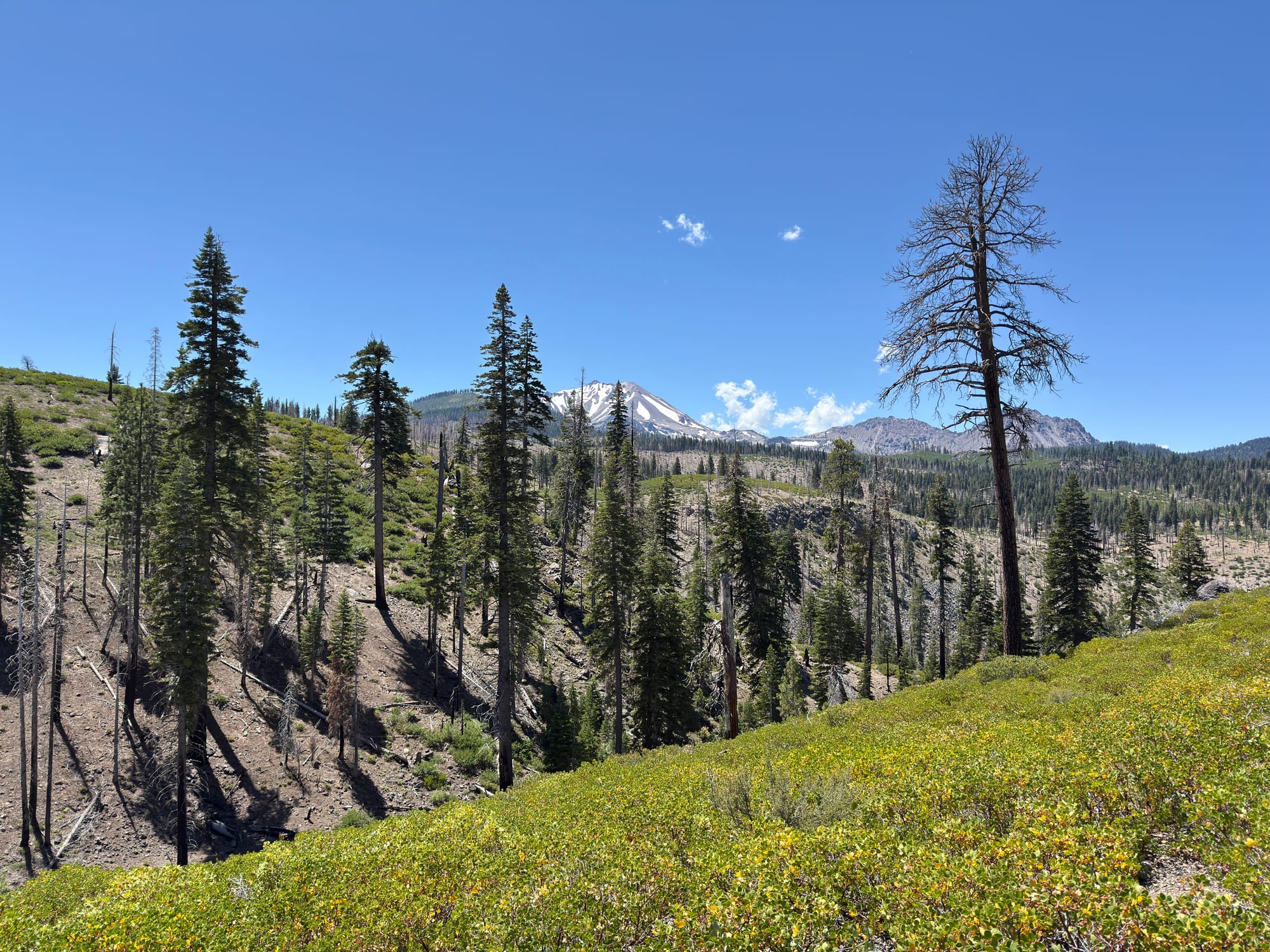 The trail threw us up a super annoying 150 feet elevation gain switchback only to give us an unobstructed view of Mt. Lassen. PCT, you’re forgiven .