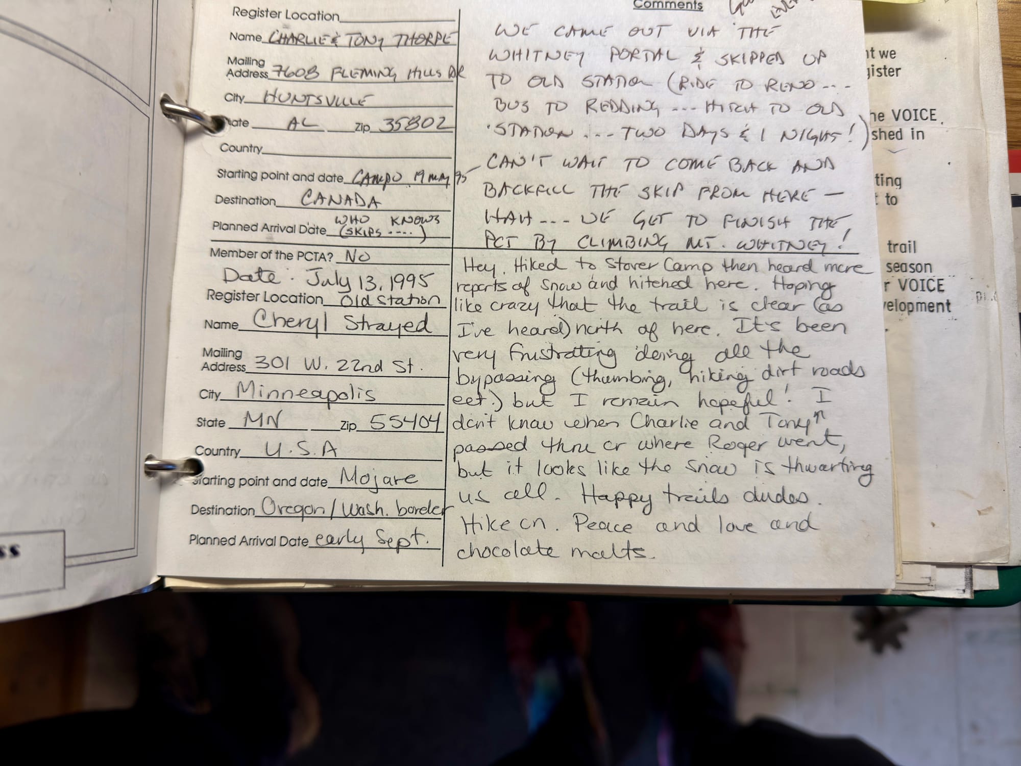 The amazing postmaster at Old Station showed us Cheryl Strayed’s entry from 1995 which answered some questions I had from reading Wild but opened up many more. Why I care about someone who ”hiked“ this trail 30 something years ago is currently beyond me (and I am reflecting on it) yet here I am.