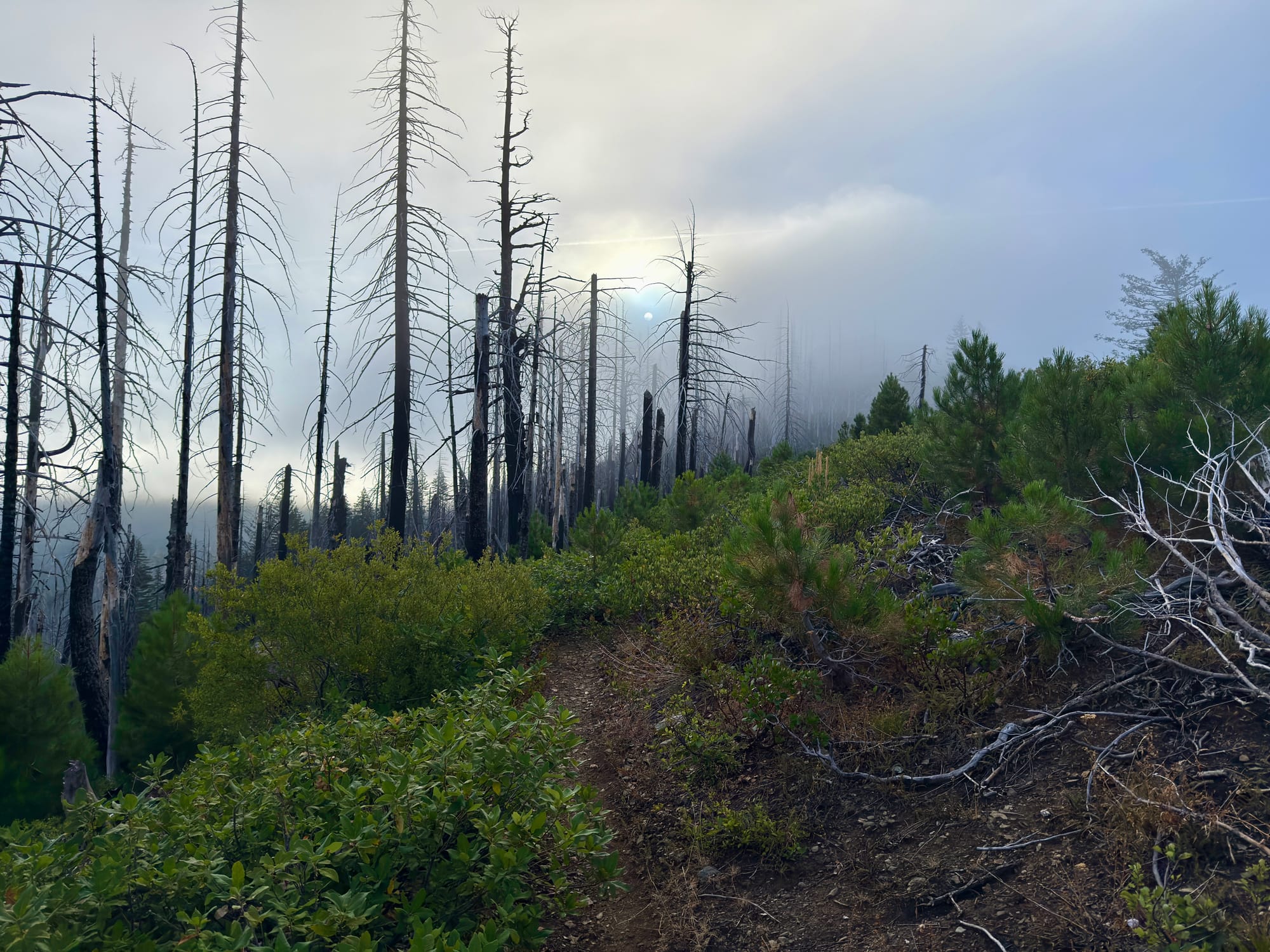 Mr Emoji summed things up well. It’s one thing to walk through a burned forest, it’s another experience entirely when it becomes a harsh, steep, overgrown obstacle course.