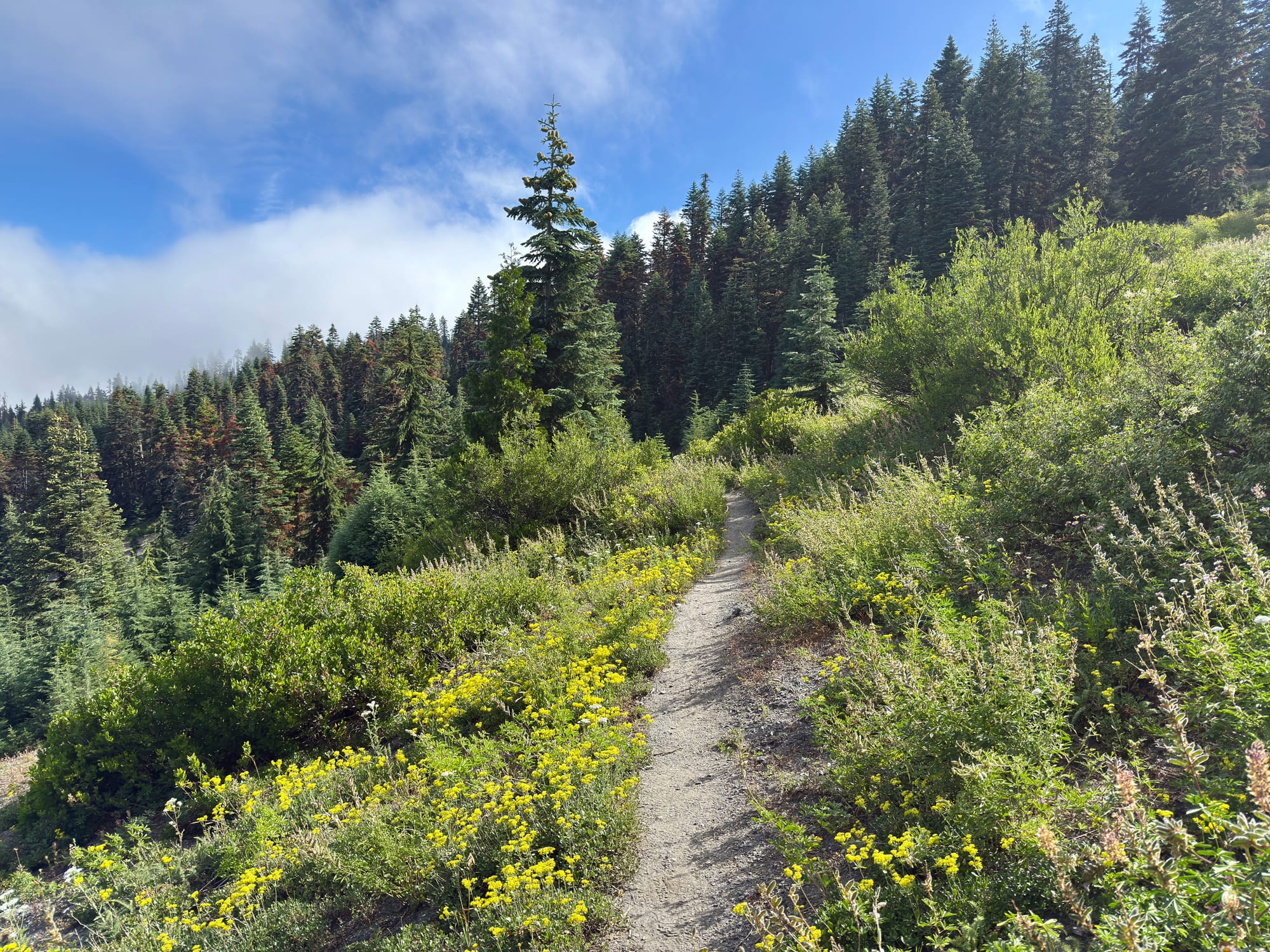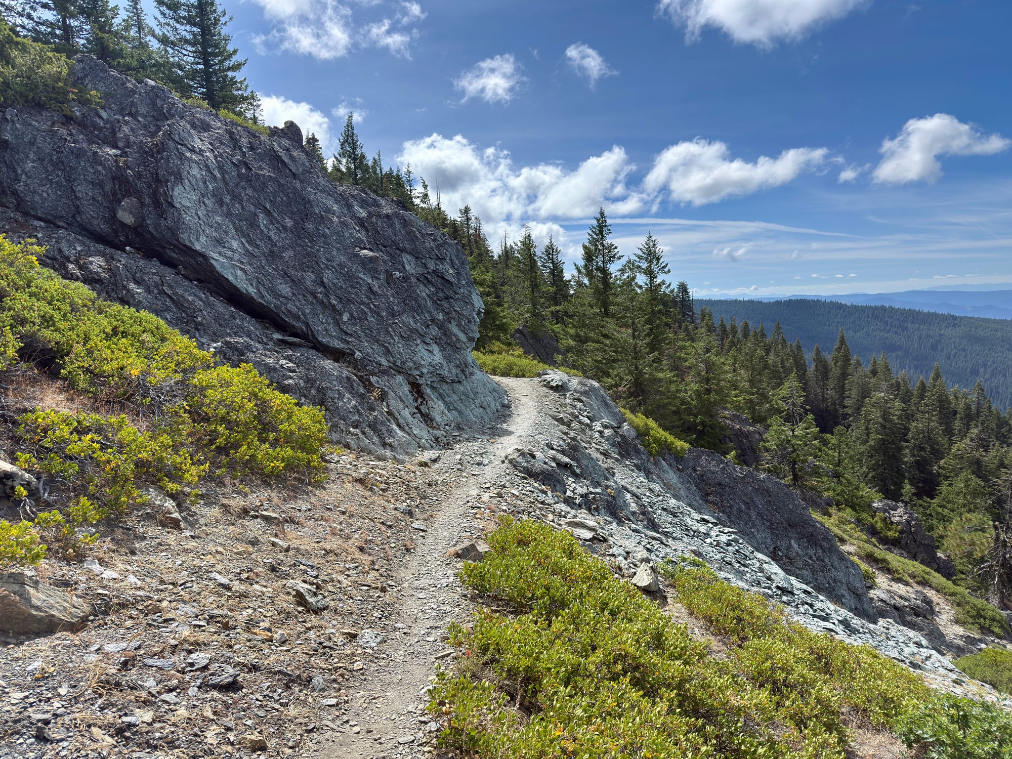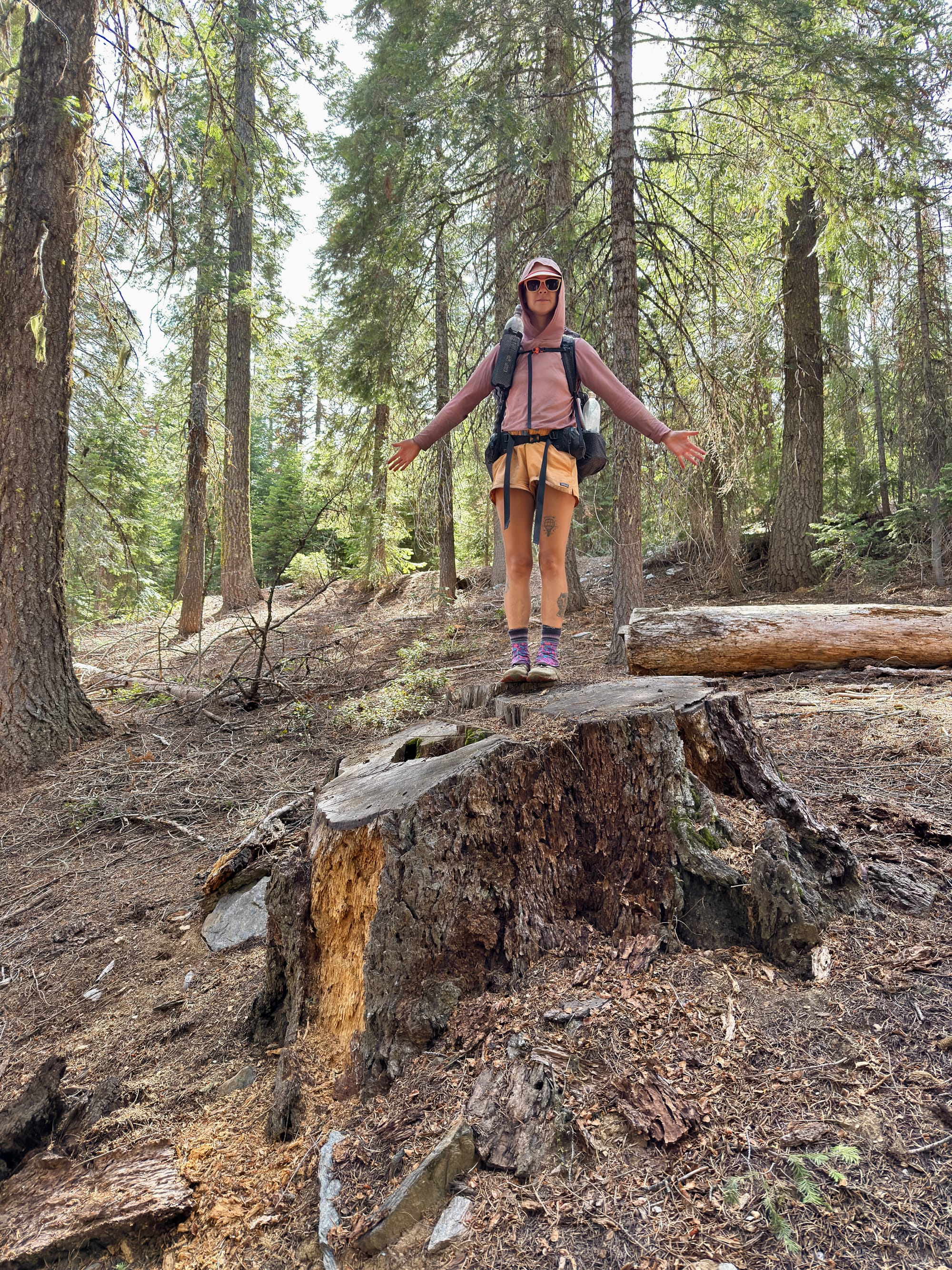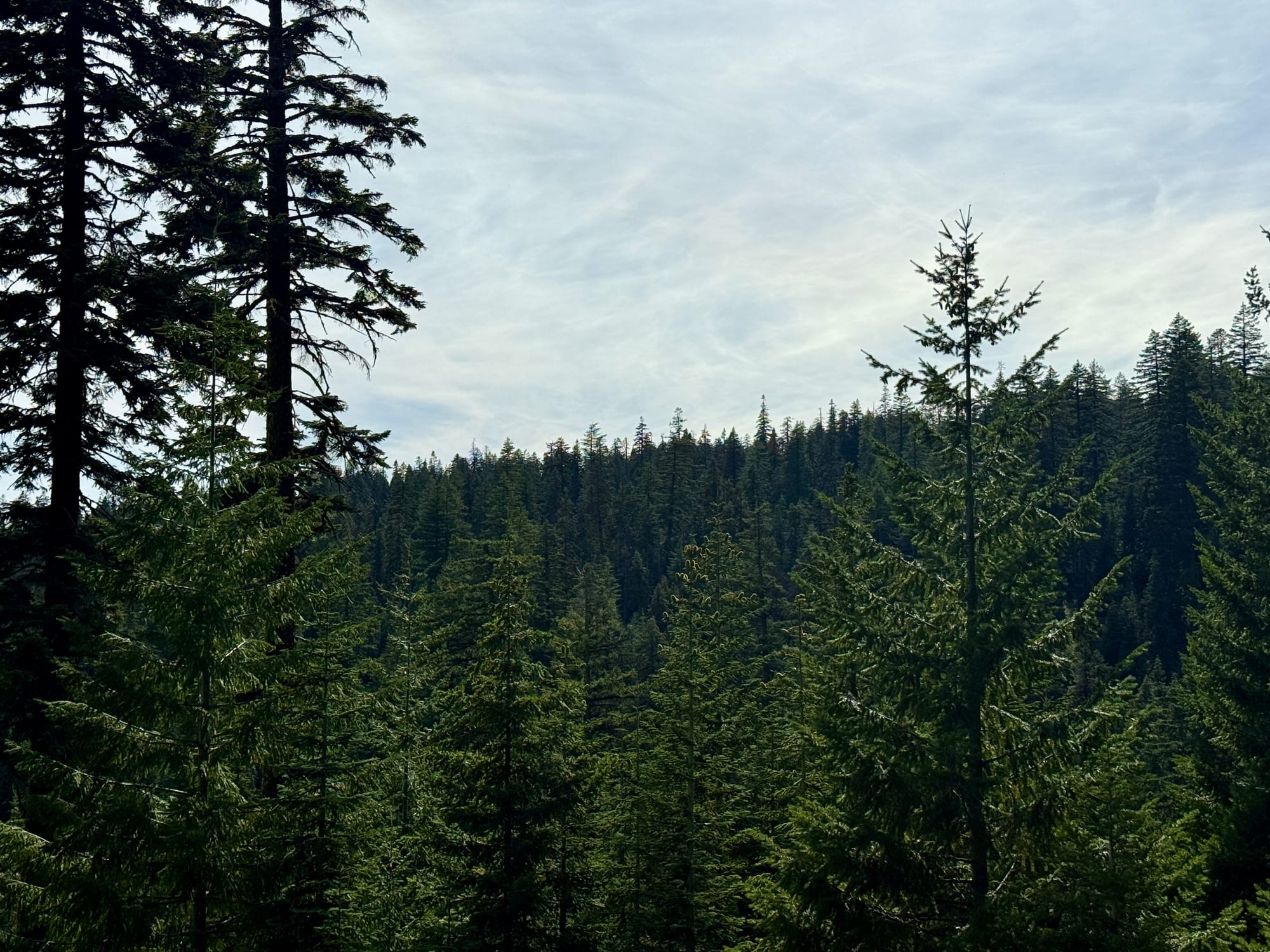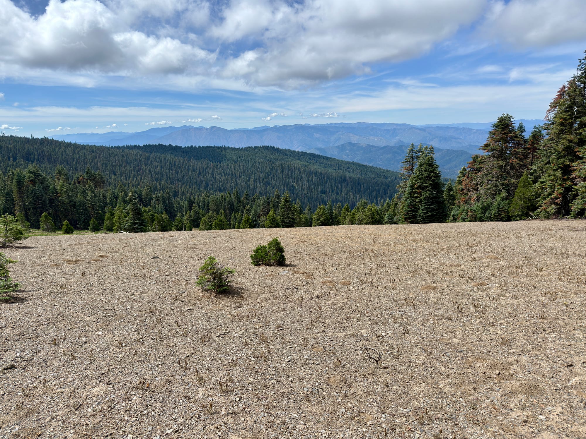 After #blowdowntown (written on a PCT placard) We eventually found live forest and clear trail.