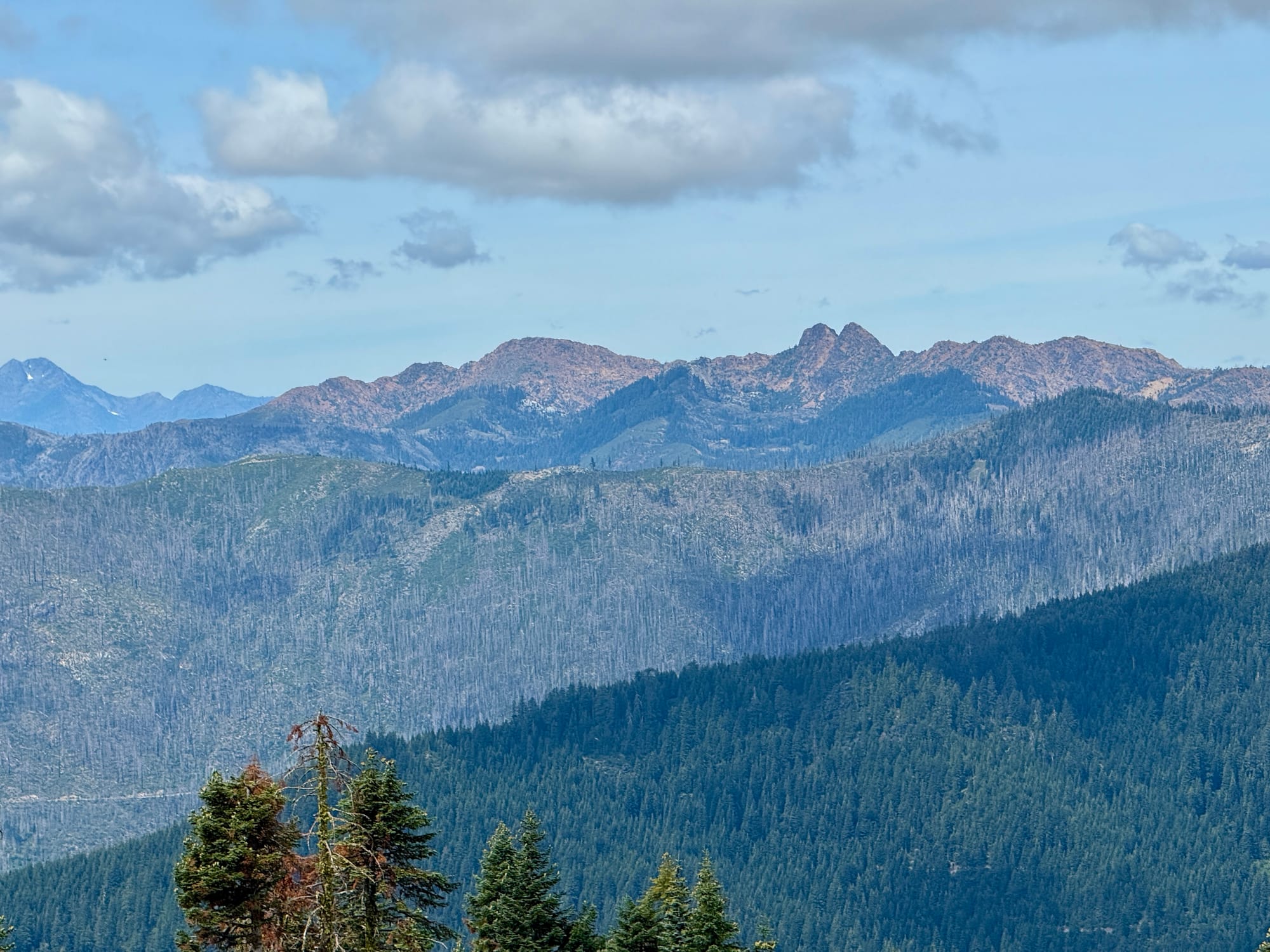 Looking back at all the peaks we traversed climbing out of Seiad Valley yesterday.