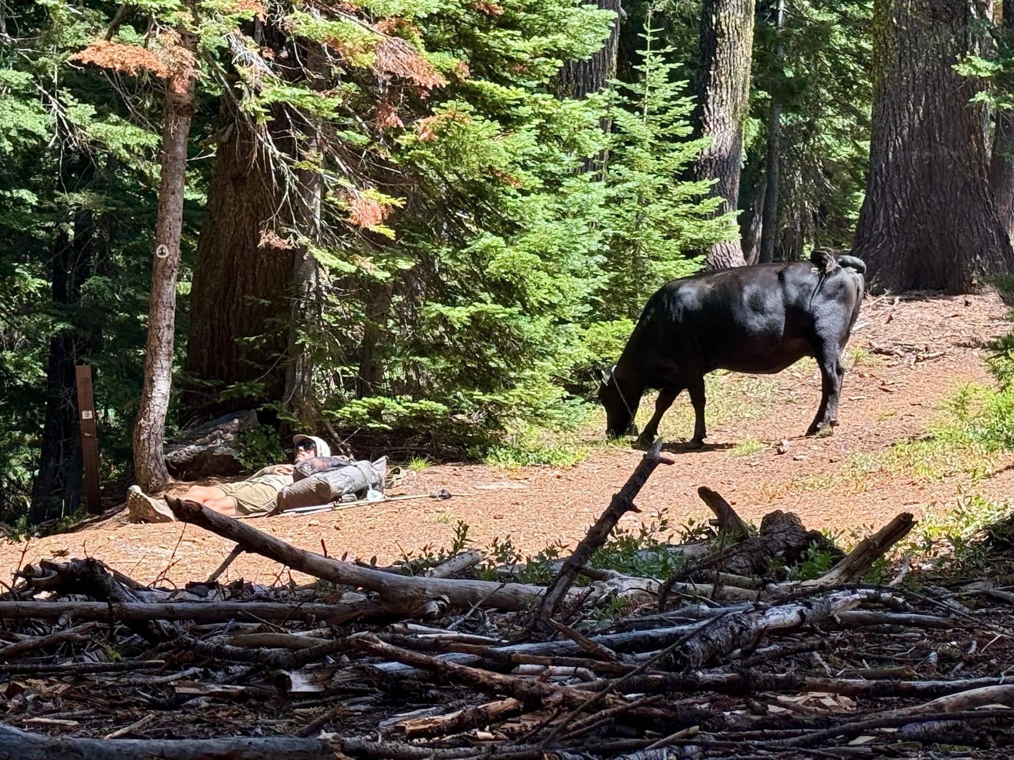 We met this beautiful cow above Alex Hole (A-Hole?) spring at lunch time. We both decided that we‘re no longer going to eat summer sausage on trail and aim for as vegetarian a diet as we can on trail. It’s hard to forego meat coming into town after 3-6 days of limited protein, but we’re adjusting.
