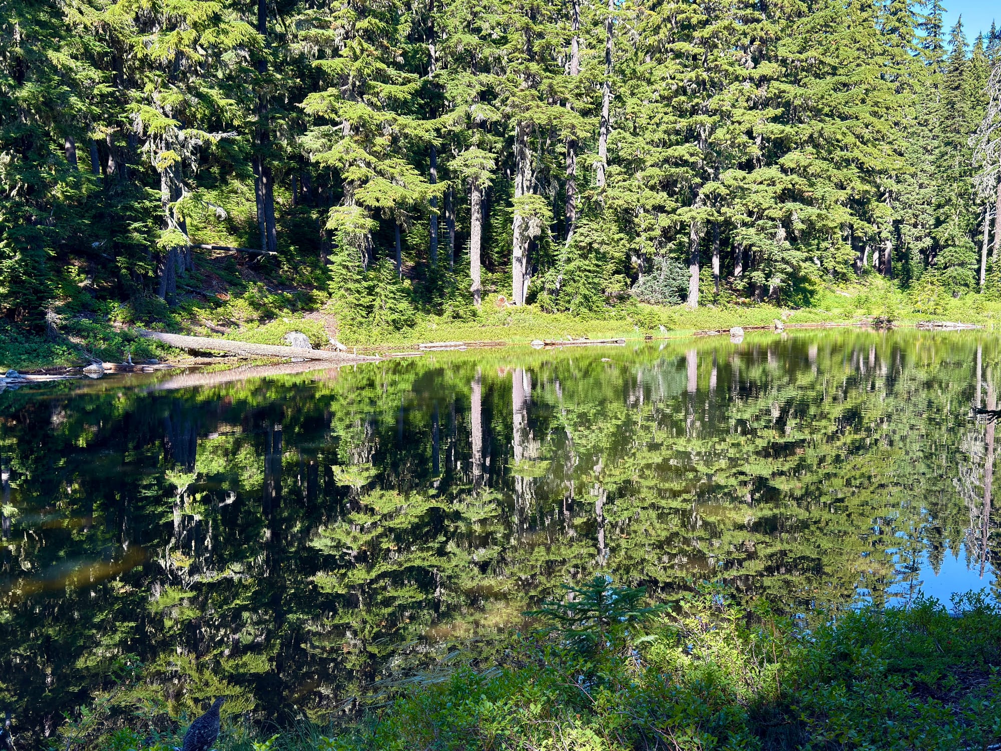 While it probably was technically a shortcut by distance, the Red Hill Trail was overgrown (with huckleberries!) and relatively poorly maintained compared to the PCT so we didn’t save much/any time or energy on our detour.