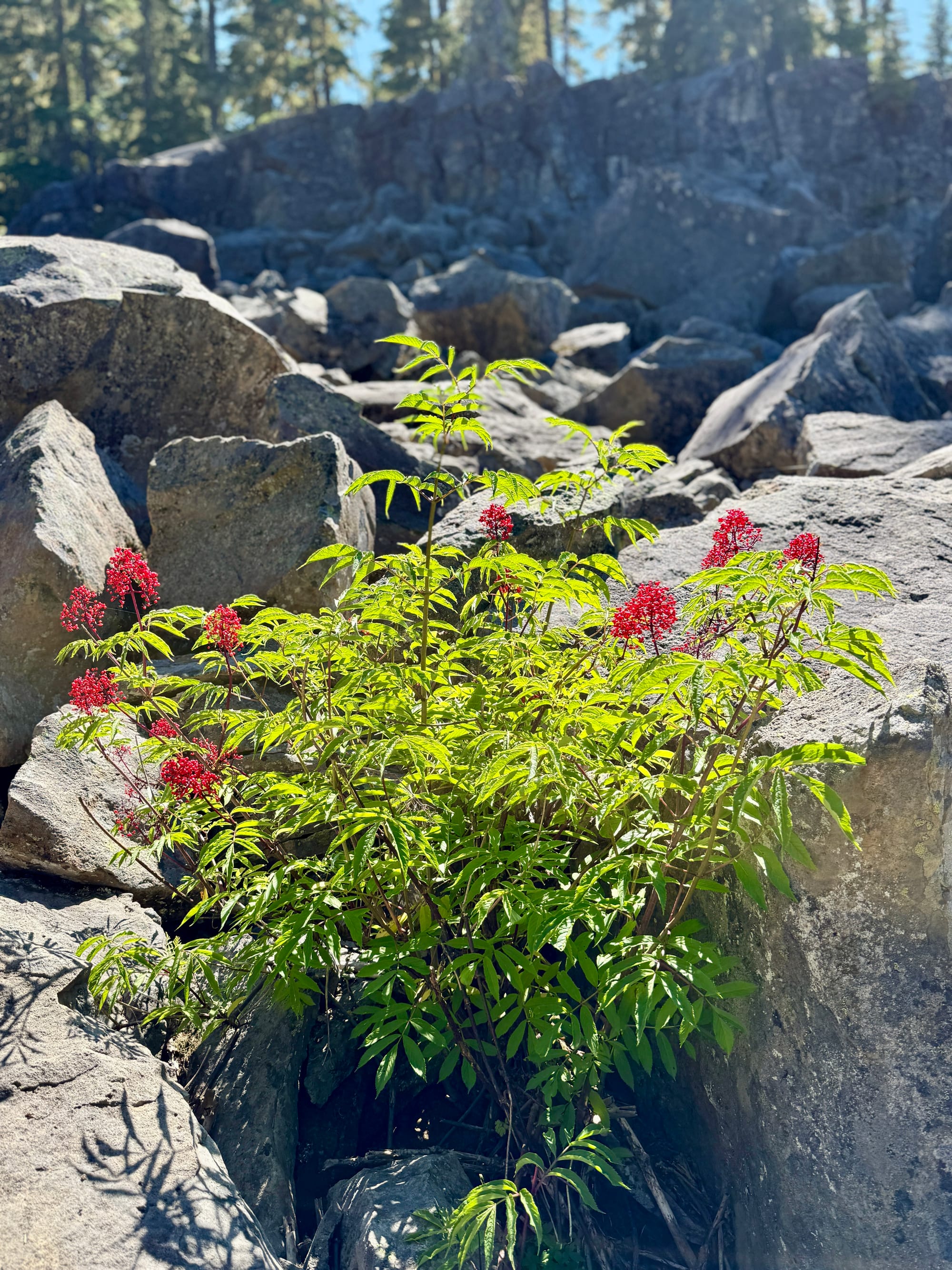 Elder berries. We met an older couple back in Hyatt Lake who were heading out to collect Elder berries. Maybe they felt obliged?