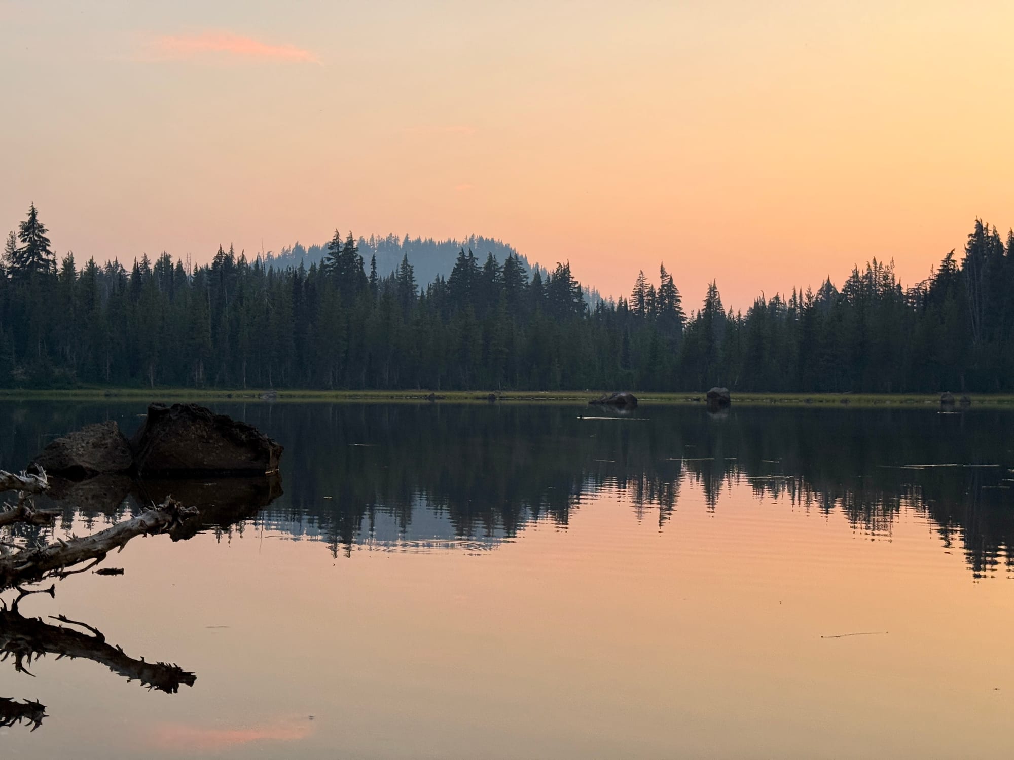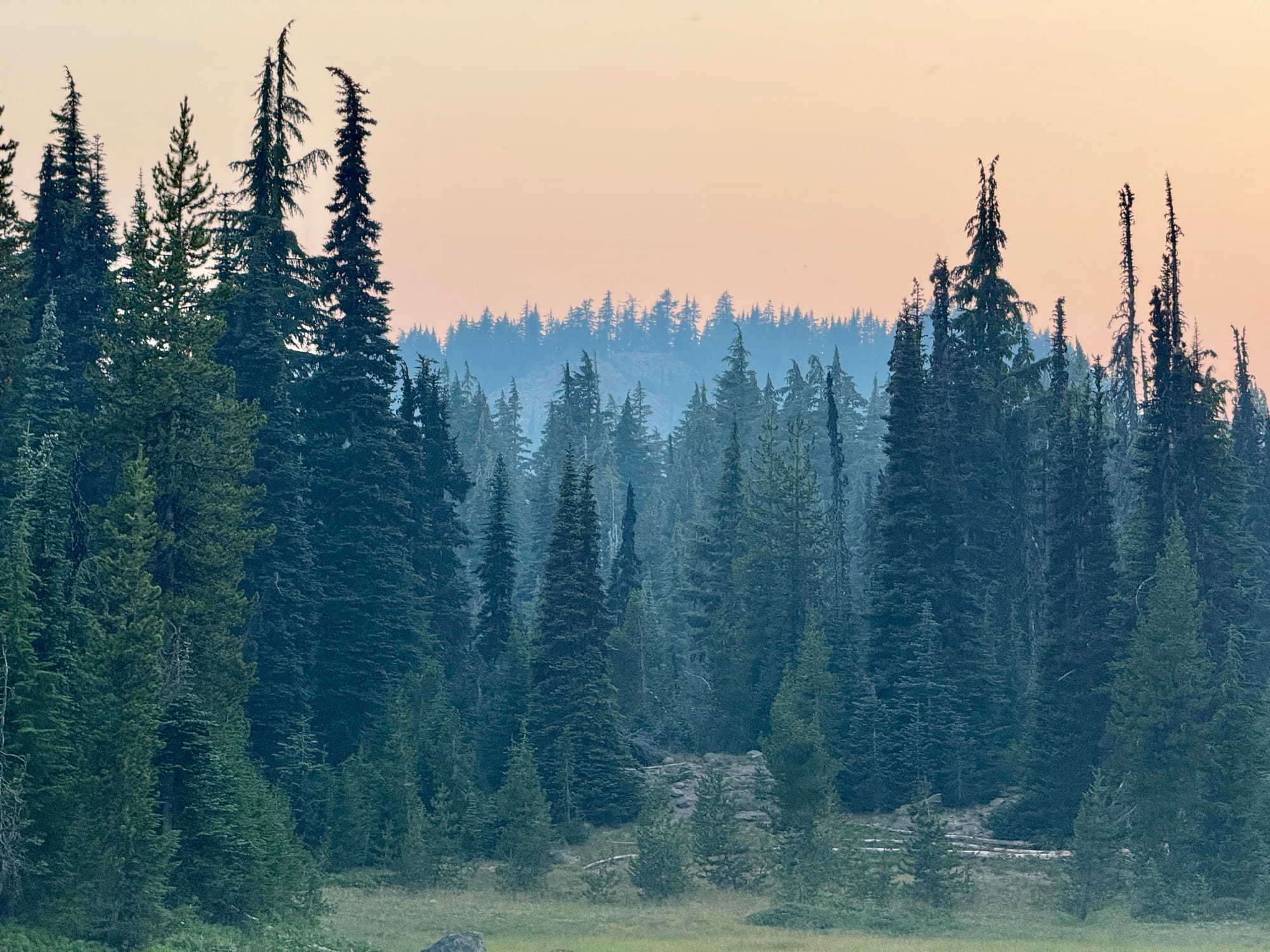 Pretty and pretty scary skies. The smoke was blowing in from the Flat fire outside of Sisters Oregon a few dozen miles away. We found some cell service to make sure it wasn’t a new fire and reassured a number of hikers we encountered that the fire was a safe distance away (even if the smoke wasn’t).