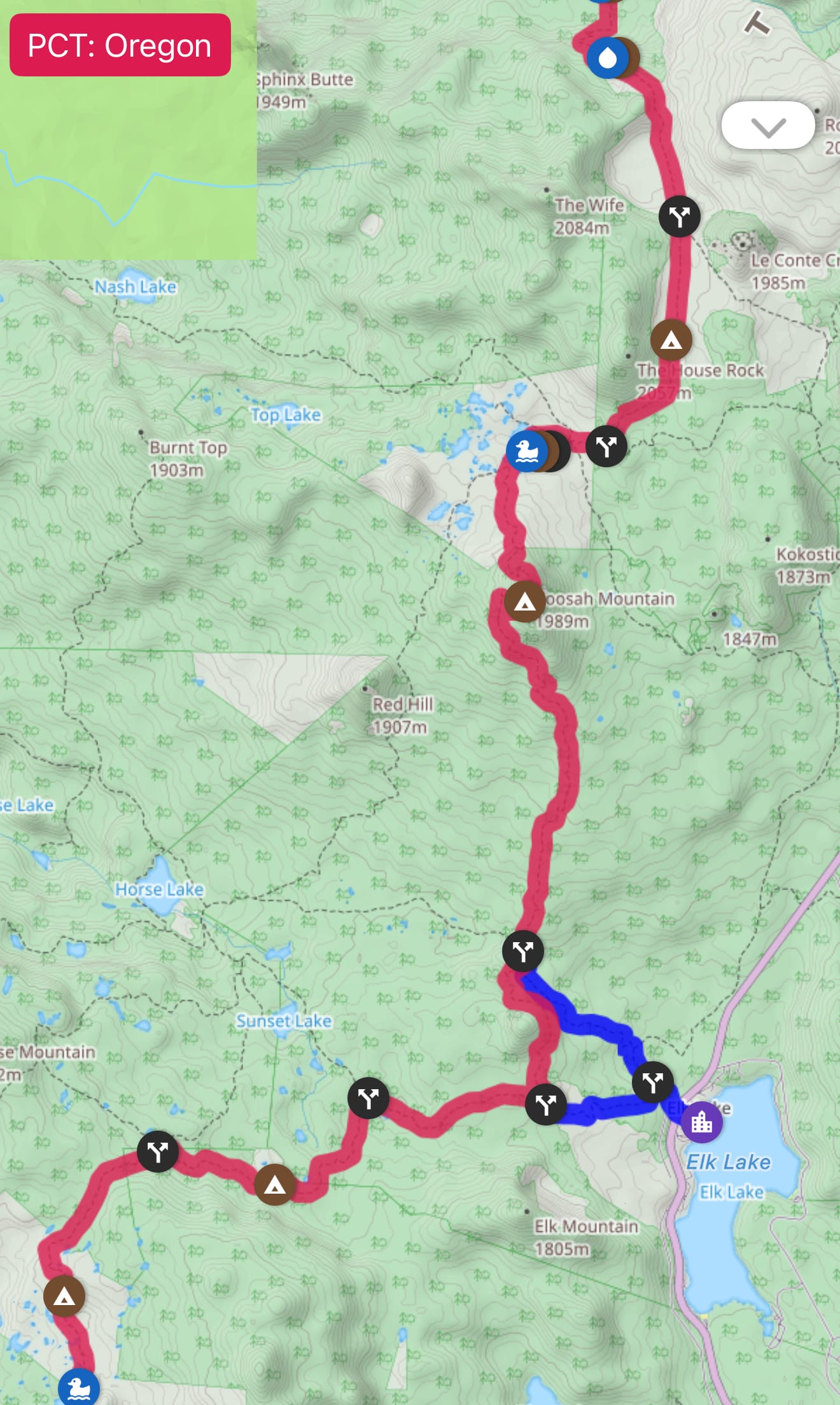 The Pacific Crest Trail took a heading East towards Elk Lake Resort before heading North towards the Three Sisters. We were good on food and decided that skipping one or two of the lake resorts in Oregon wouldn’t kill us, so we took the Red Hill Trail which, according to the map (LOL) was the hypotenuse of a right triangle that would save us a few miles.