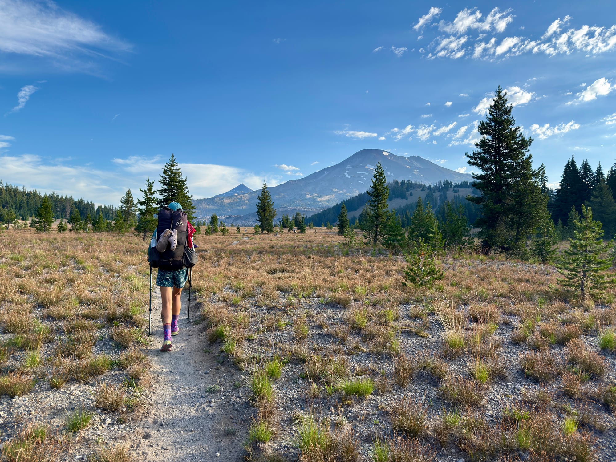 A fresh pair of new, as yet untested, La Sportiva Jackal IIs awaits me in Bend. I optimistically sent them to Bend after purchasing them in Ashland 215 miles back thinking the shoes that I started wearing in Old Station, CA at mile 1374 would hold out for 616 miles. Dumb. Feet are important on a through hike. Lesson learned.