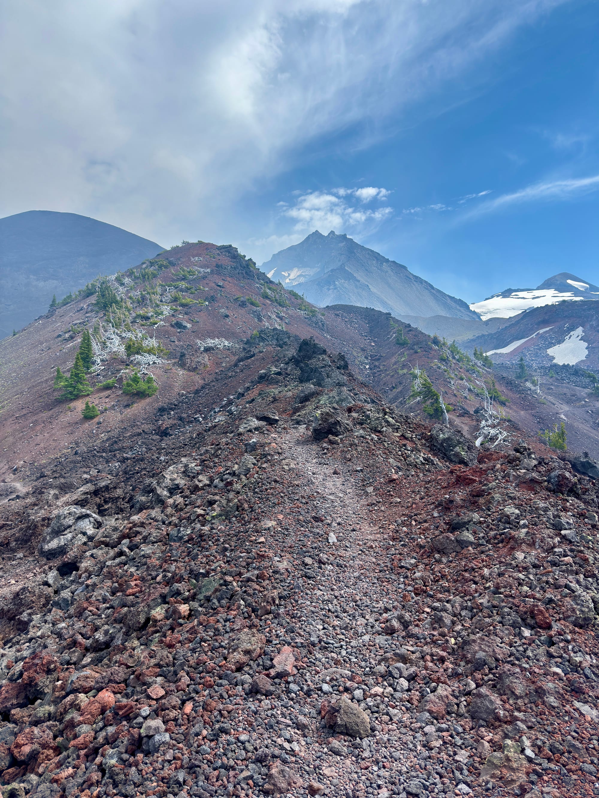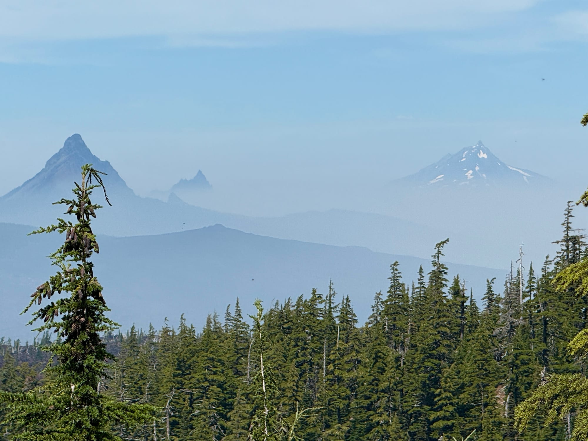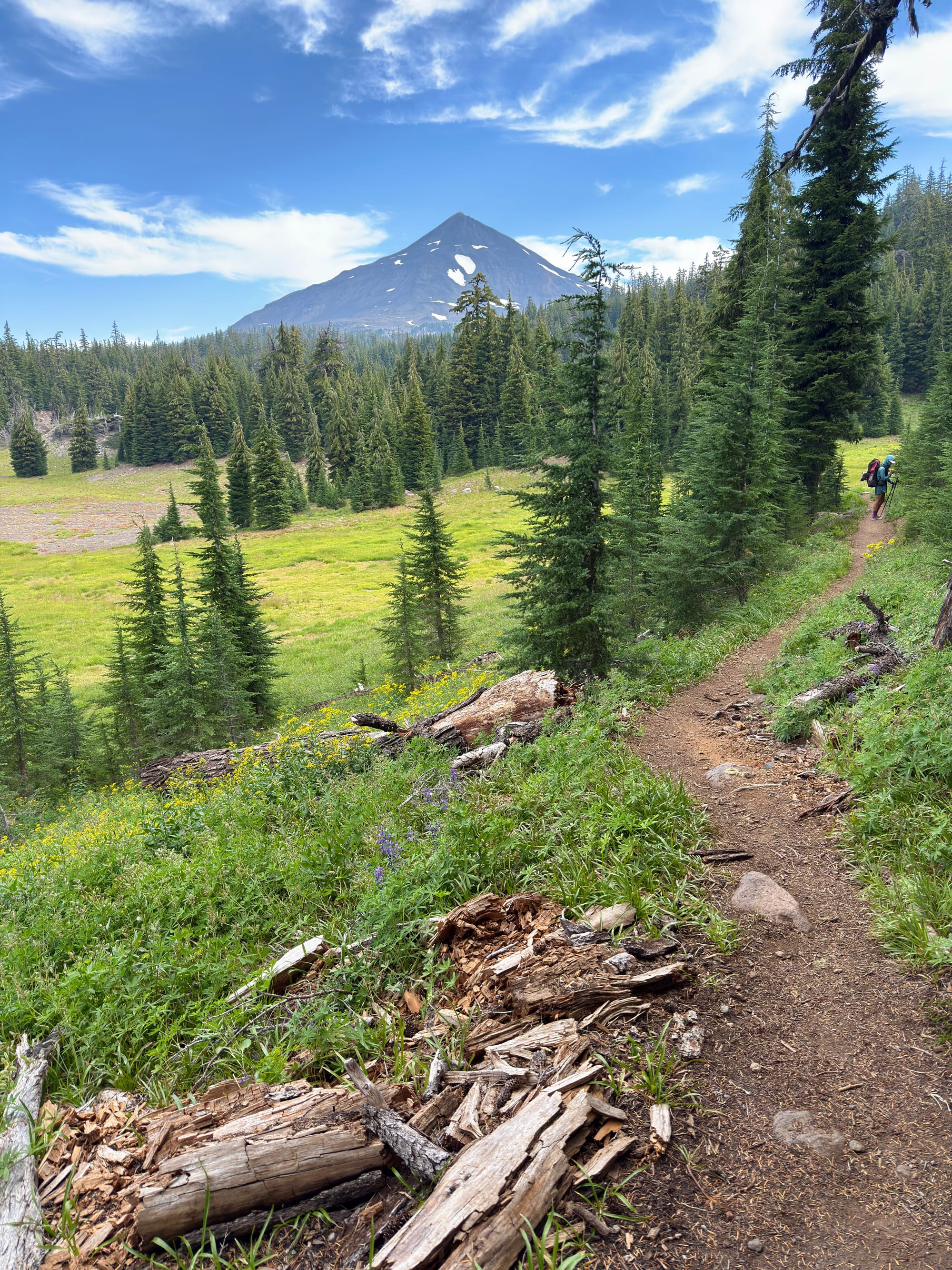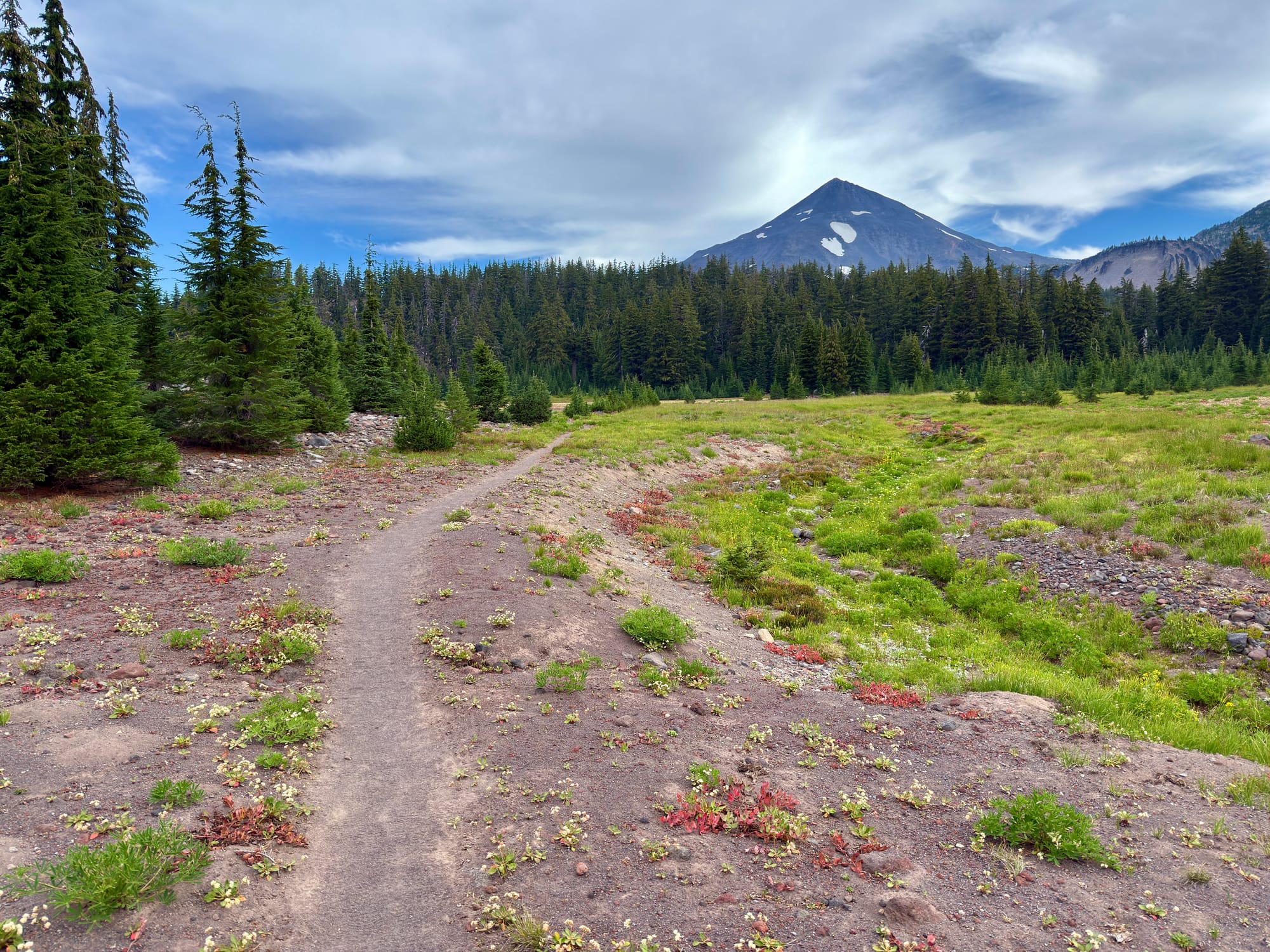 Mt. Washington, Three Fingered Jack, and Mount Jefferson ahead looking North.