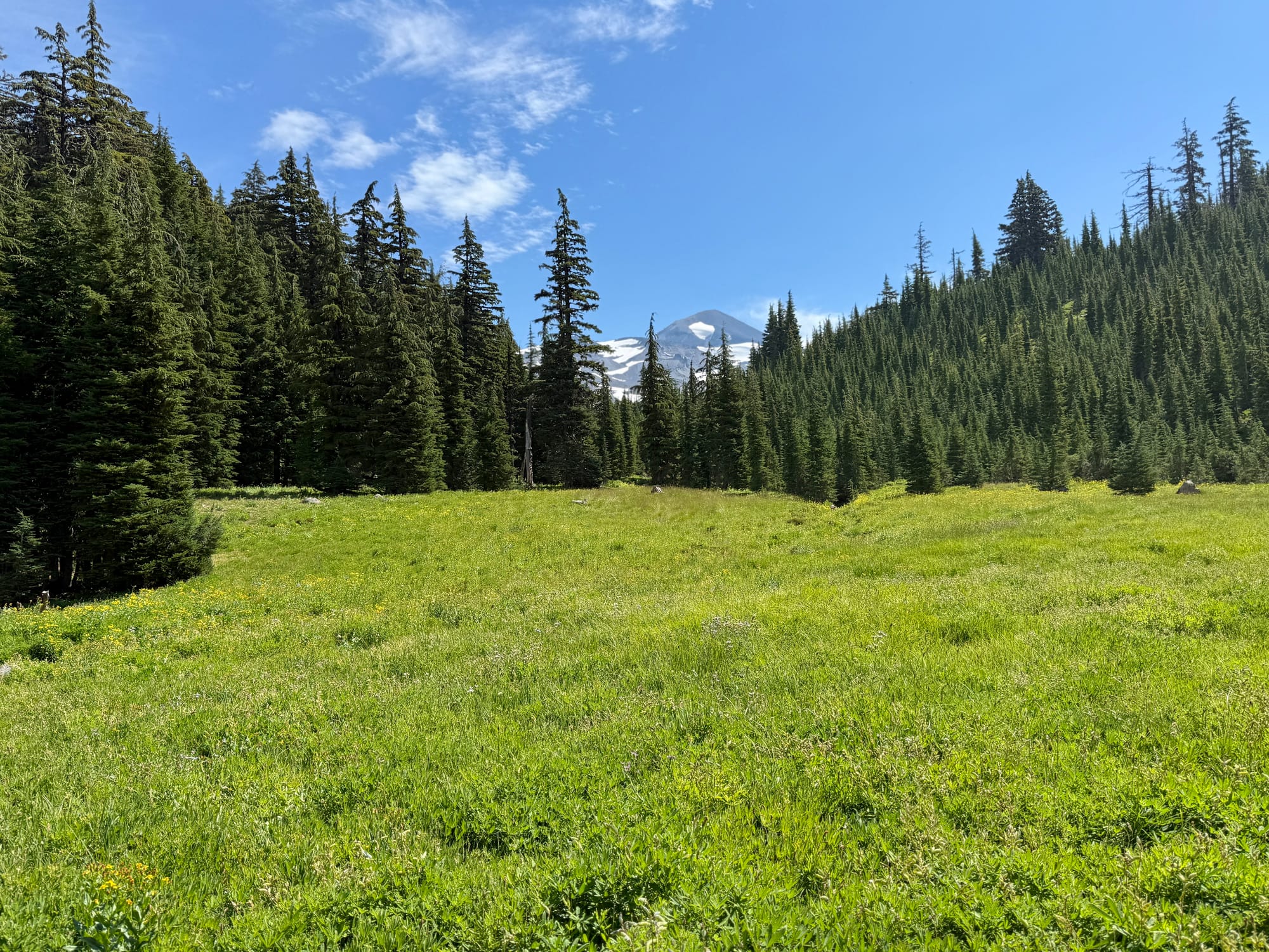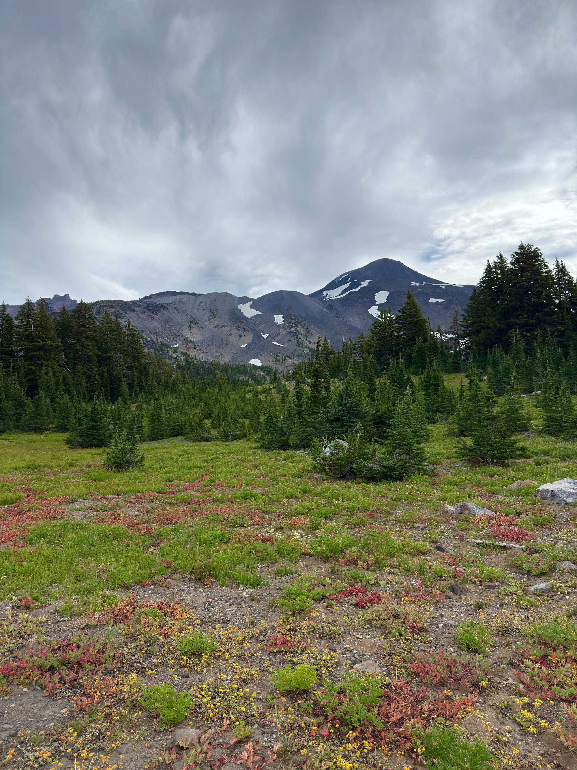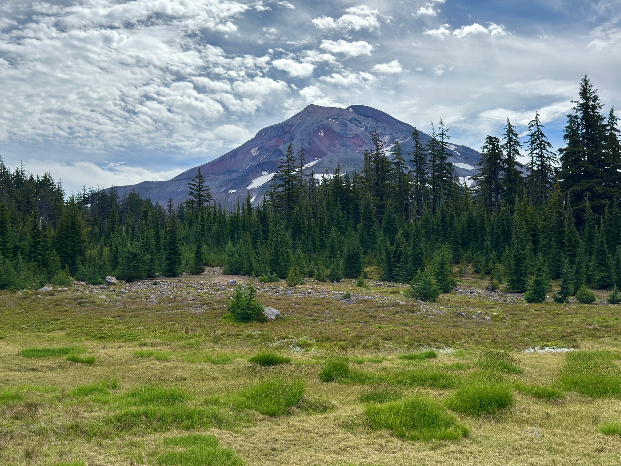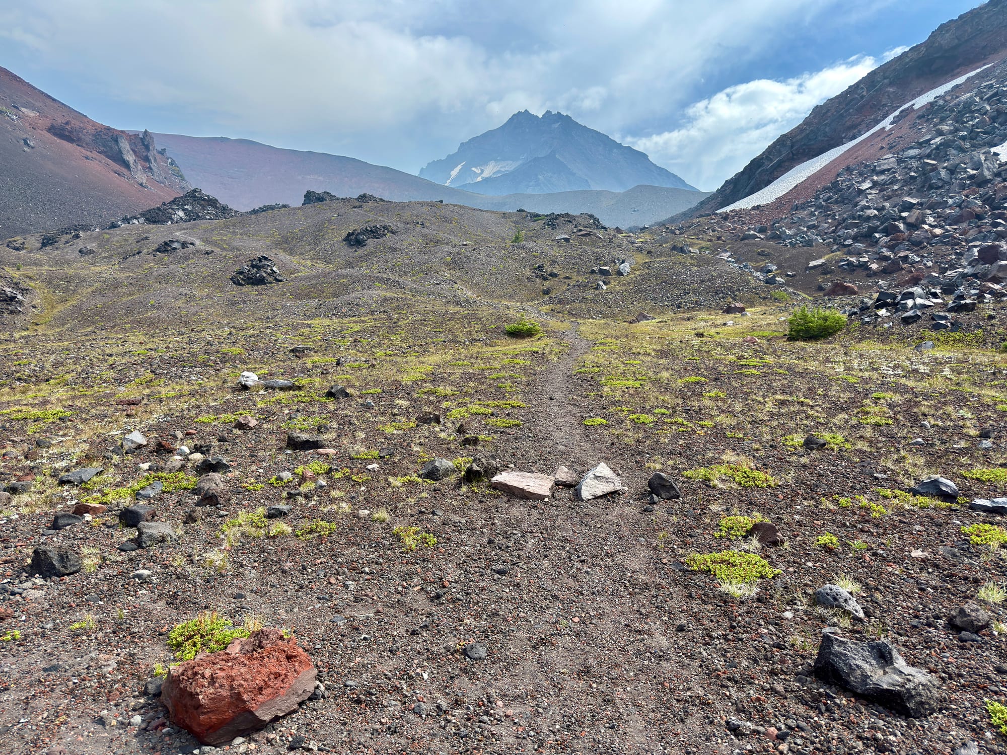 Mt. Washington, Three Fingered Jack, and Mount Jefferson ahead looking North.