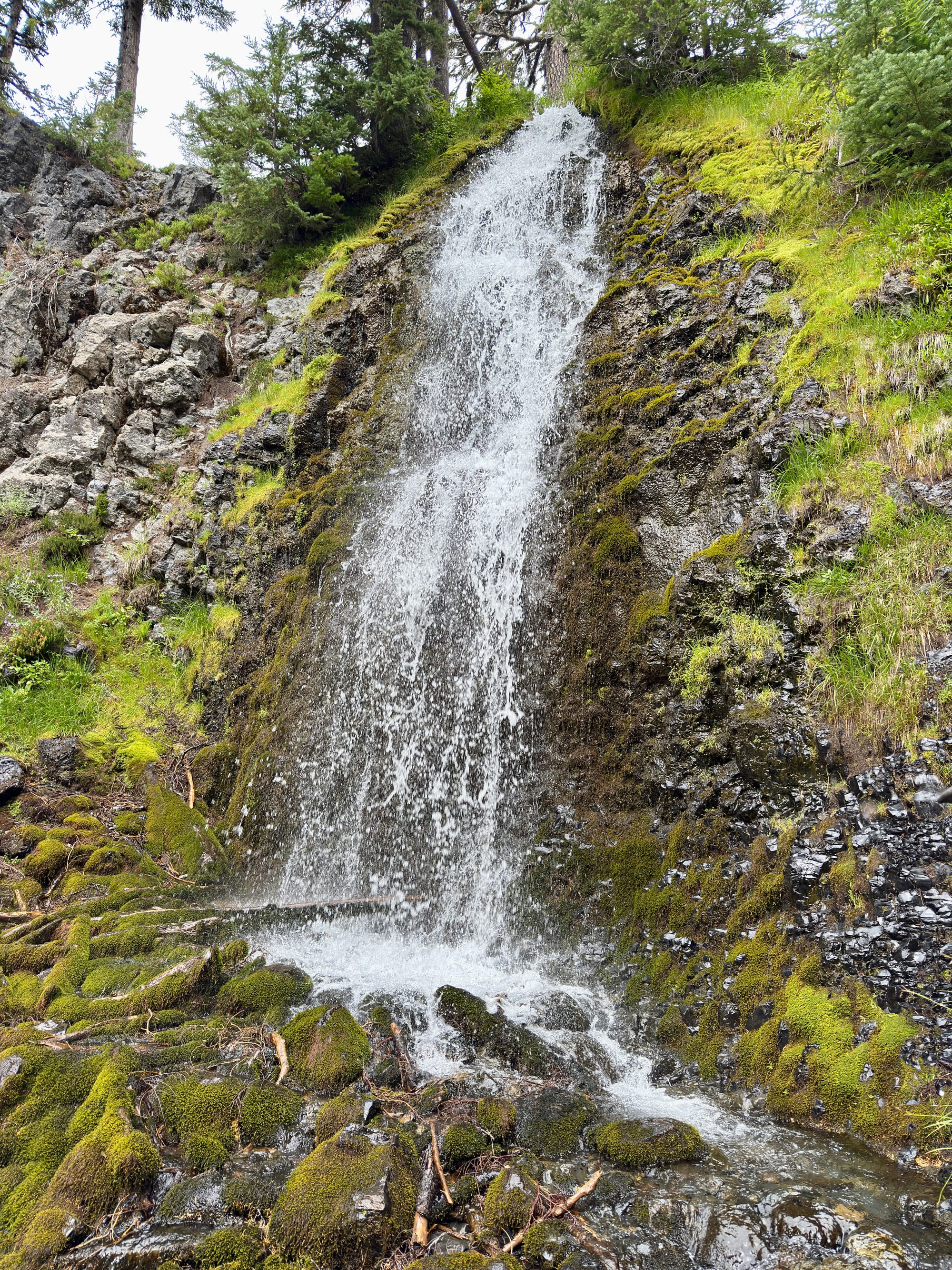 Obsidian Falls. Not the place to step in for a barefoot shower!