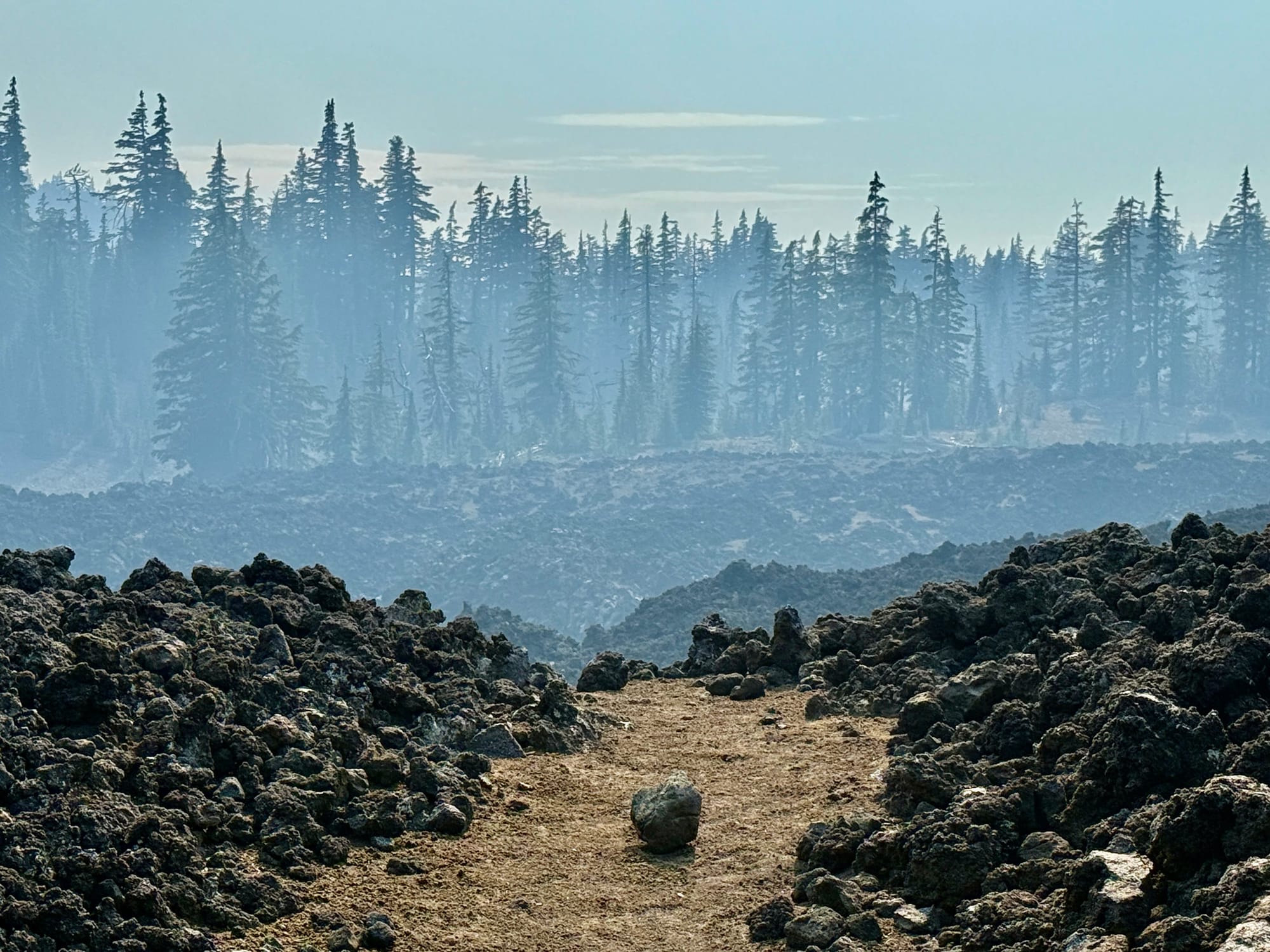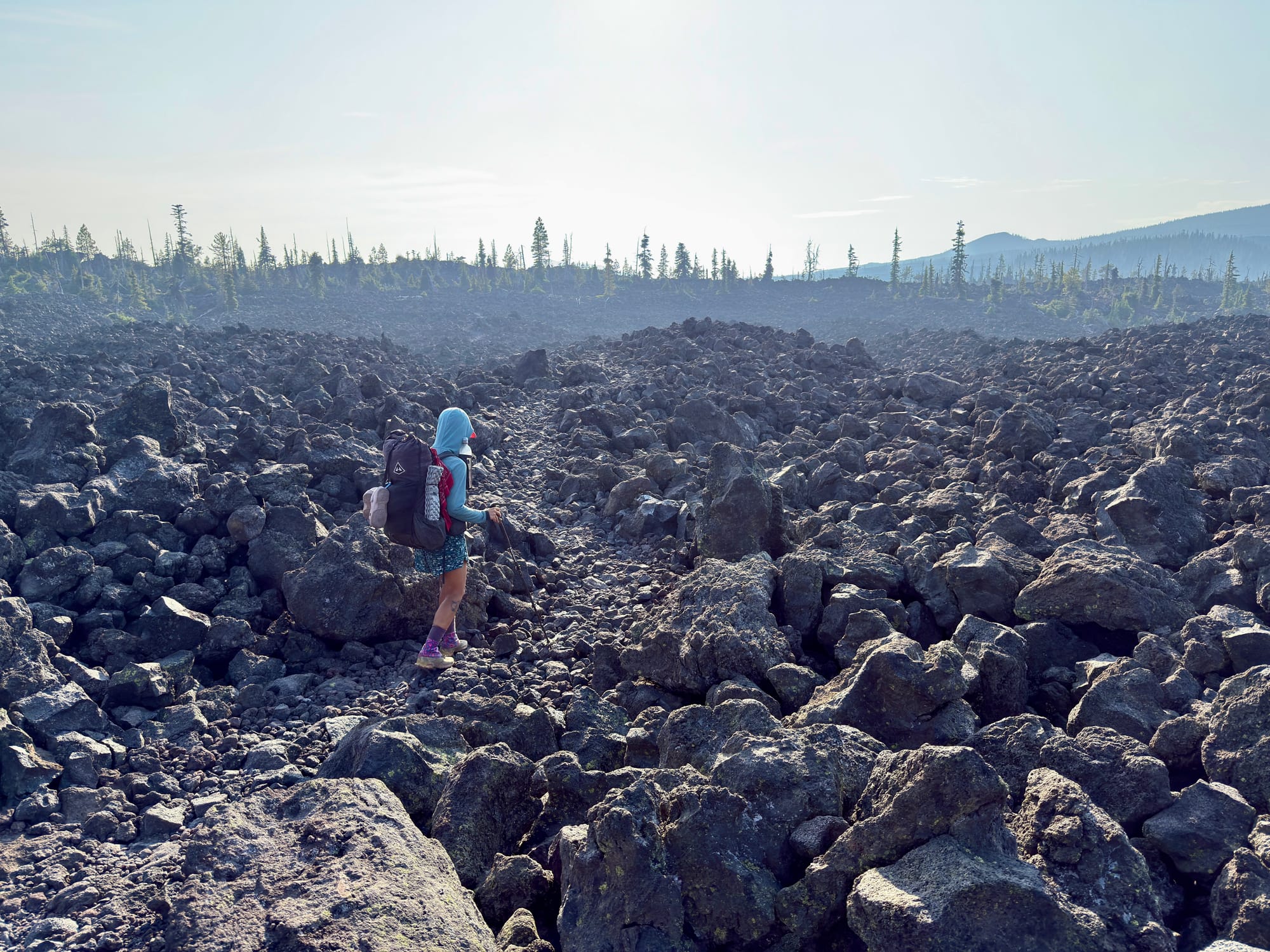 The last mile to McKenzie Pass was easily the most difficult yet. Walking on ankle breaking lava rock with blisters on the front and back of your feet after 24 miles at a brisk pace was not particularly pleasant.