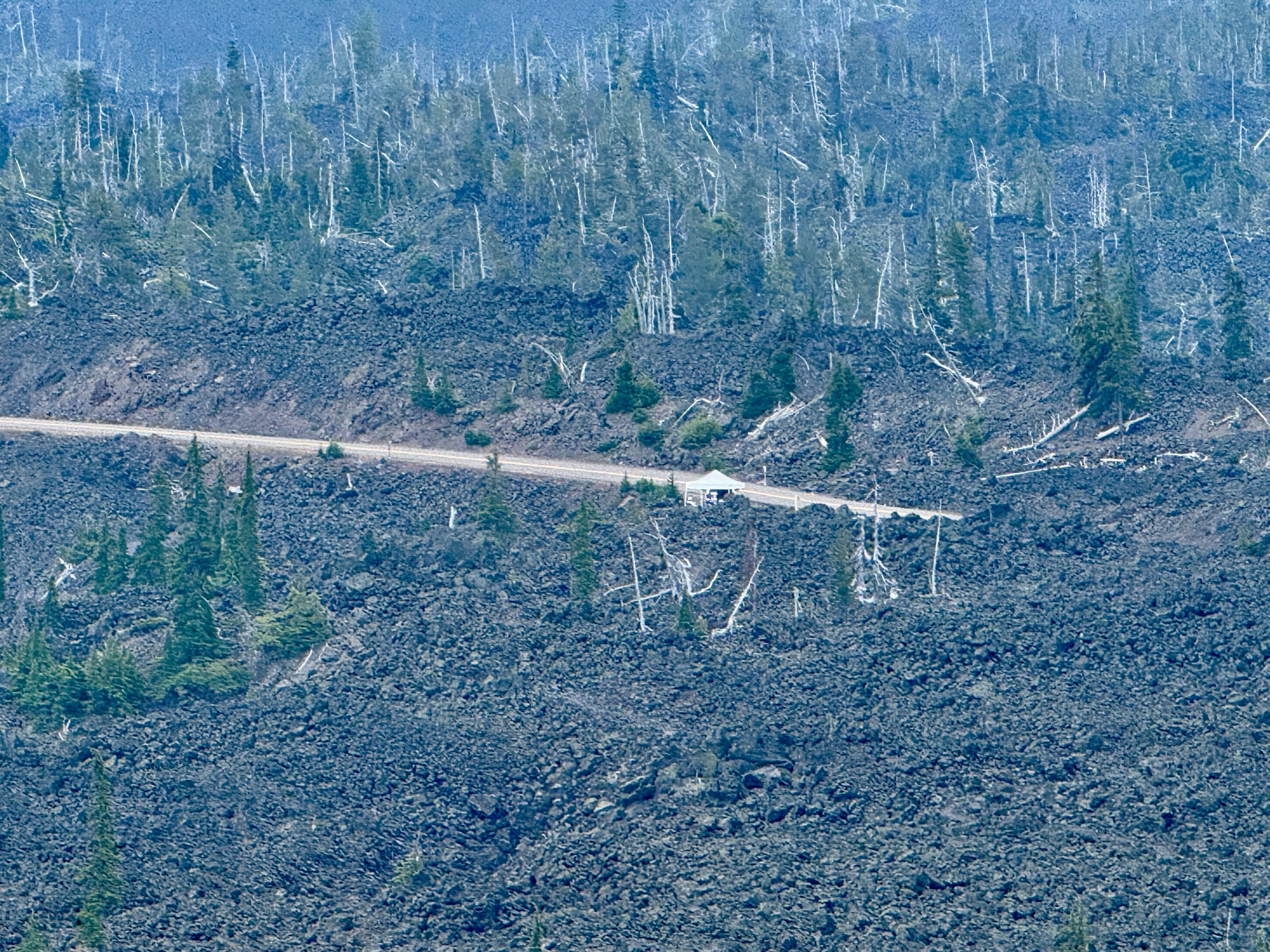 Looking wistfully back at McKenzie Pass and the trail magic tent at the trailhead.