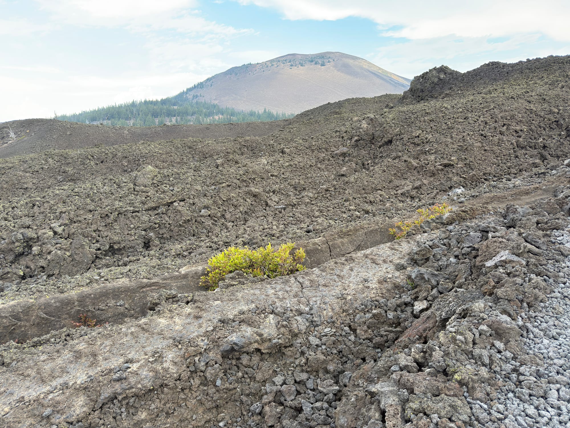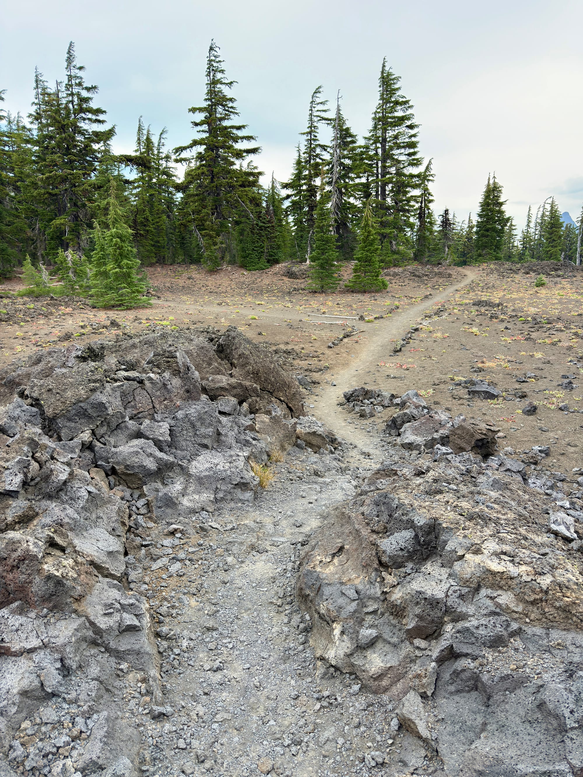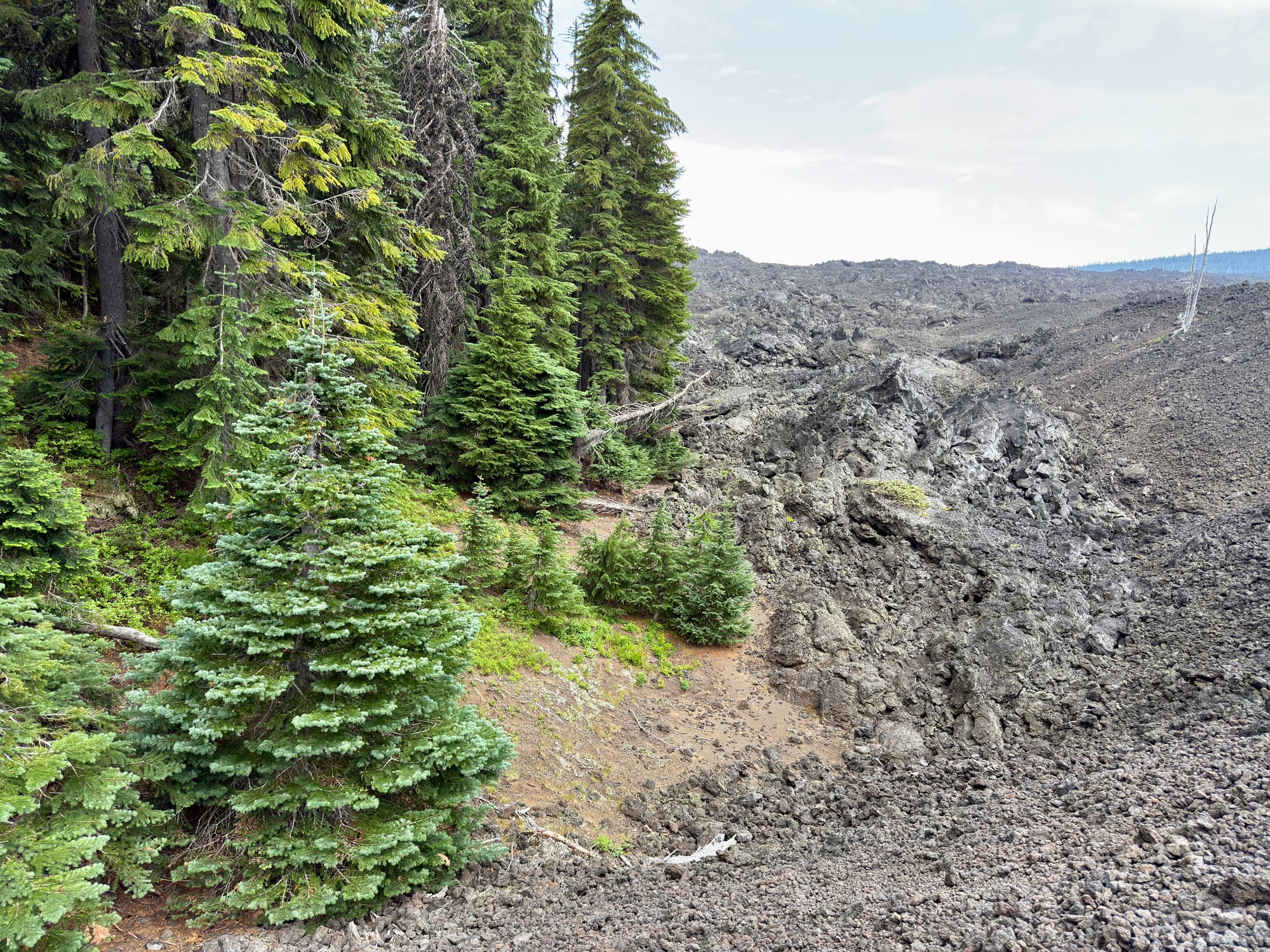 There was a short merciful stretch of dirt trail and forest before heading back out onto lava rock.