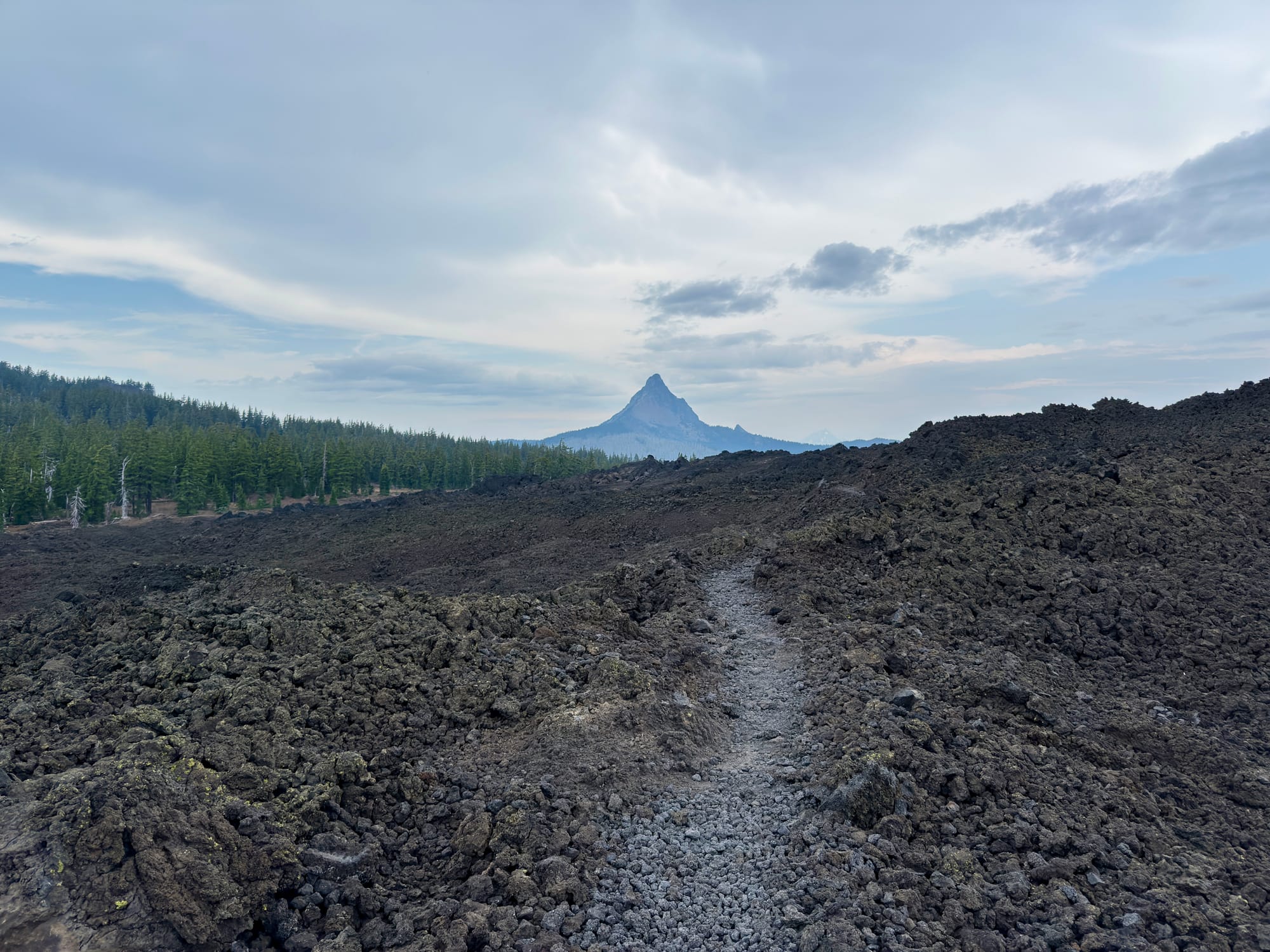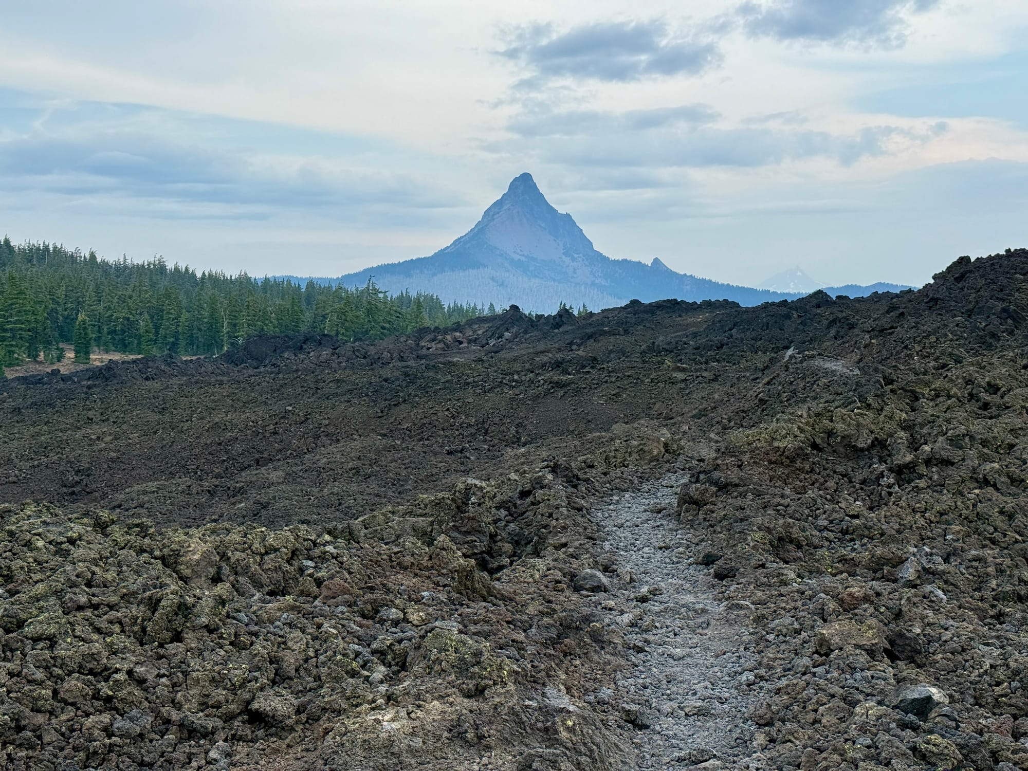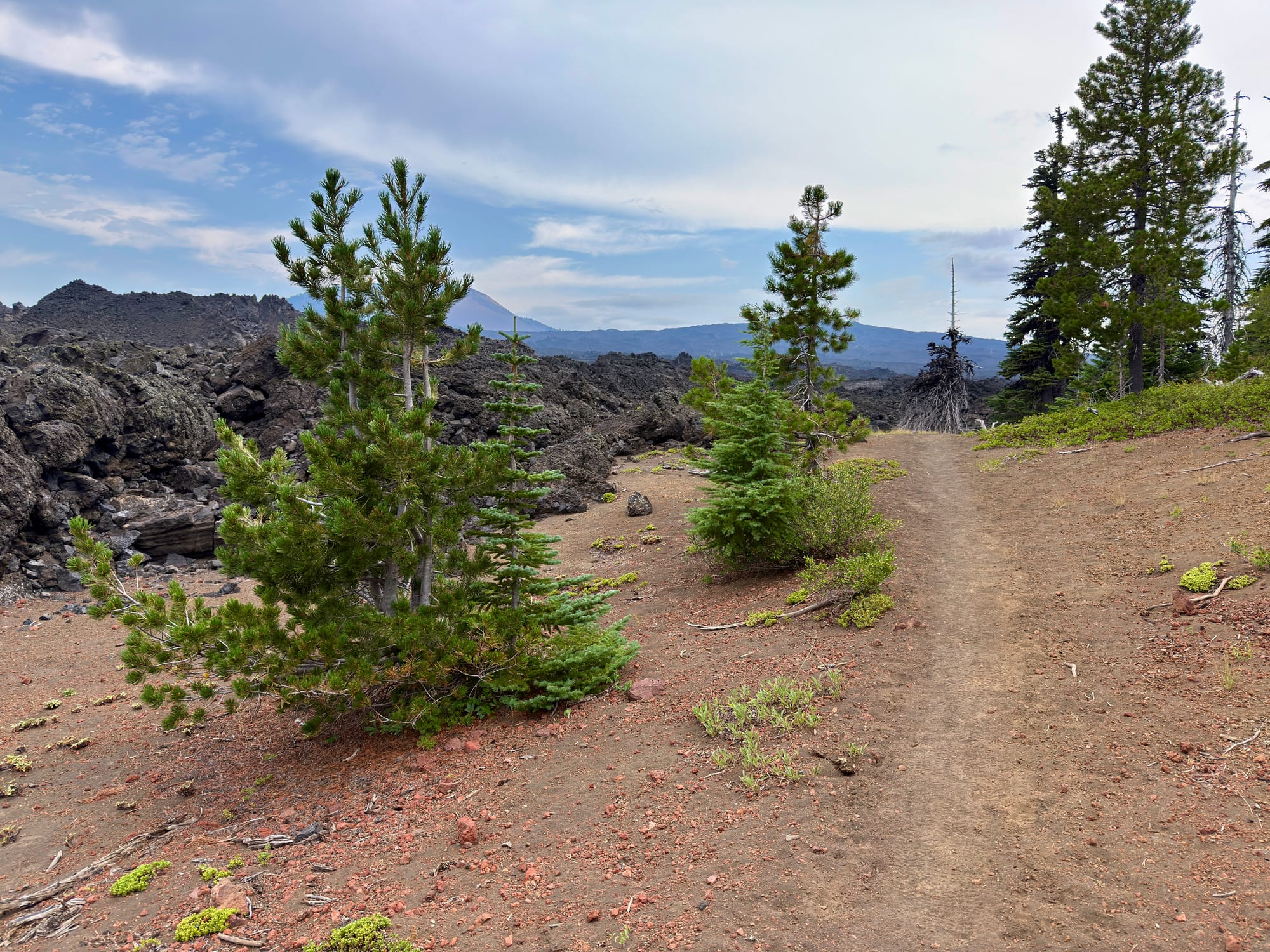 There was a short merciful stretch of dirt trail and forest before heading back out onto lava rock.