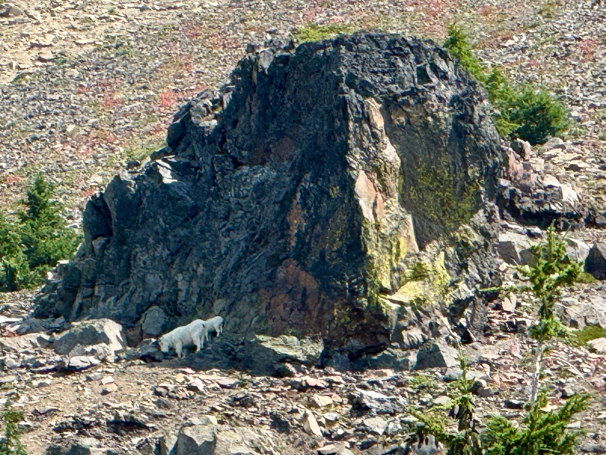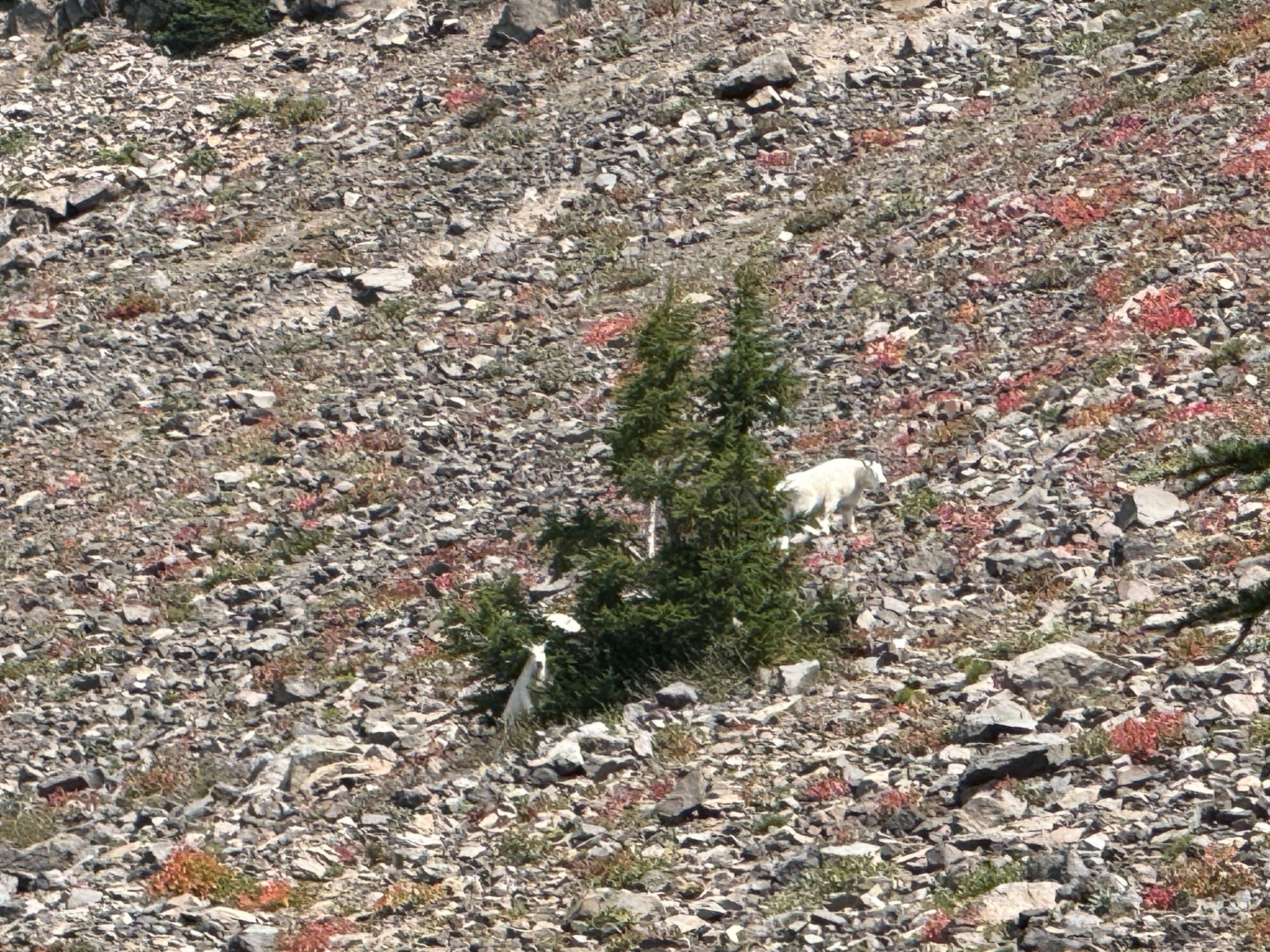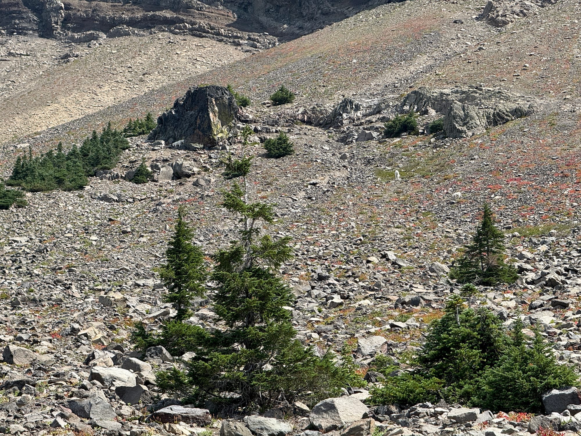 We came out of a stand of forest and Kristin said “Will, I want to see mountain goats” and I looked up the mountain and pointed up and said “there they are right there”. It was all very serendipitous.