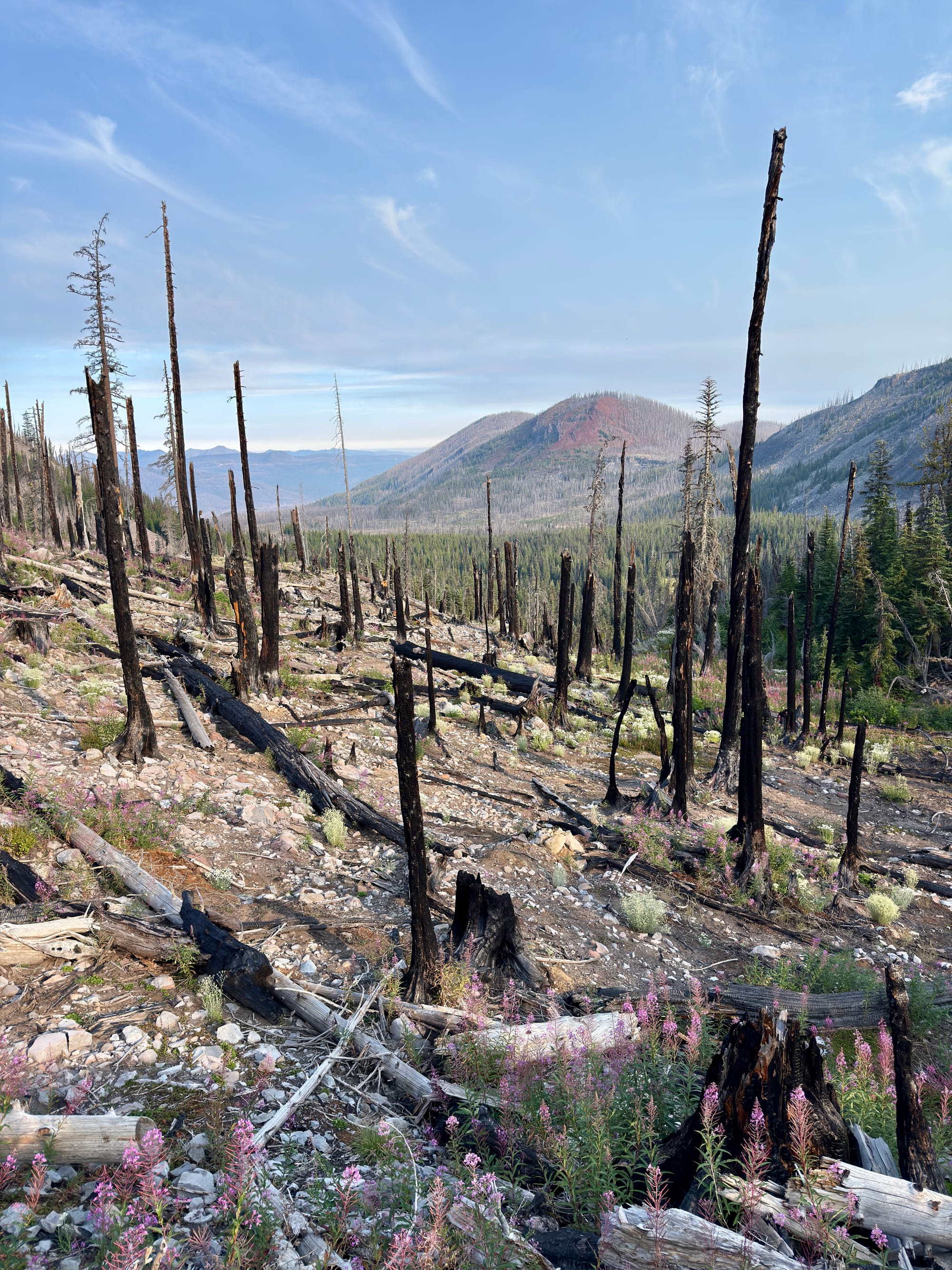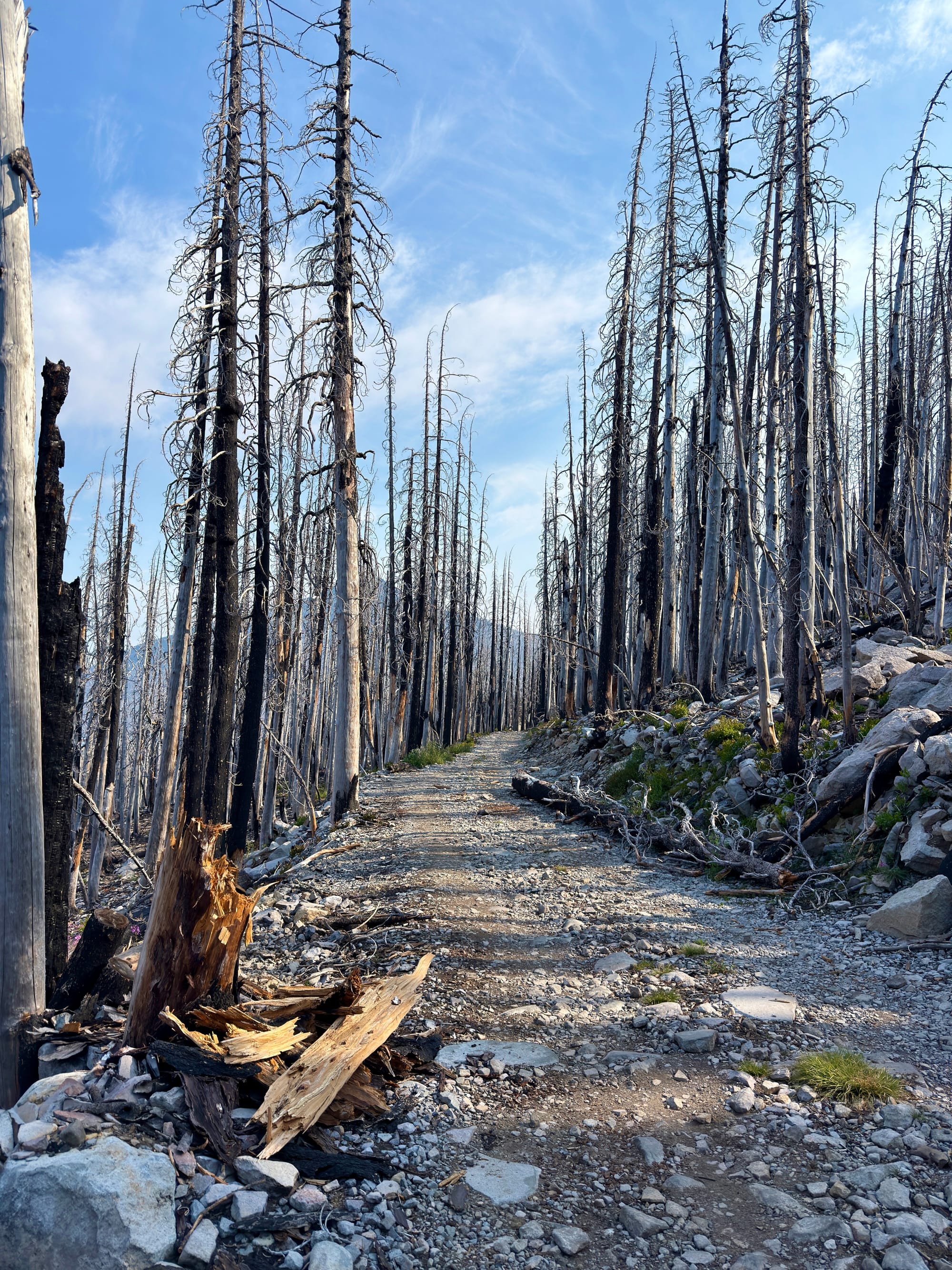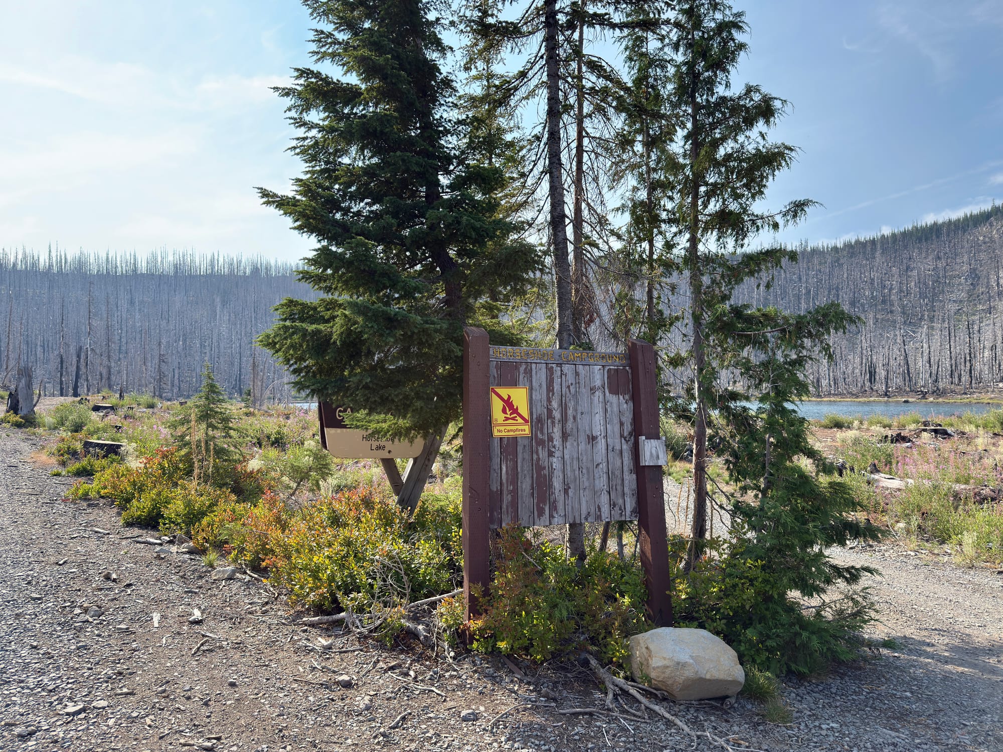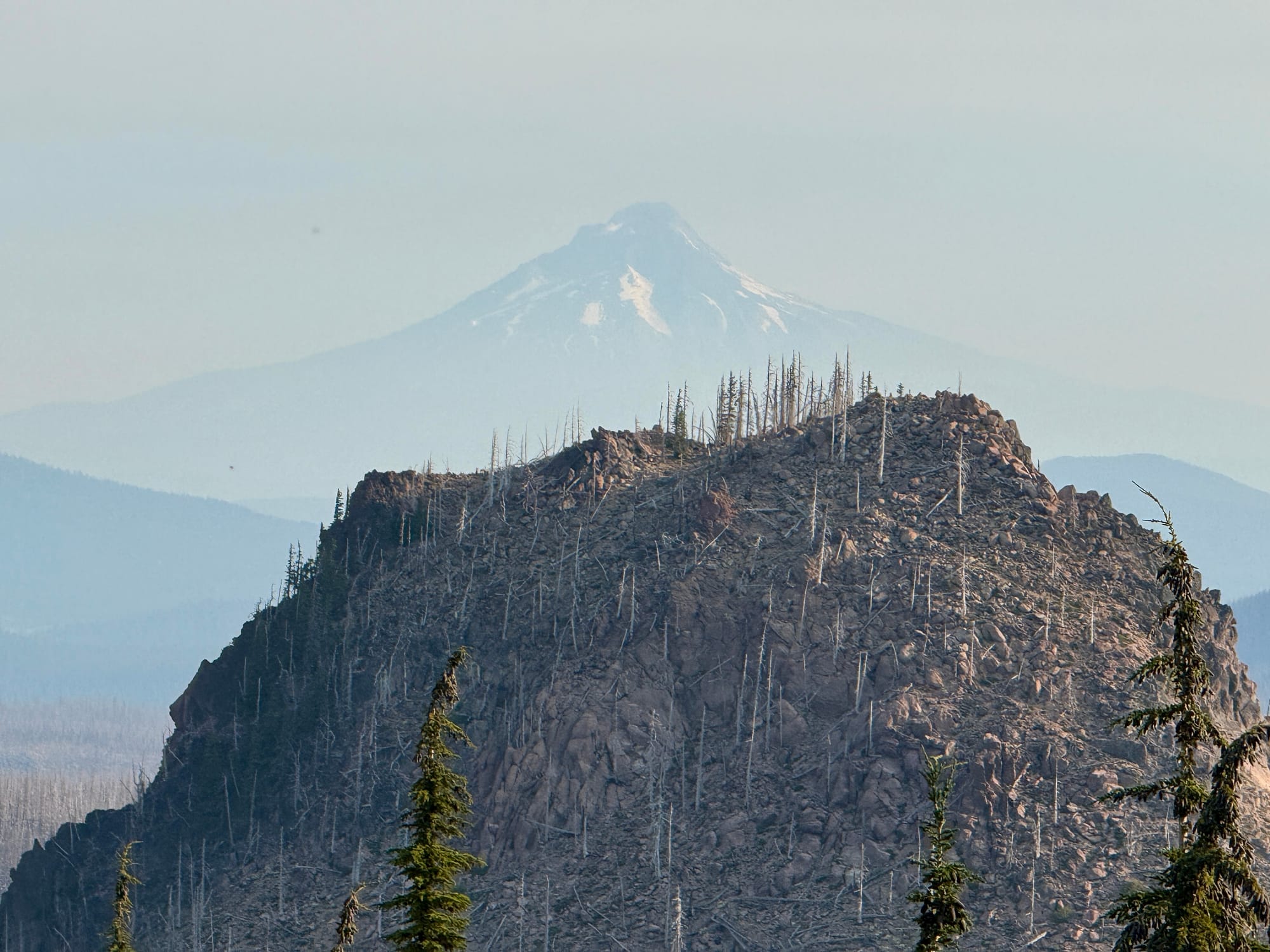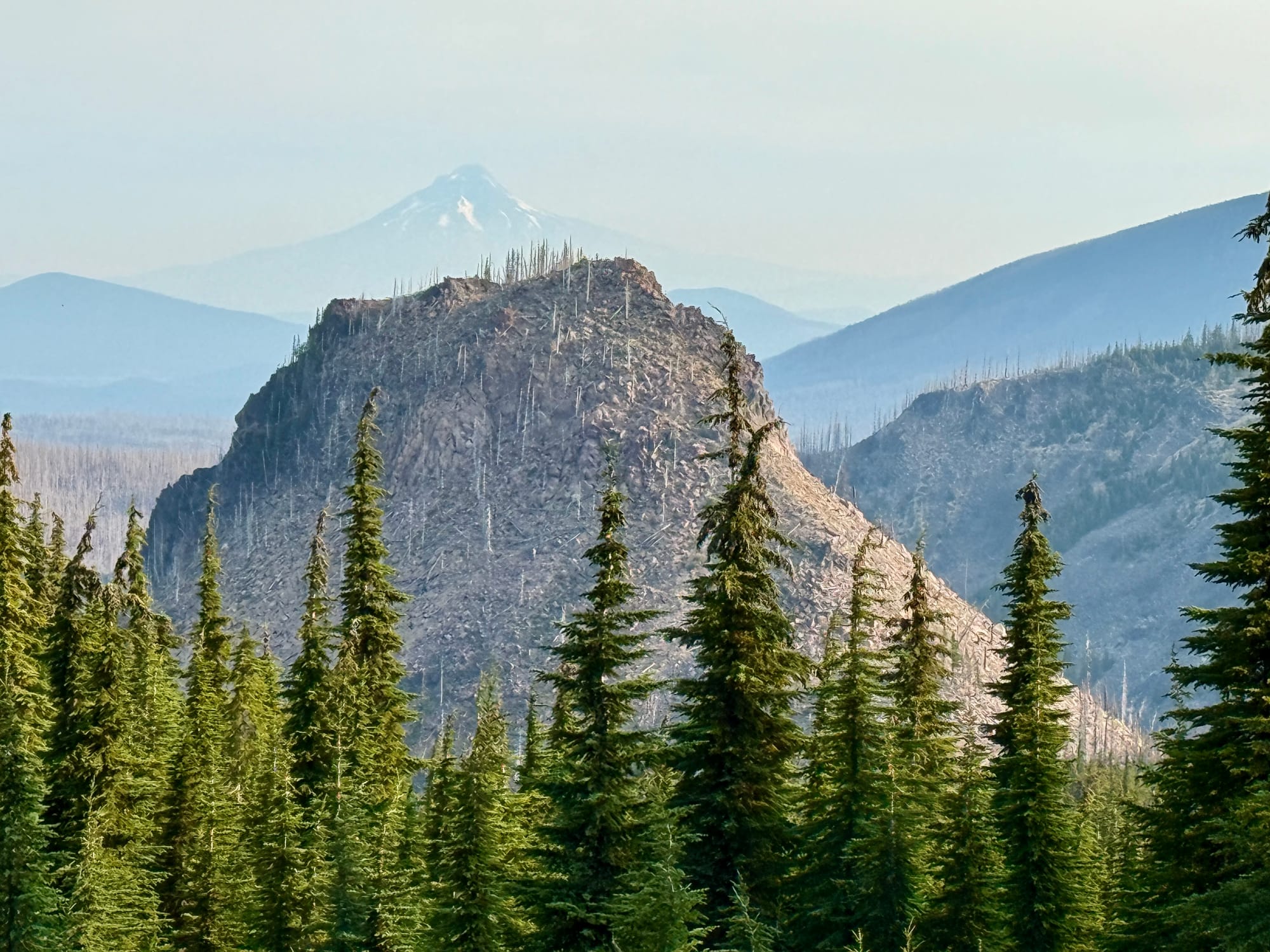 The Olallie Lake area was scorched by the Lionshead fire in 2020. We sort of knew what to expect after chatting with an older gentleman taking a rest on a log on the side of the trail a few dozen miles back. I asked him about his Olallie Lake baseball cap and he almost immediately teared up reminiscing about the wildfire damage wrought on his favorite place that he had visited every summer since childhood.