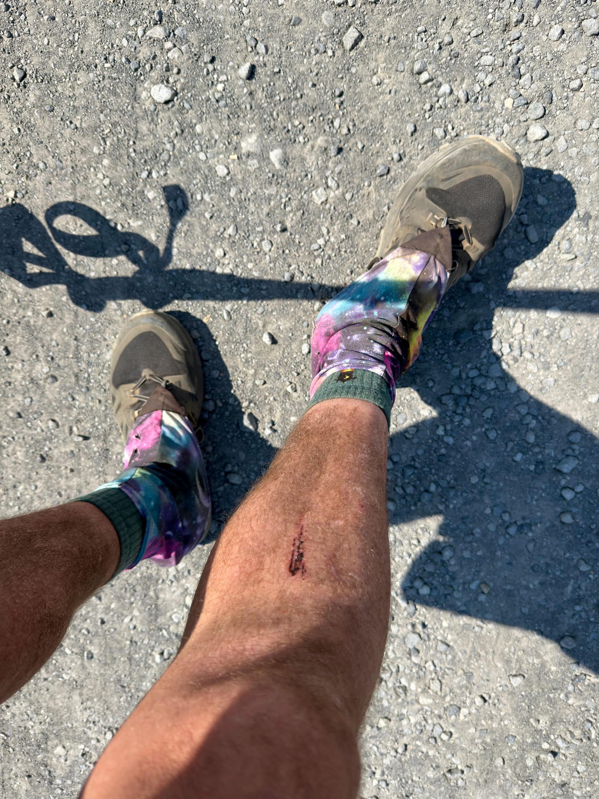 Ashy legs from hiking through burn scars all day.