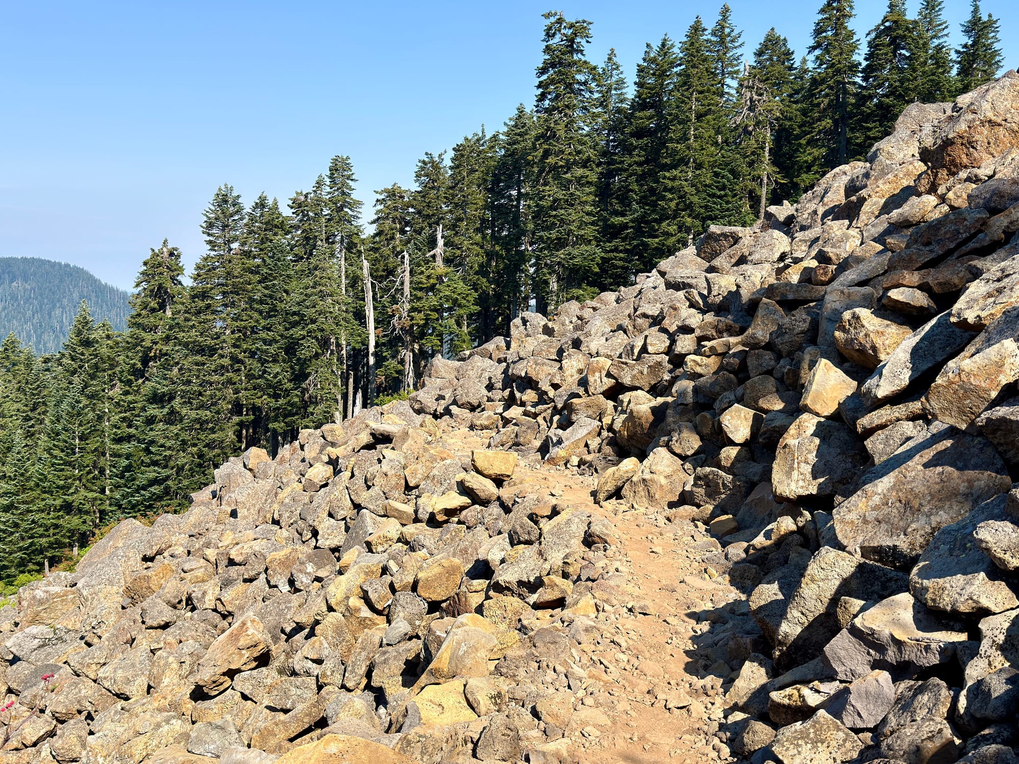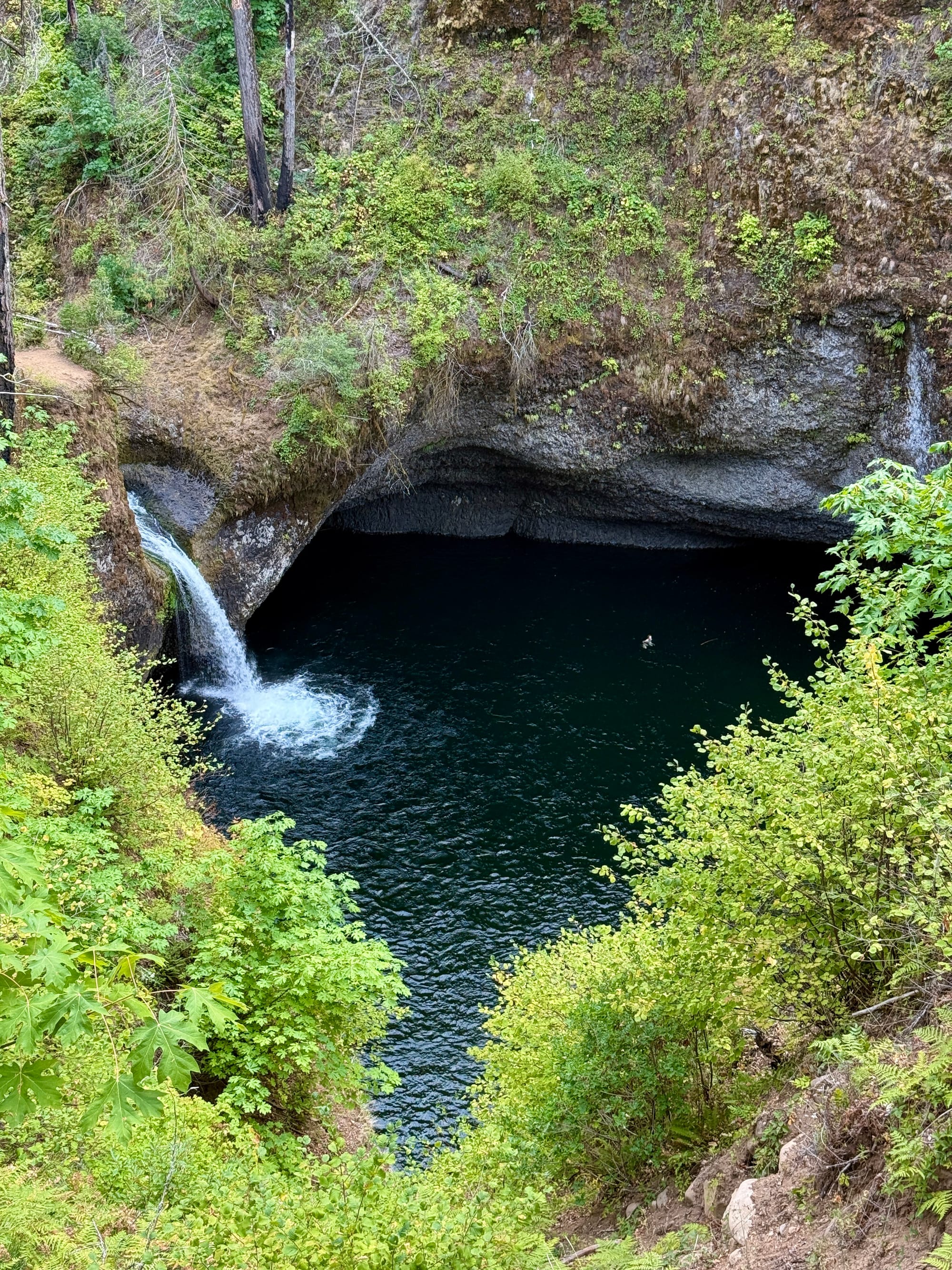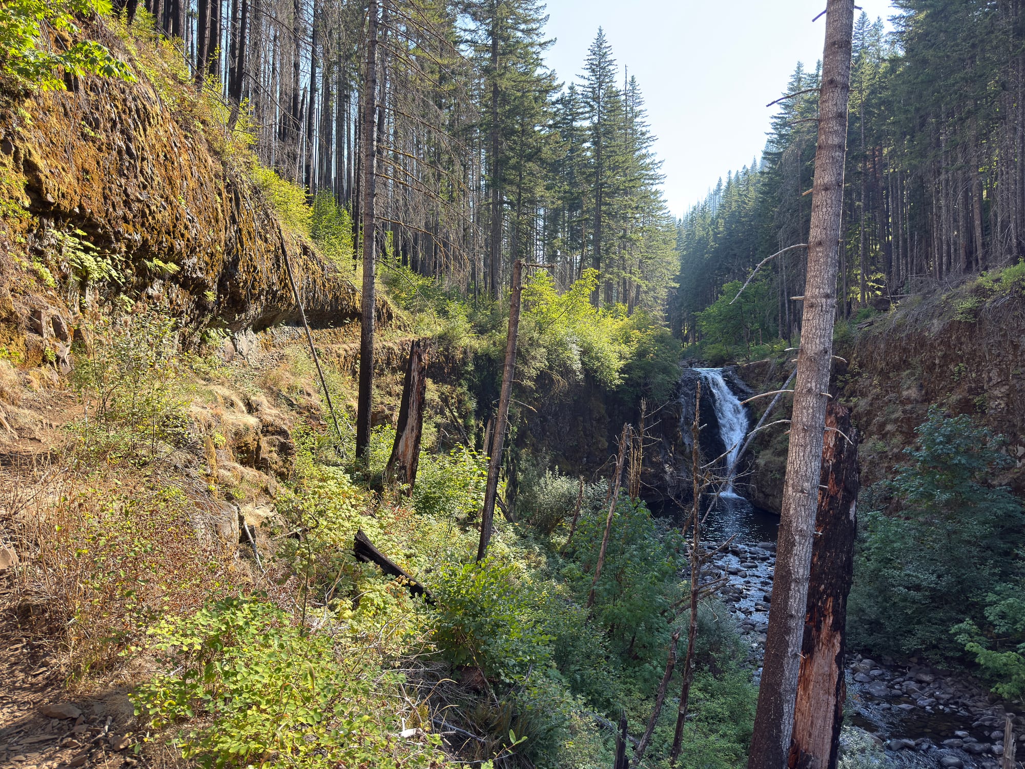 The Eagle Creek trail is actually an alternate to the PCT down to Cascade Locks. It was blasted out of basalt walls with a spectacular section of path going behind a waterfall at Tunnel Falls.