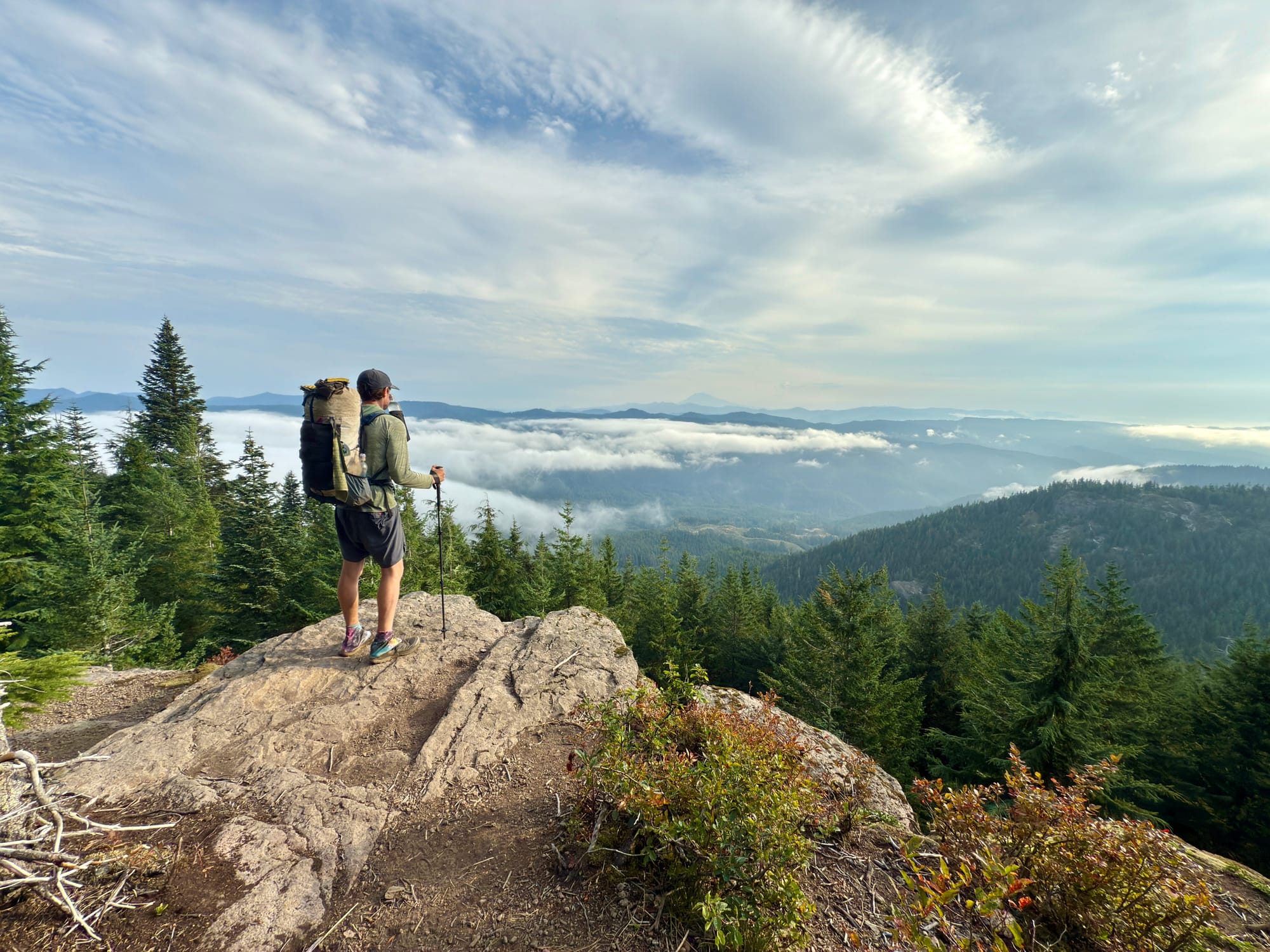 We were one range/ridge away from waking up in a cloud pouring over us. Beautiful to see, not so beautiful to camp in! I’ll take it!