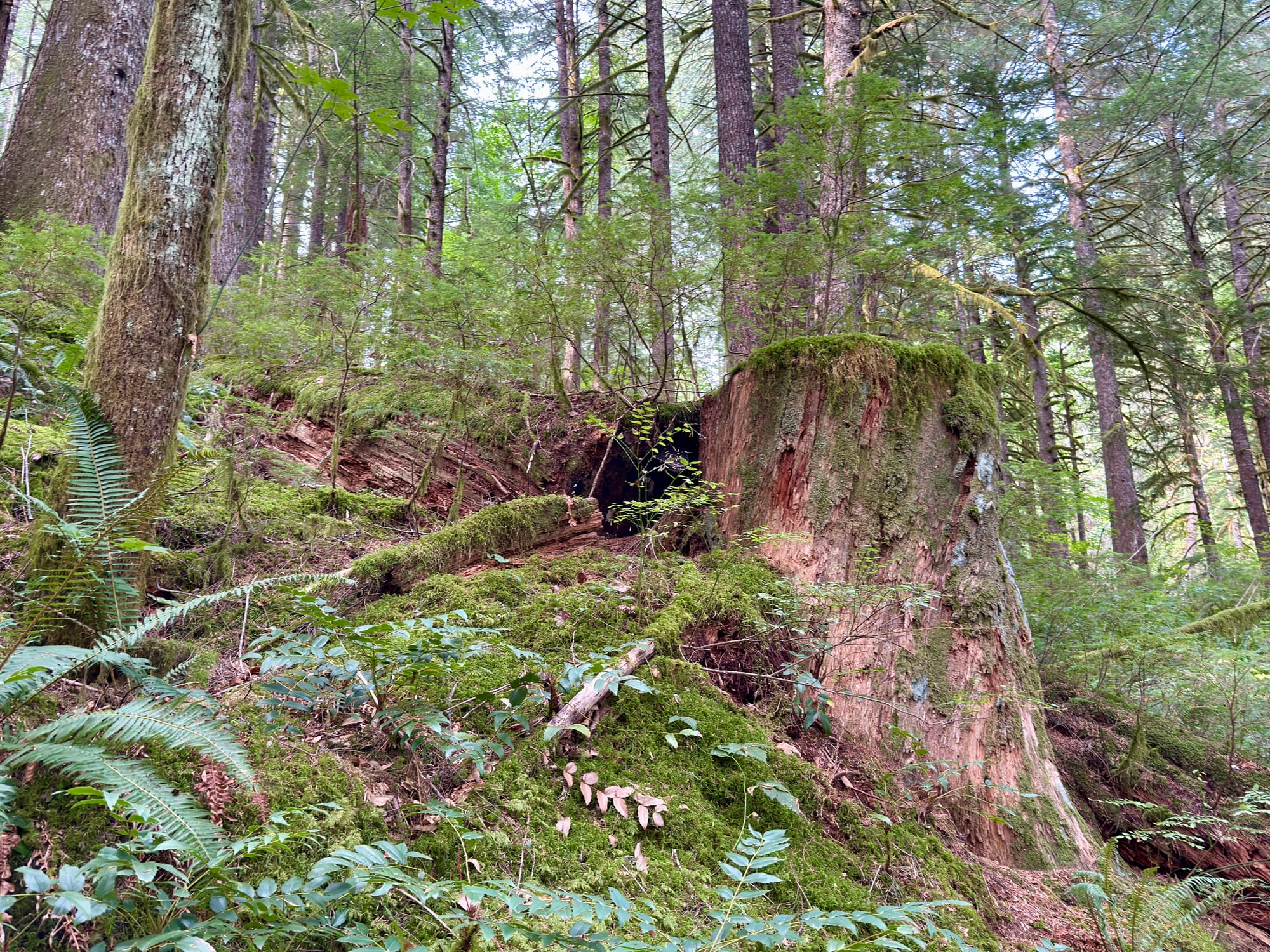 The number of forests we’ve passed through with trees of the diameter of this stump currently hosting its own micro-ecosystem has been very few. We see huge stumps everywhere.