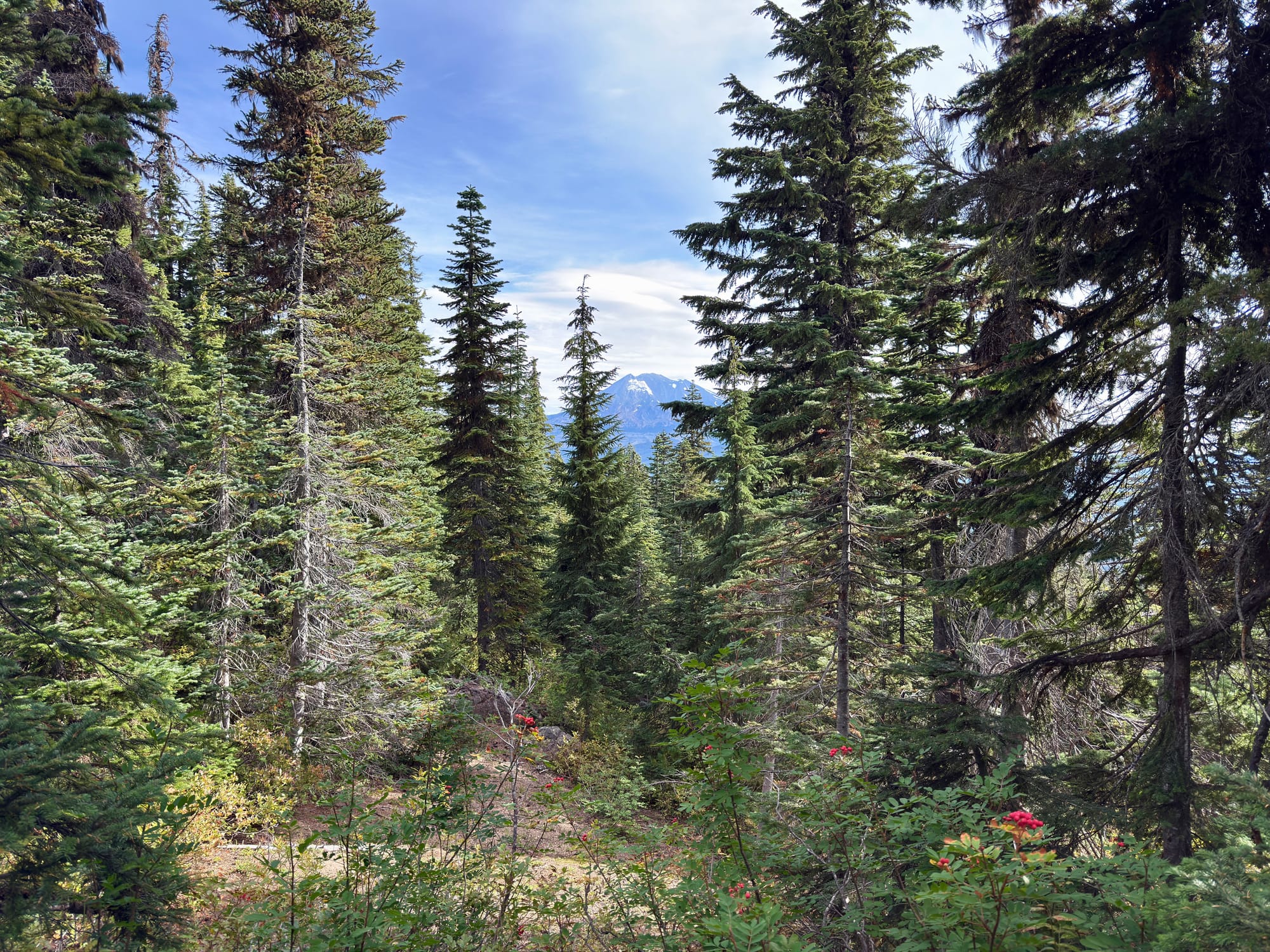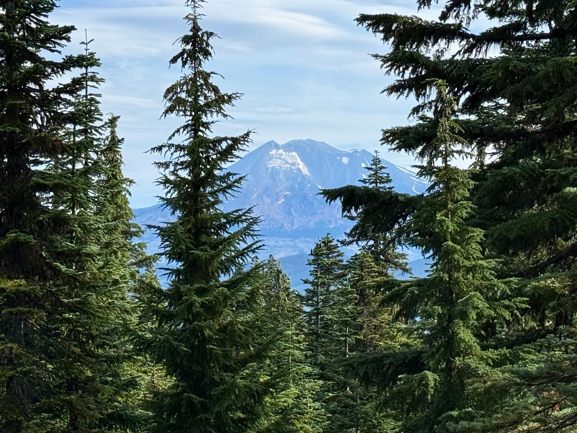 Our first decent glimpse of Mt. Adams. Looks like another big volcano. Strange.
