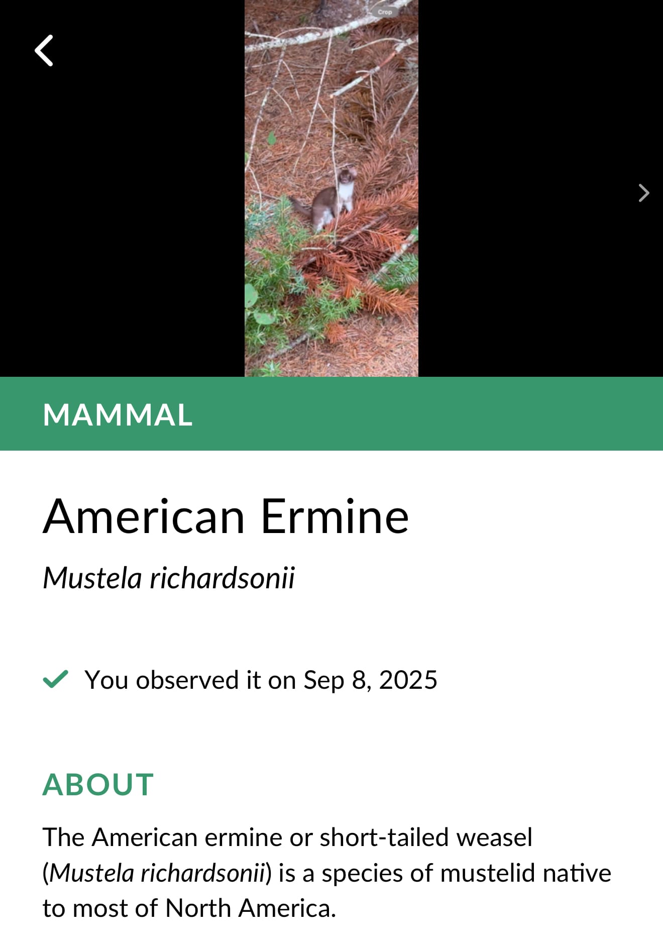 This little guy came and said hi when we sat down for lunch. Seek identified him as an American Ermine. We named him Ernie. He hung out for a few minutes before hopping away. One of the coolest wildlife encounters we’ve had.