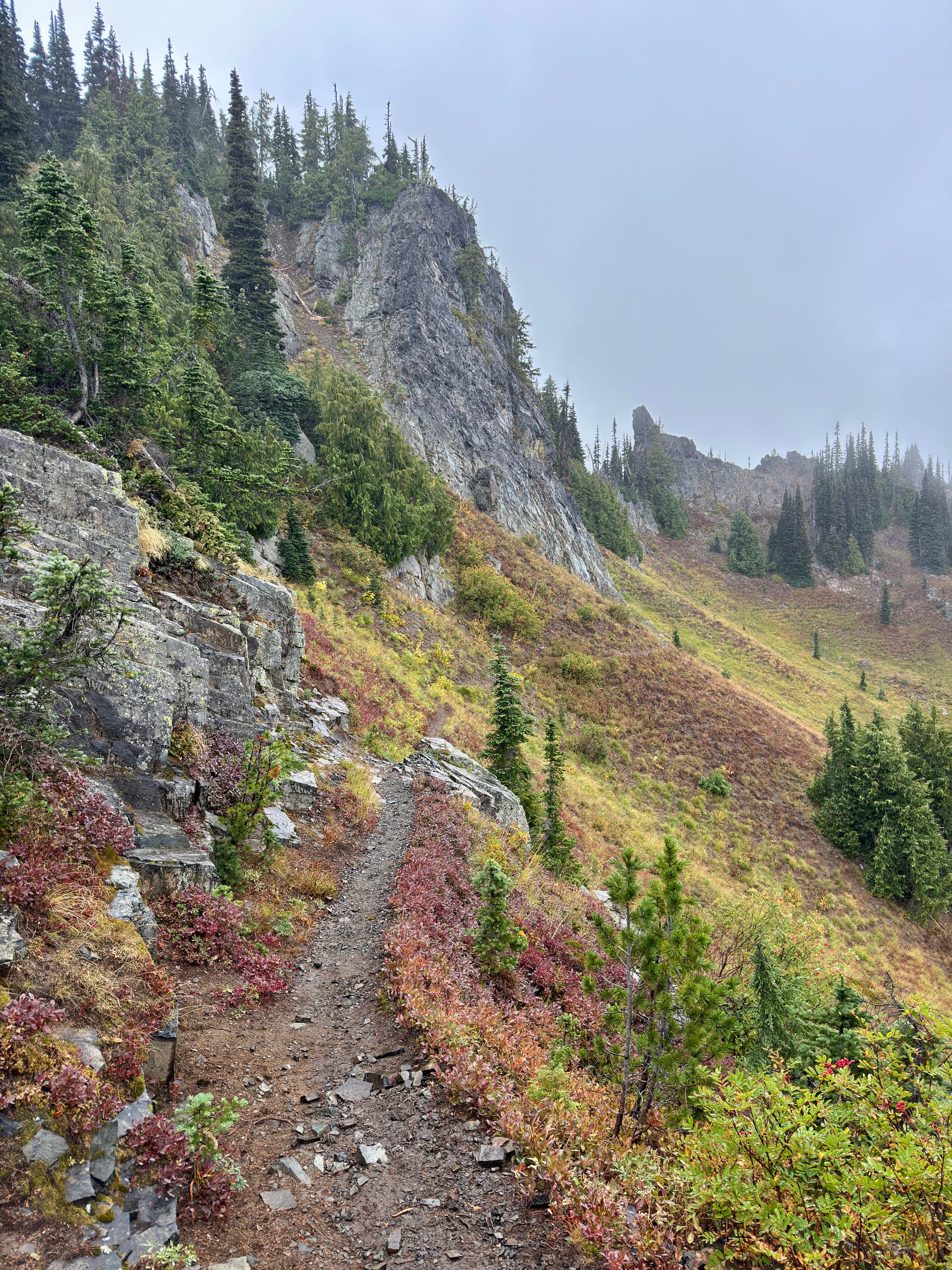 The Eastside Trail up to Chinook Pass from Mt. Rainier National Park was easily the wettest and steepest few miles of our trek so far. Not a great combination :/