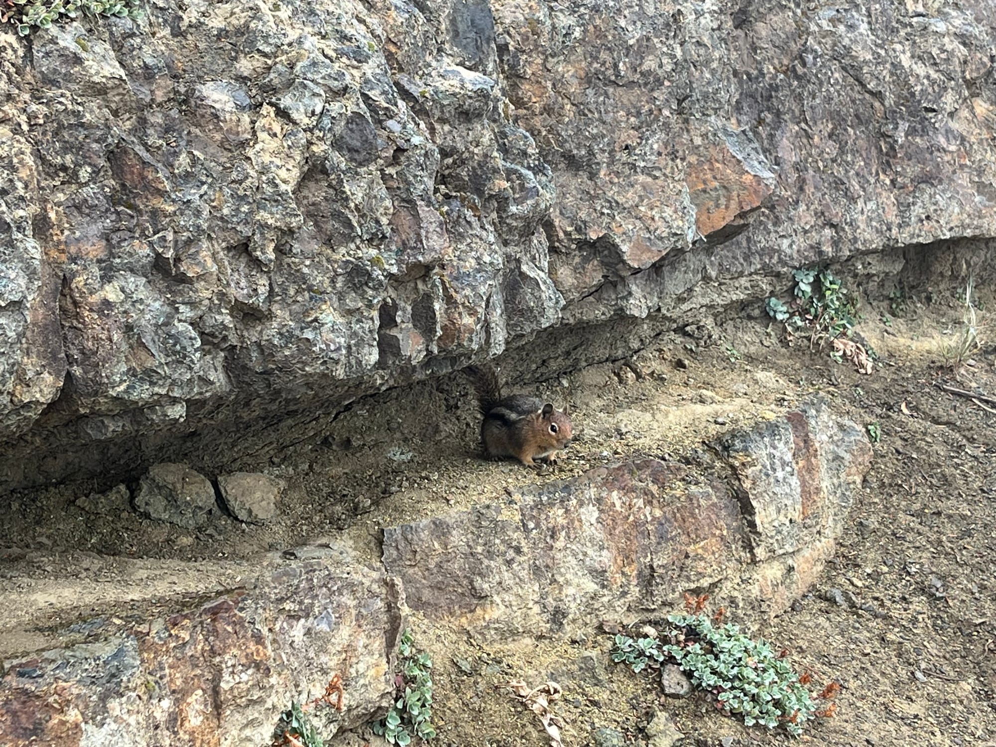 This chipmunk made sure to show me that he was both dry and had an overhang to run back and forth under.