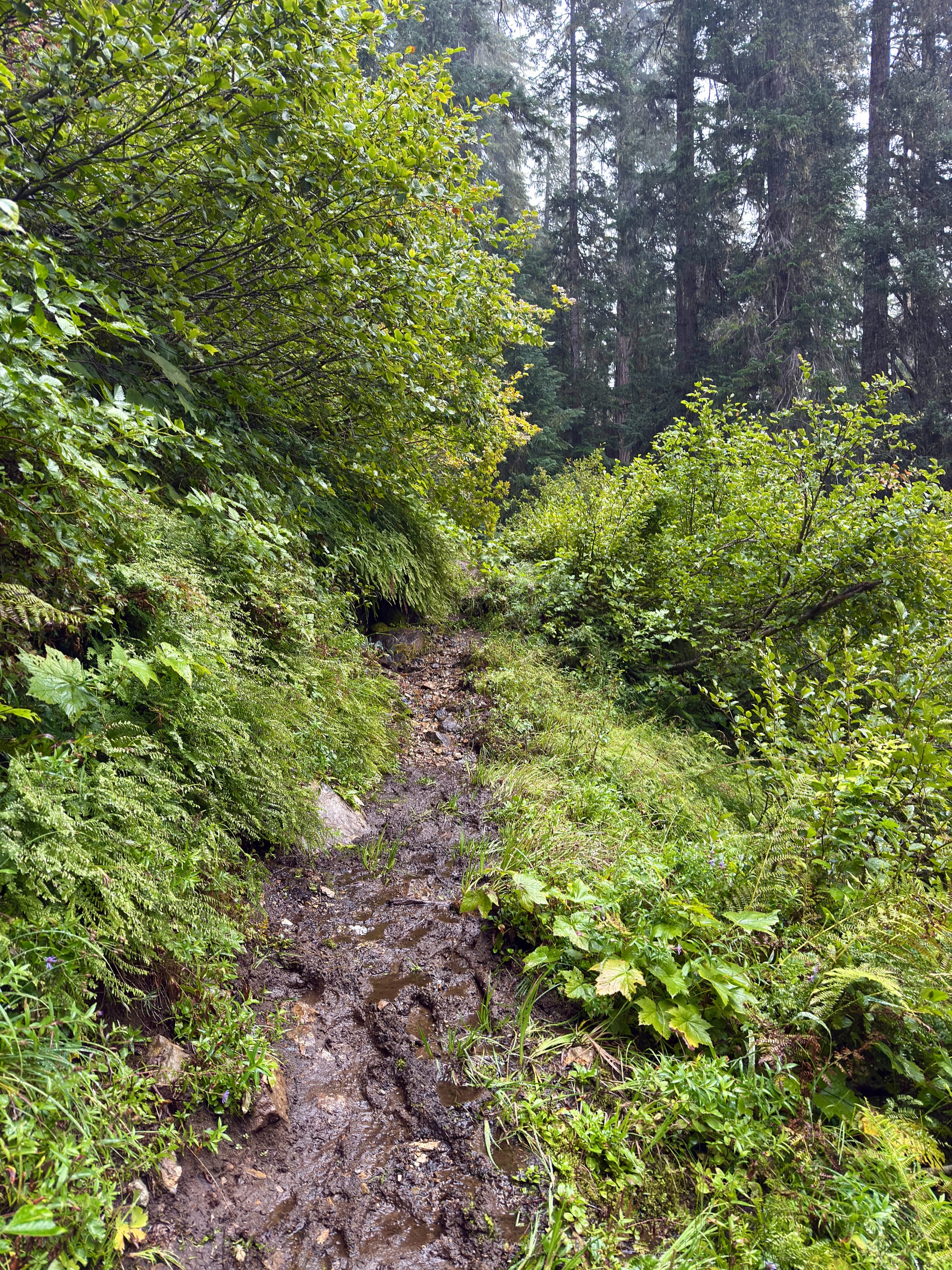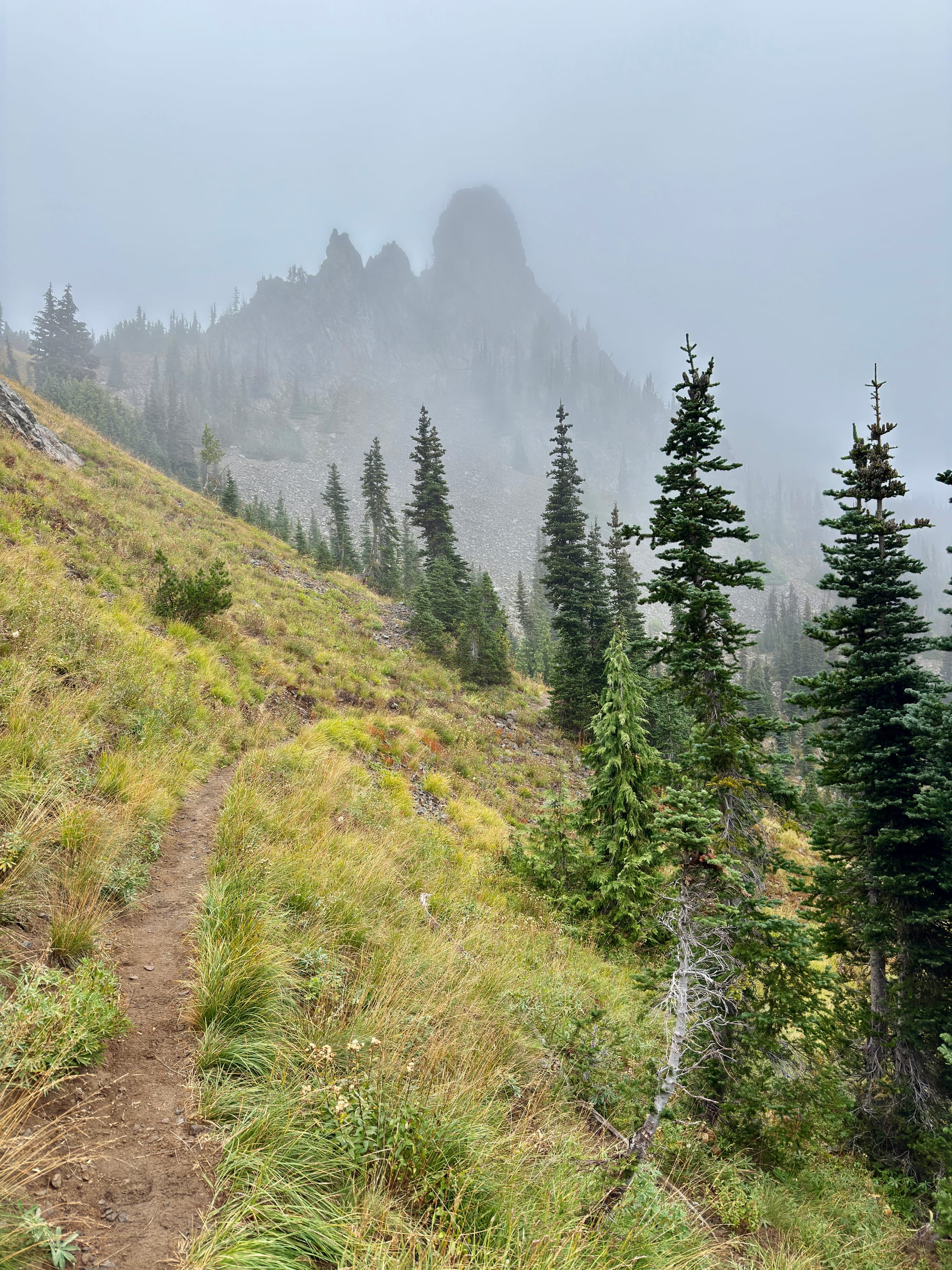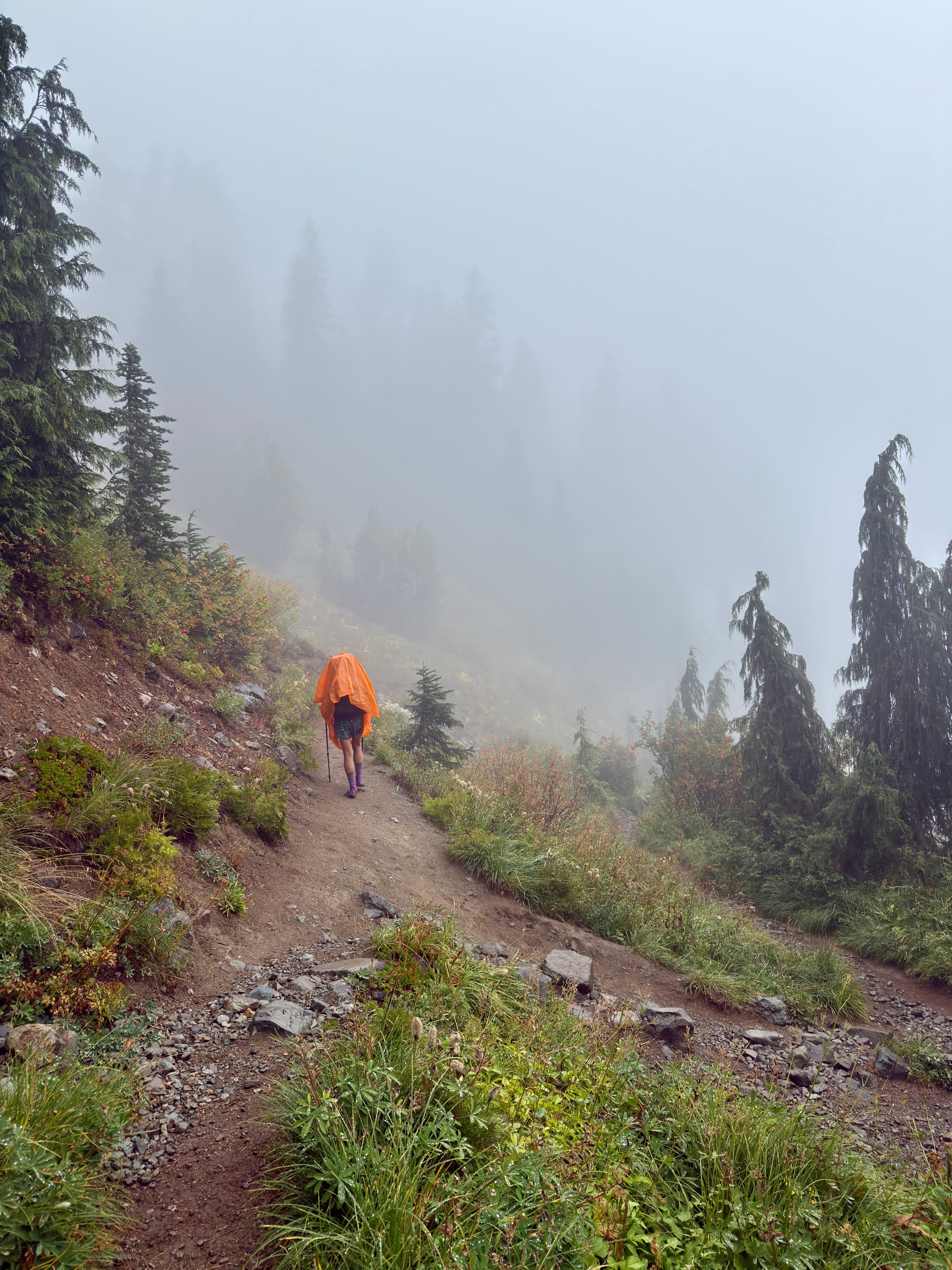 The Eastside Trail up to Chinook Pass from Mt. Rainier National Park was easily the wettest and steepest few miles of our trek so far. Not a great combination :/
