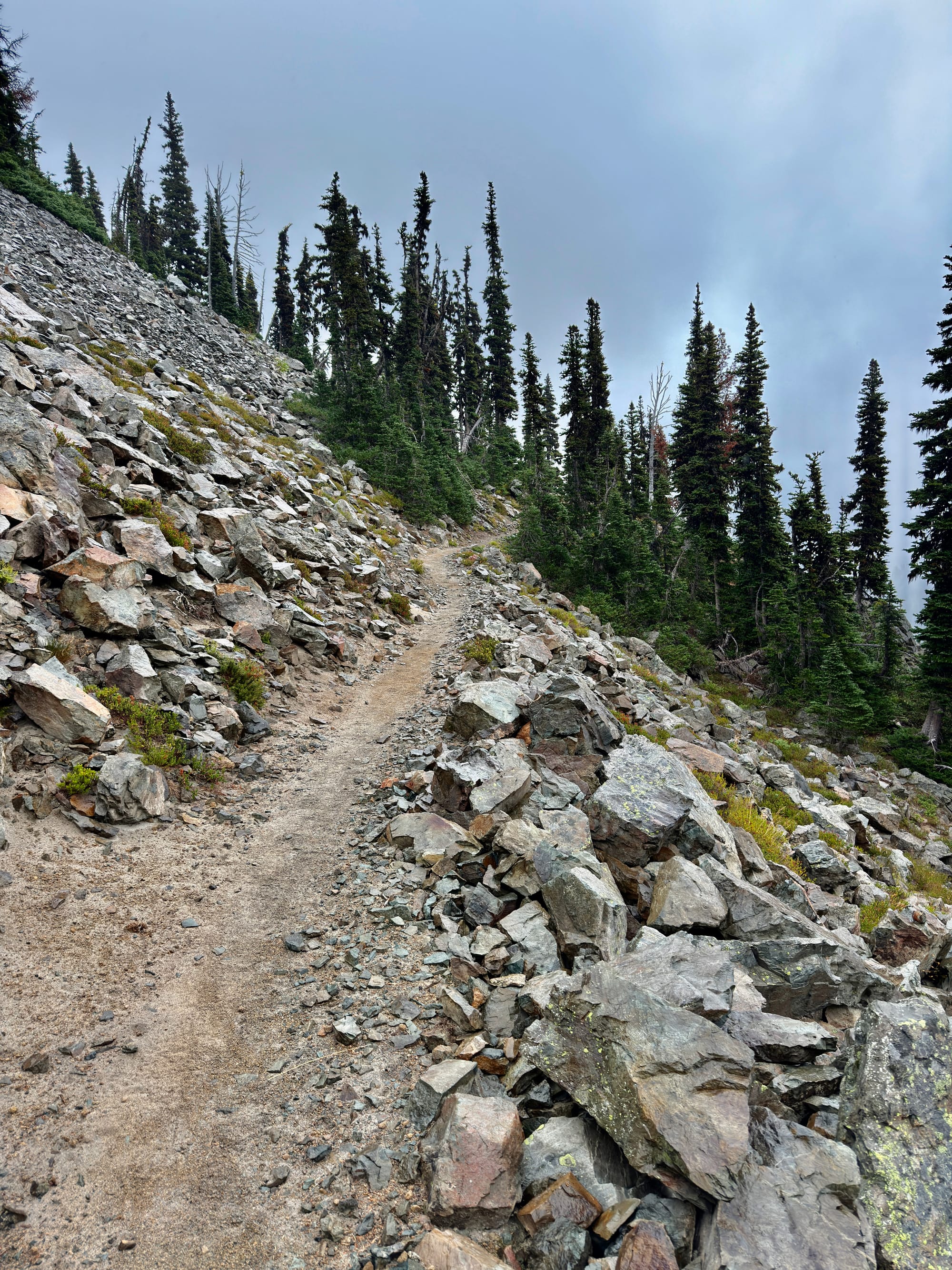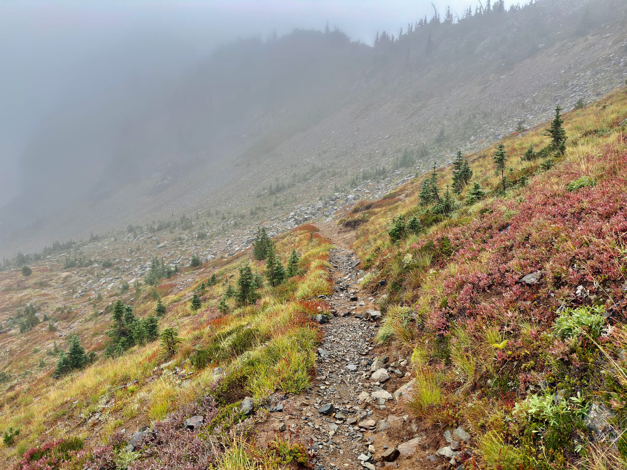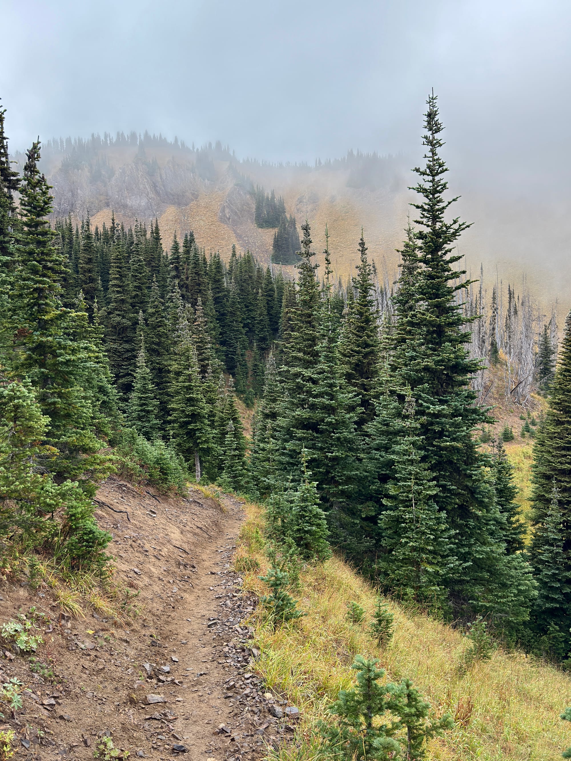 The Eastside Trail up to Chinook Pass from Mt. Rainier National Park was easily the wettest and steepest few miles of our trek so far. Not a great combination :/