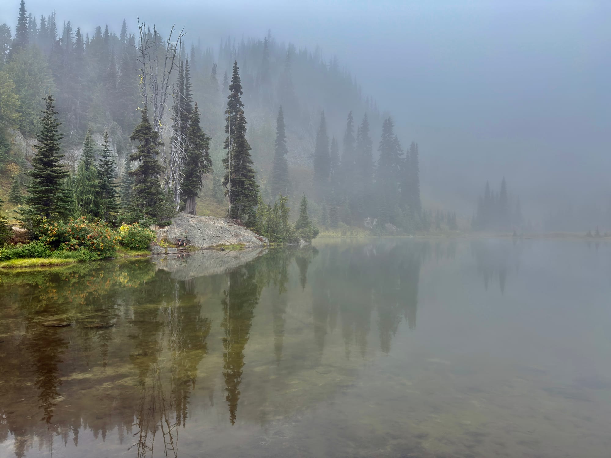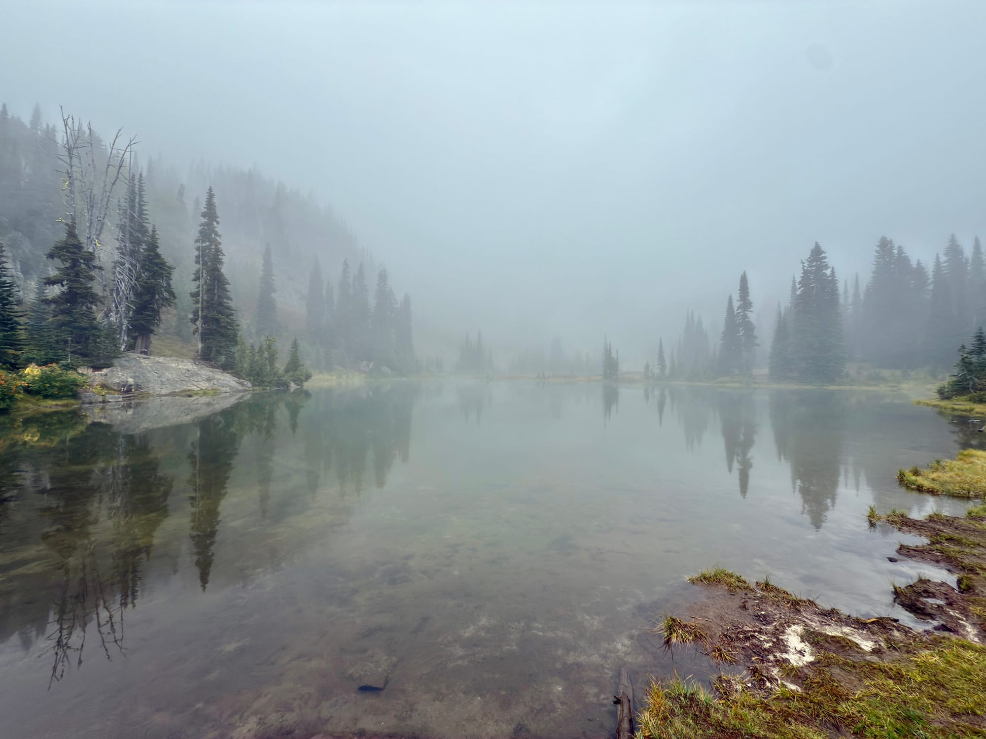 We had lunch near this spooky misty lake.
