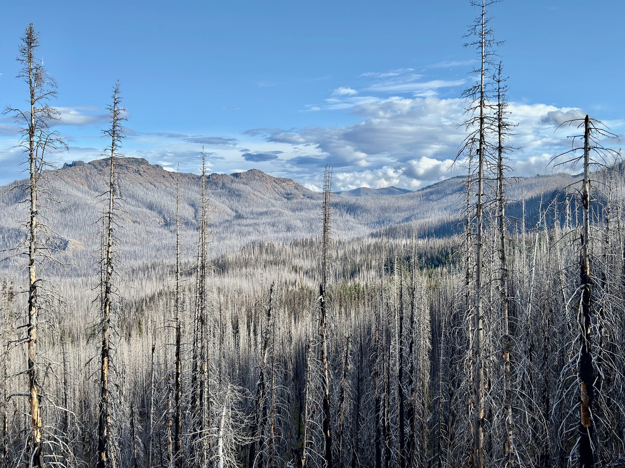 Eventually we hit a forest. Unfortunately, it was recently scorched.