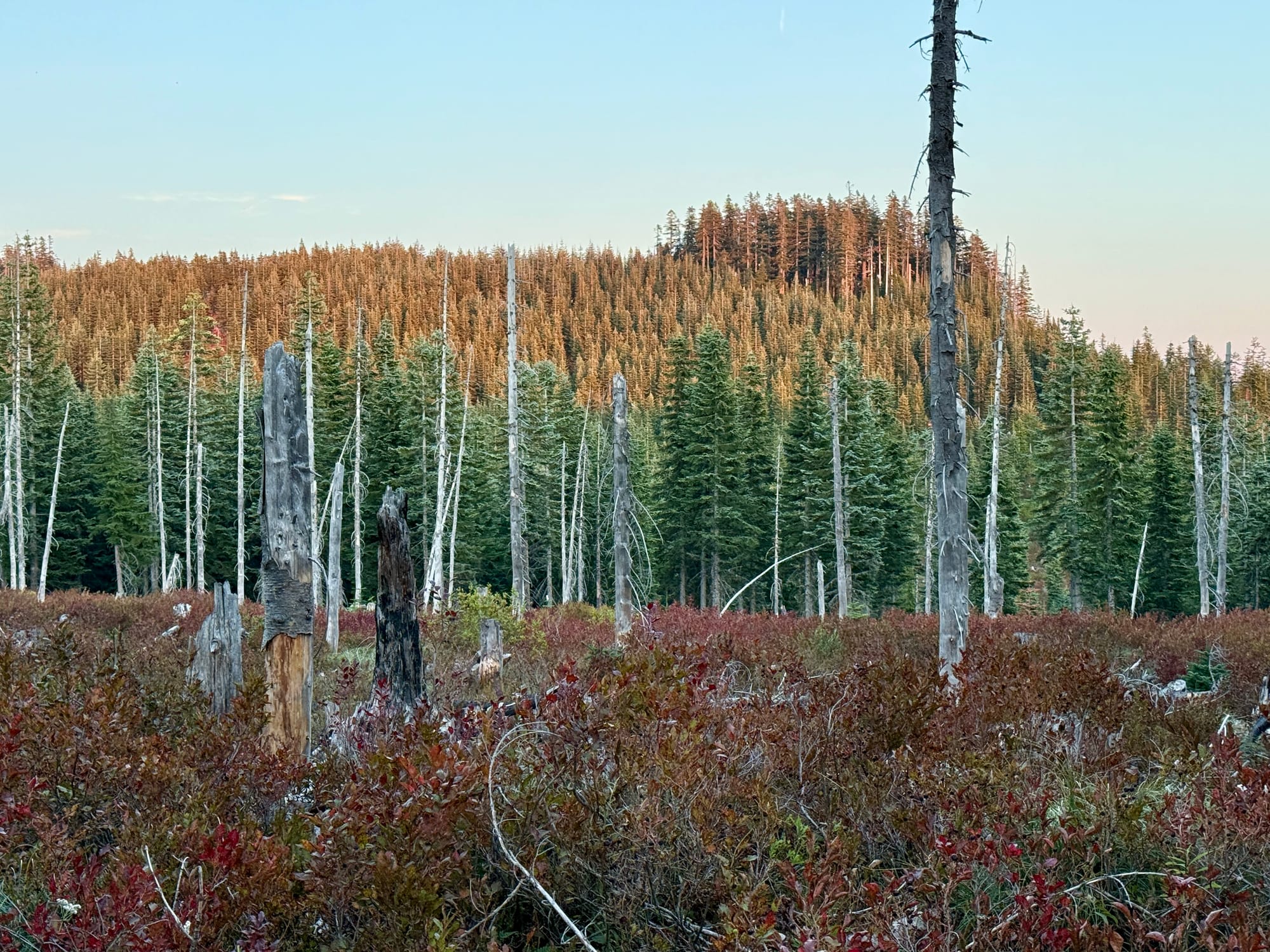 The color palette through here was amazing. The deep reds of the fall huckleberry bushes really pop against the greens and blues.