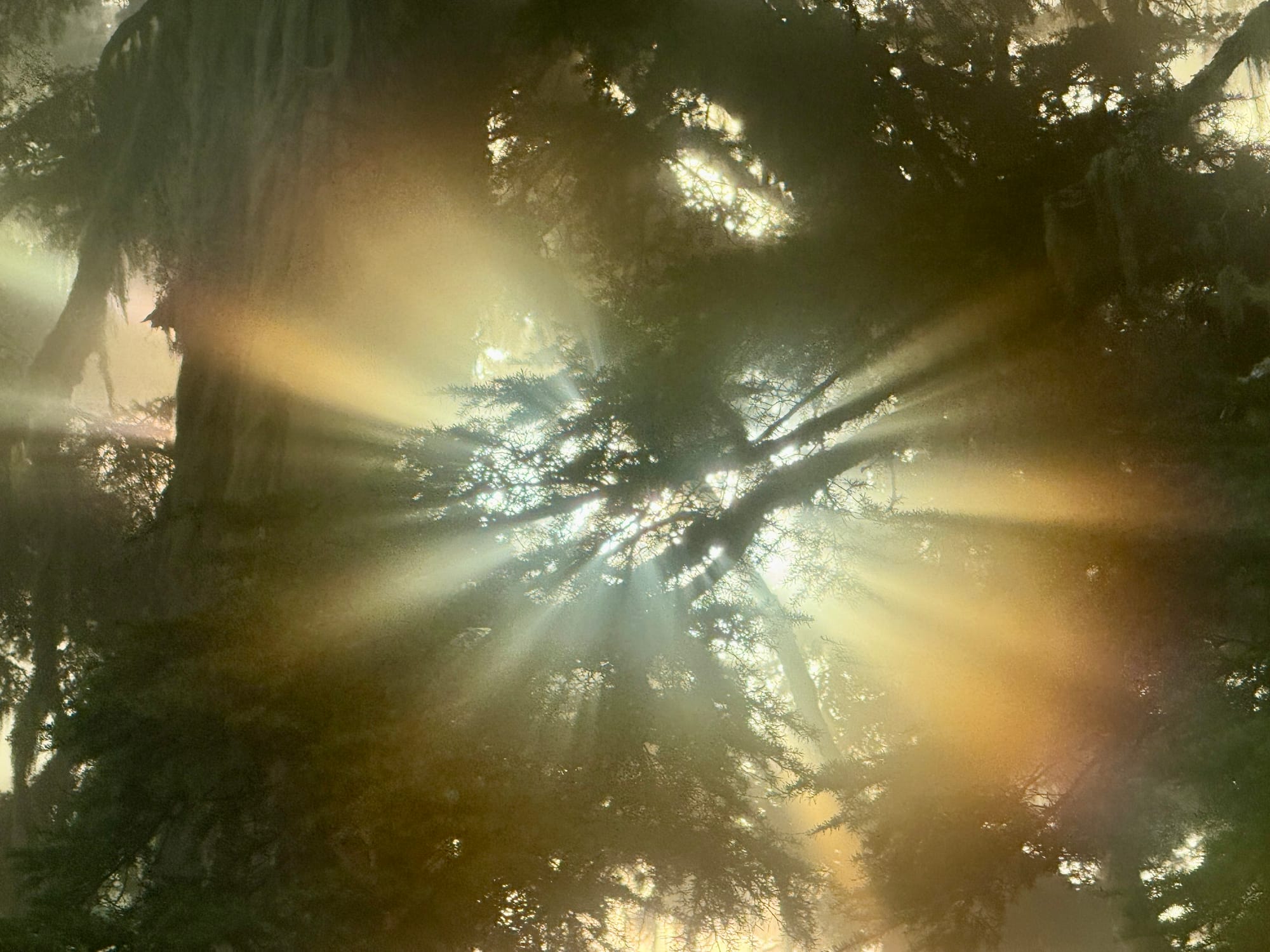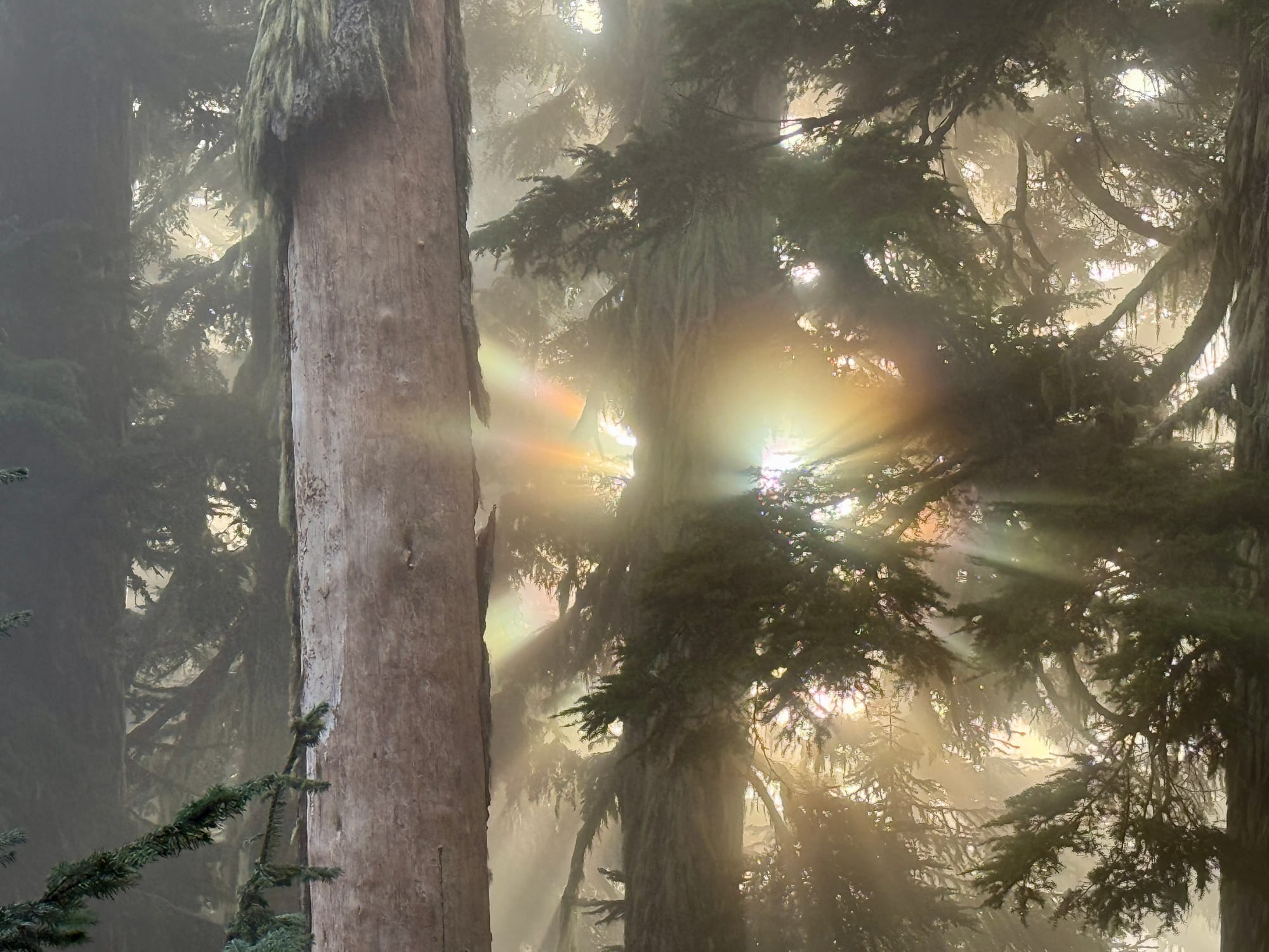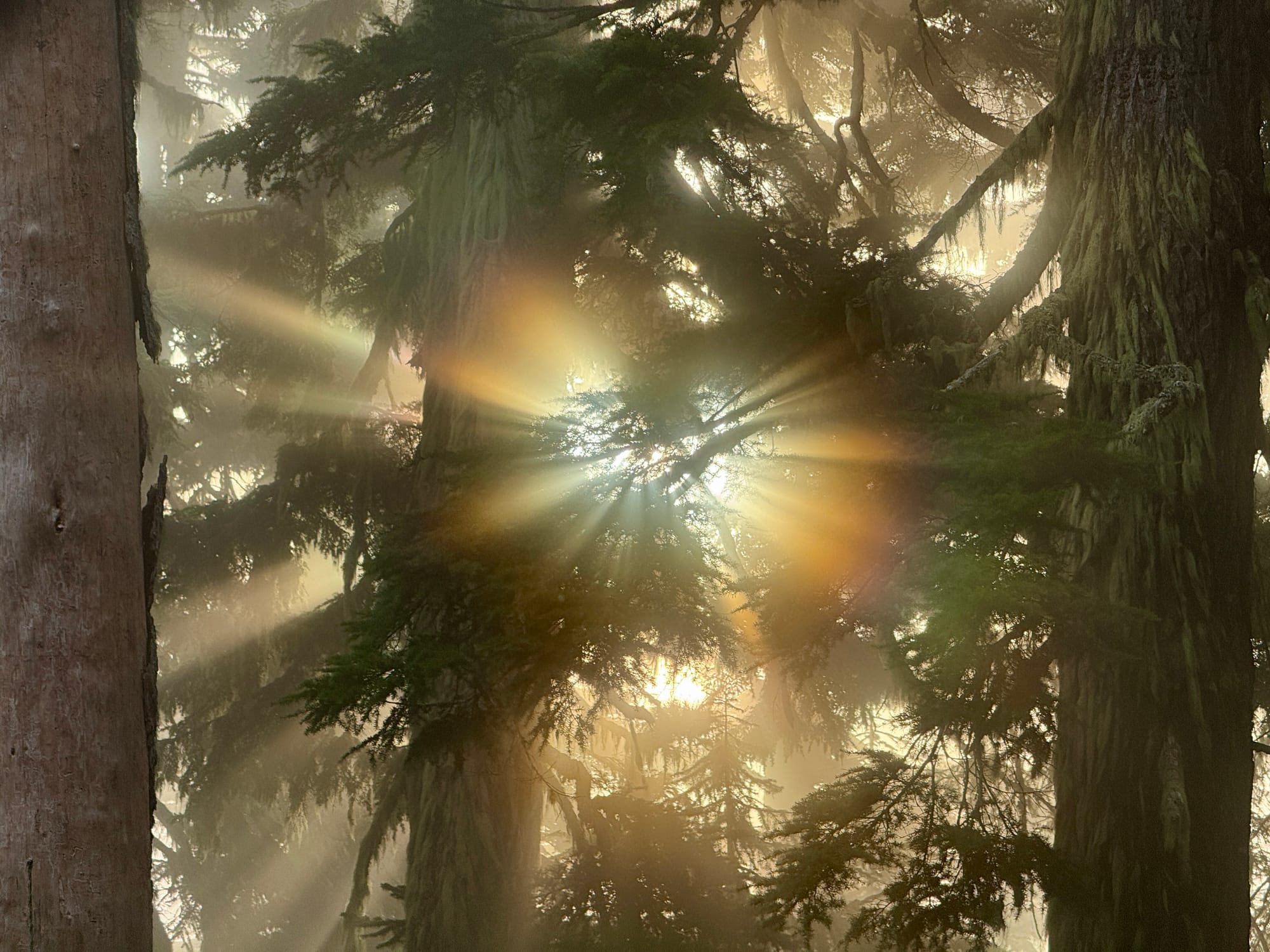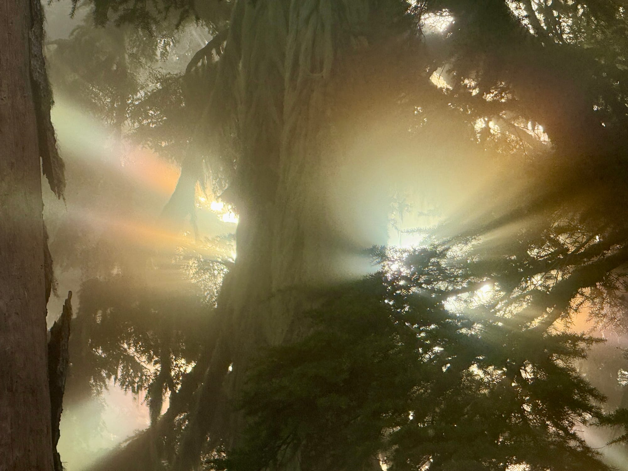 We woke up in a the mist of cloud and some supernatural light coming through the forest.