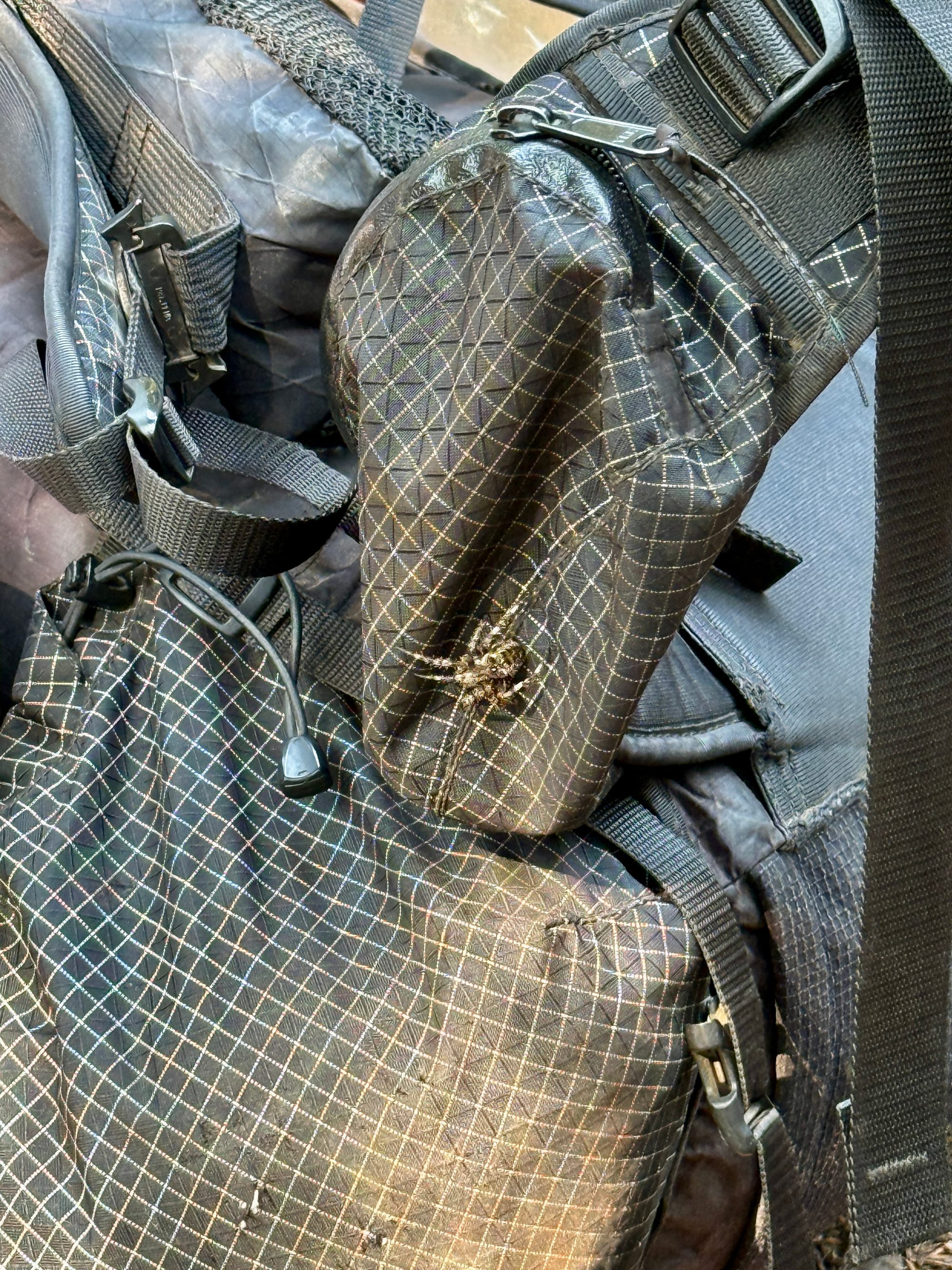Upon closer inspection we found a huge orb spider hitching a ride and guided him down to the earth from his spot on Kristin’s backpack.